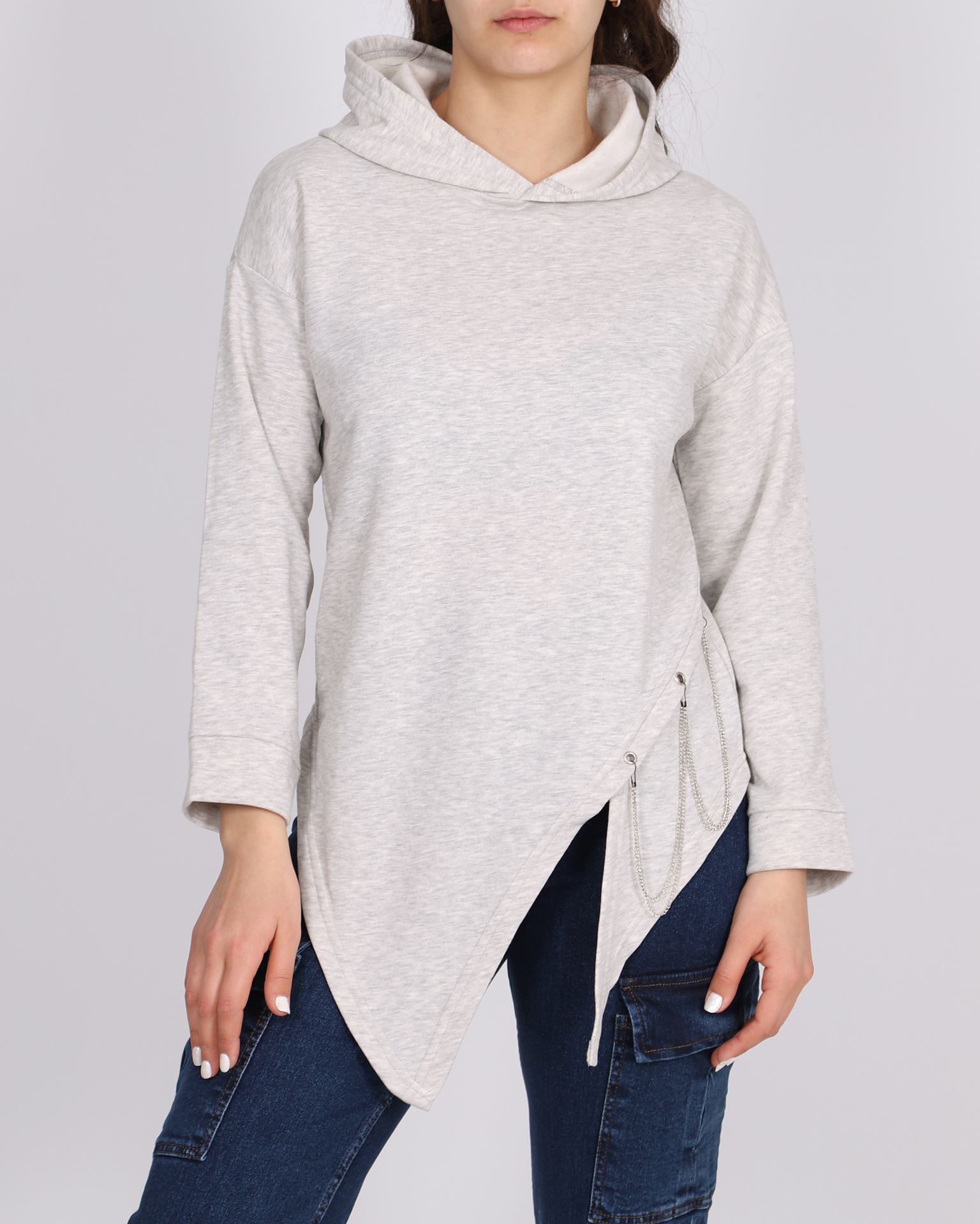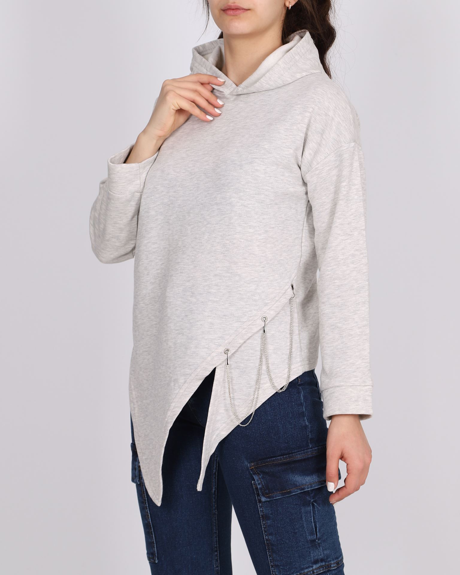 Açık Gri Asimetrik Zincirli Sweat SWT882