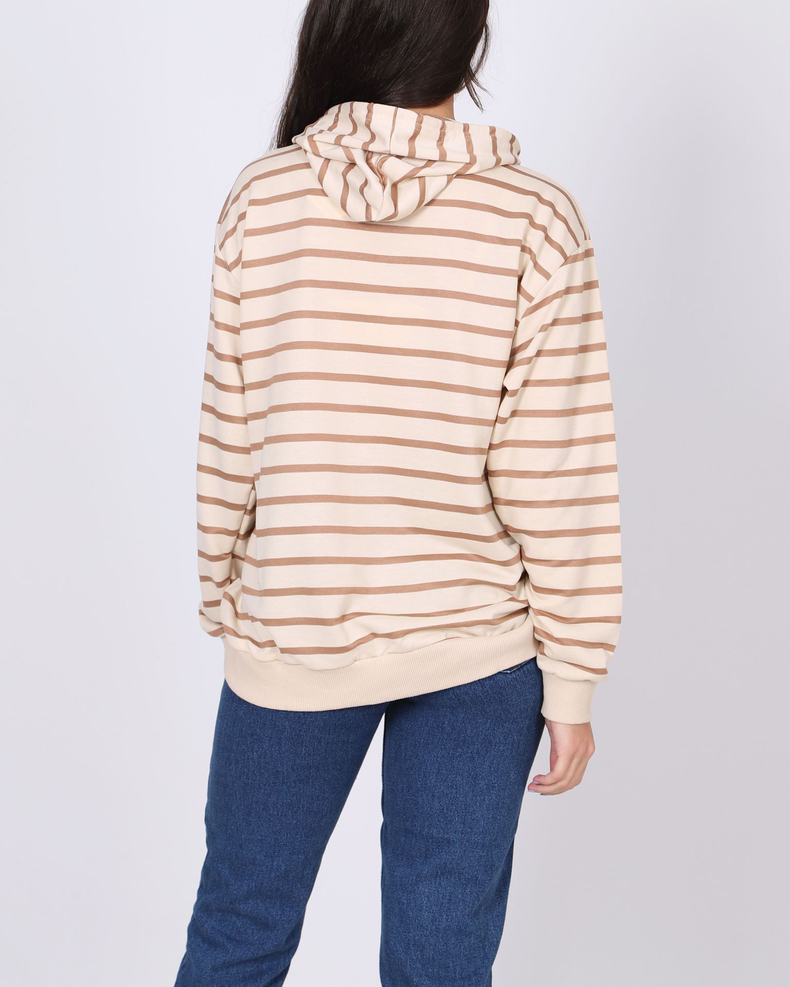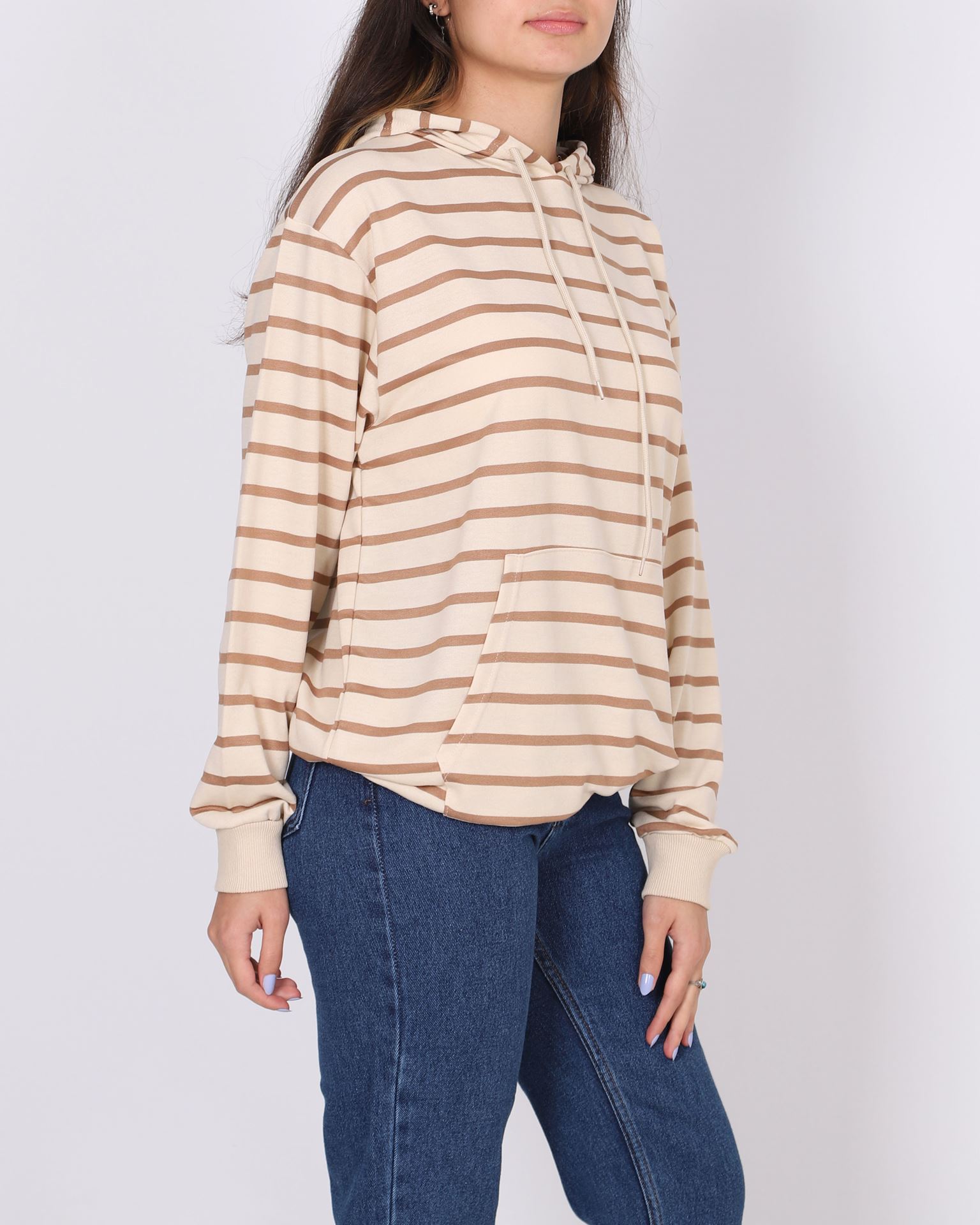 Açık Kahve Çizgili Kapüşonlu Sweat SWT1005