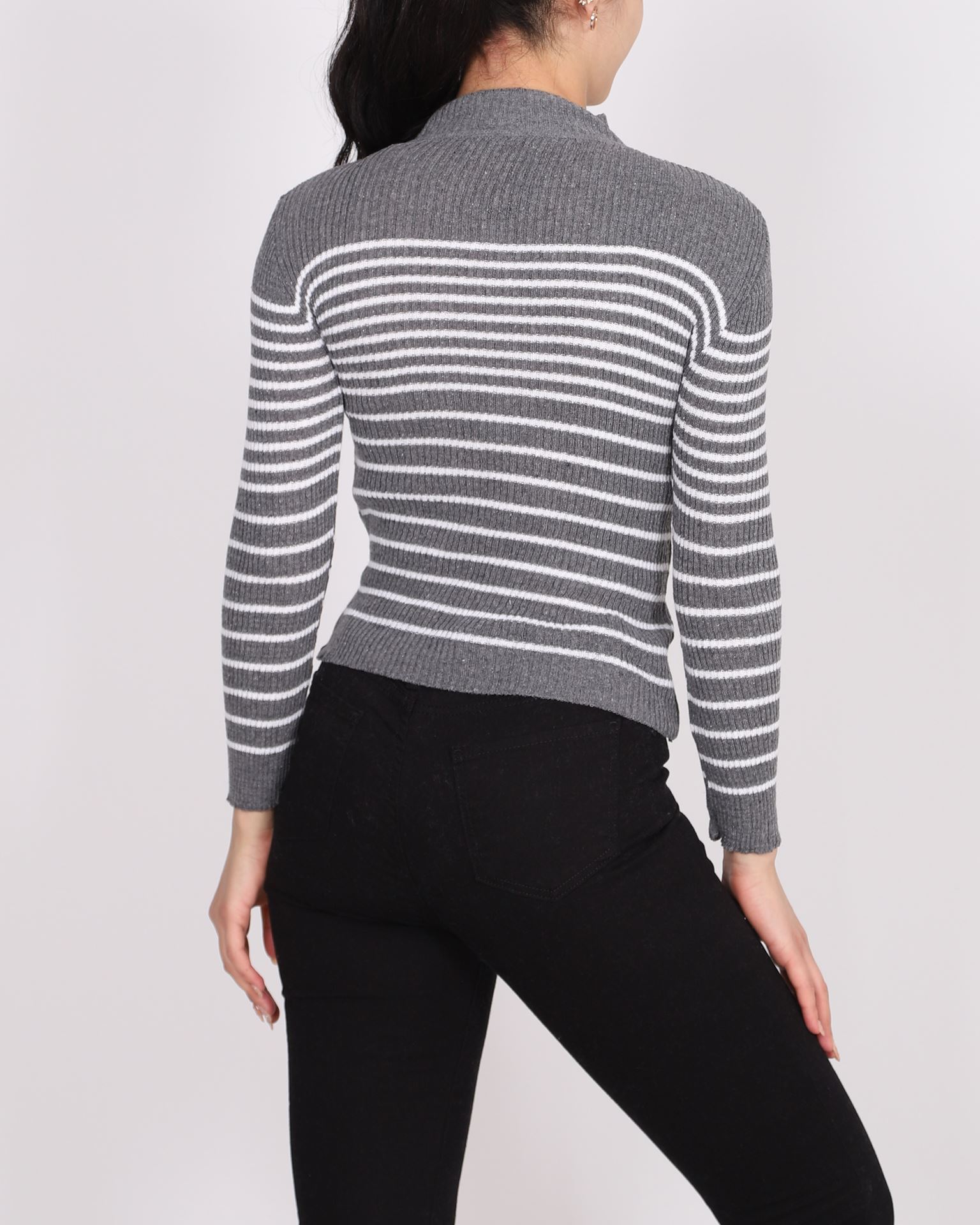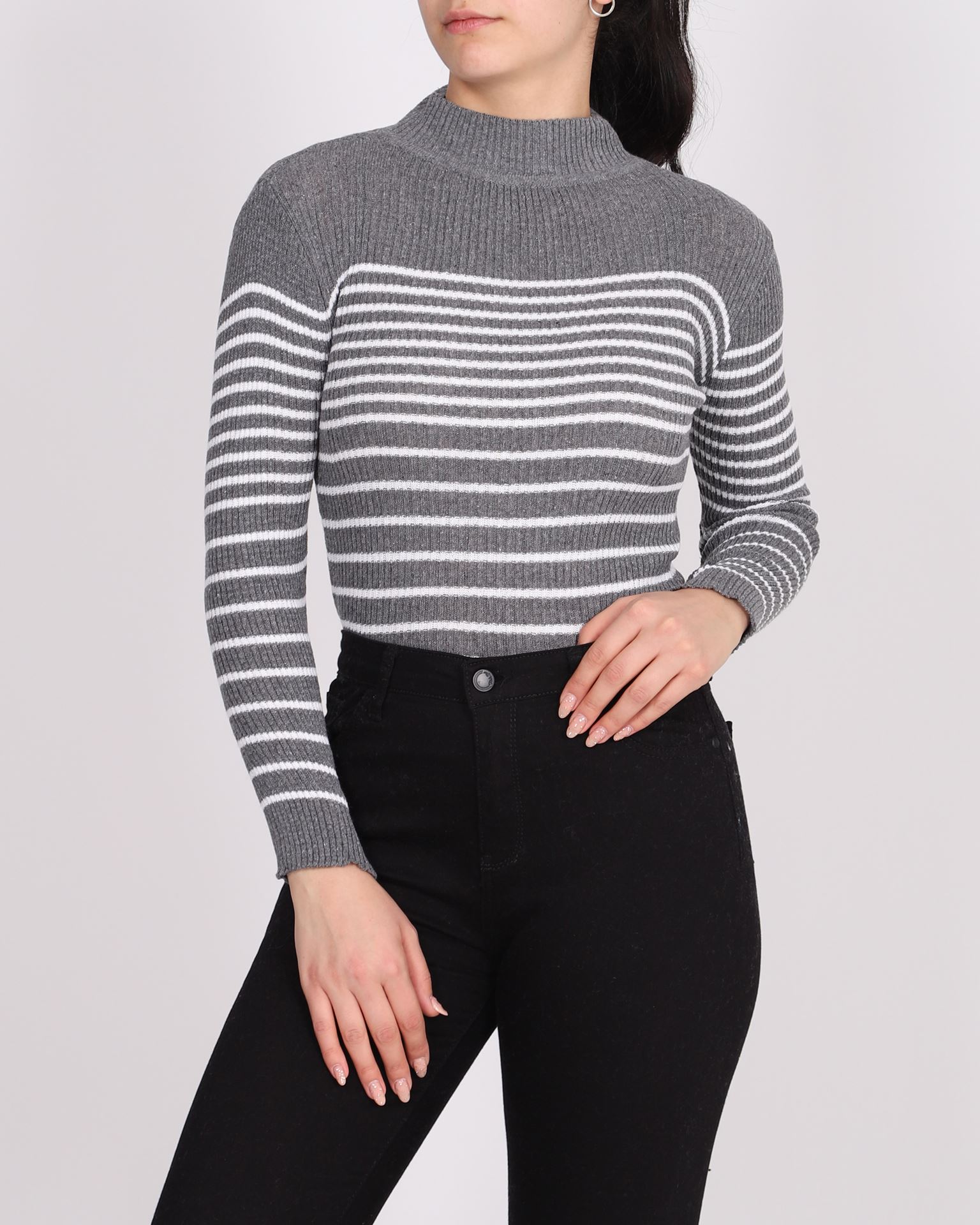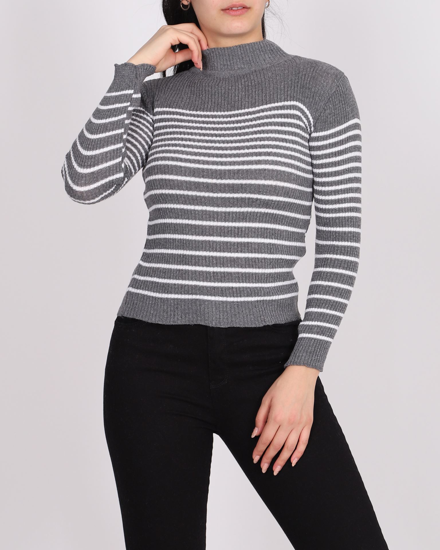 Antrasit Çizgili Yarım Balıkçı Triko KZK608