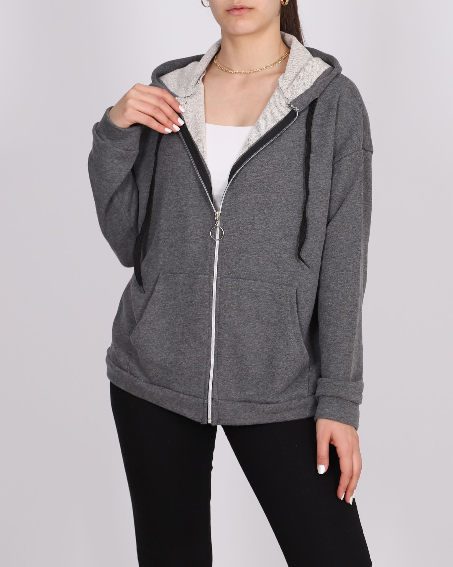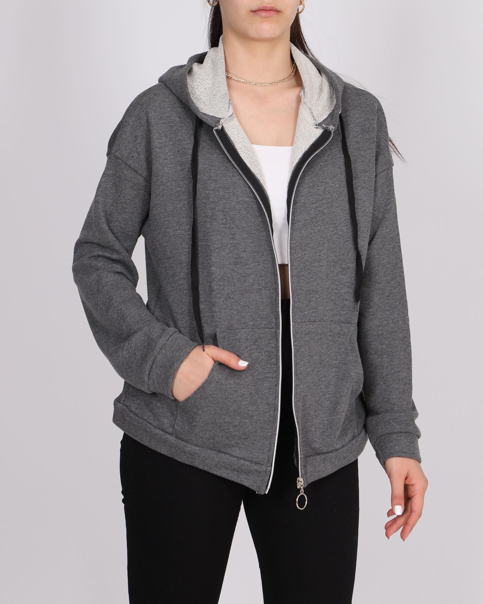 Antrasit Kapüşonlu Fermuarlı Sweat SWT885