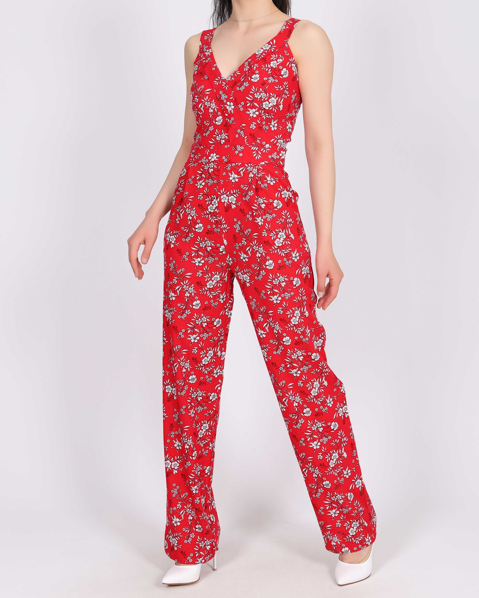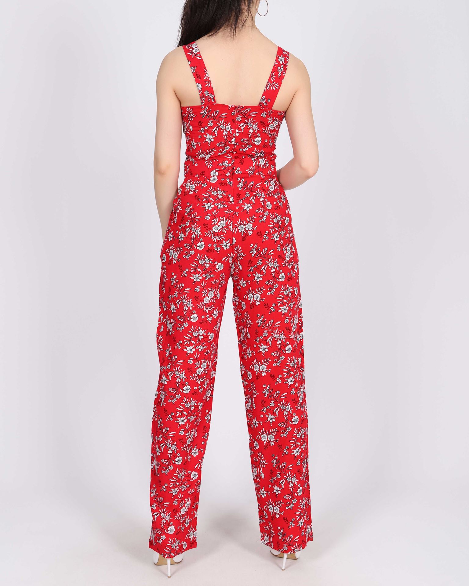 Askılı Çiçek Desenli Kırmızı Tulum TLM365