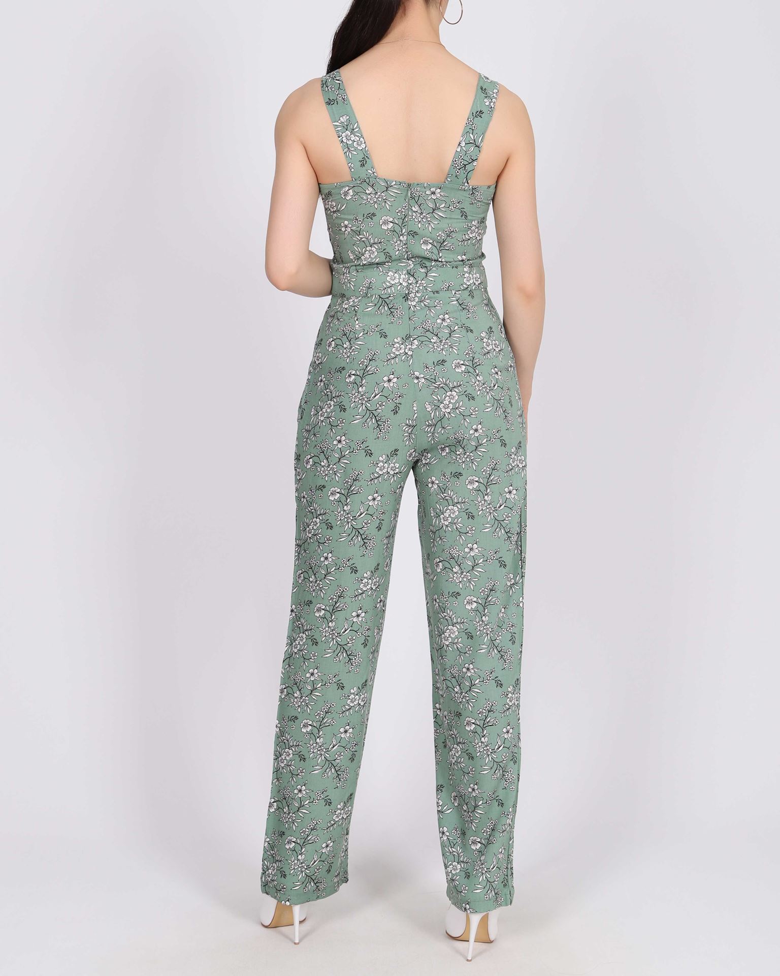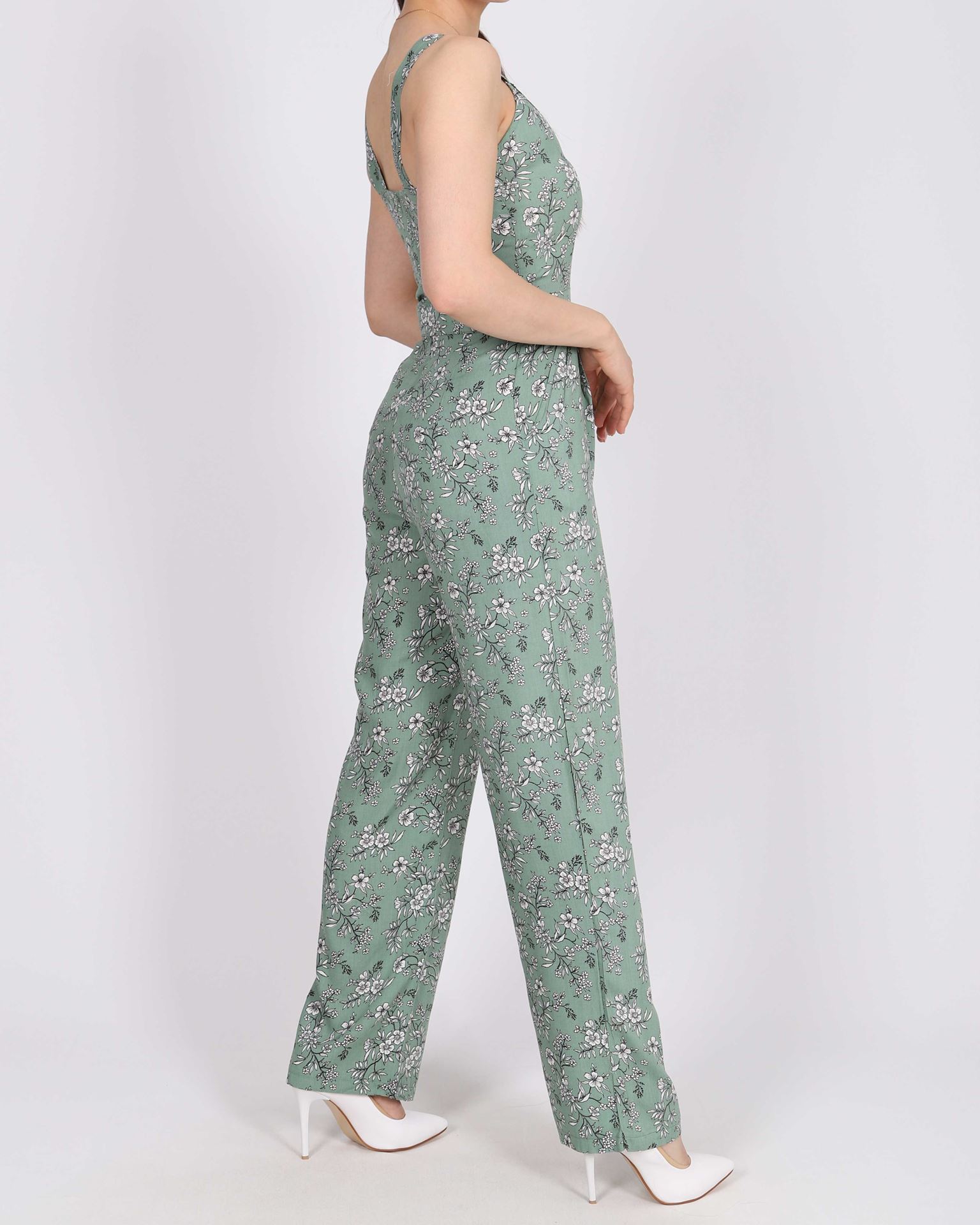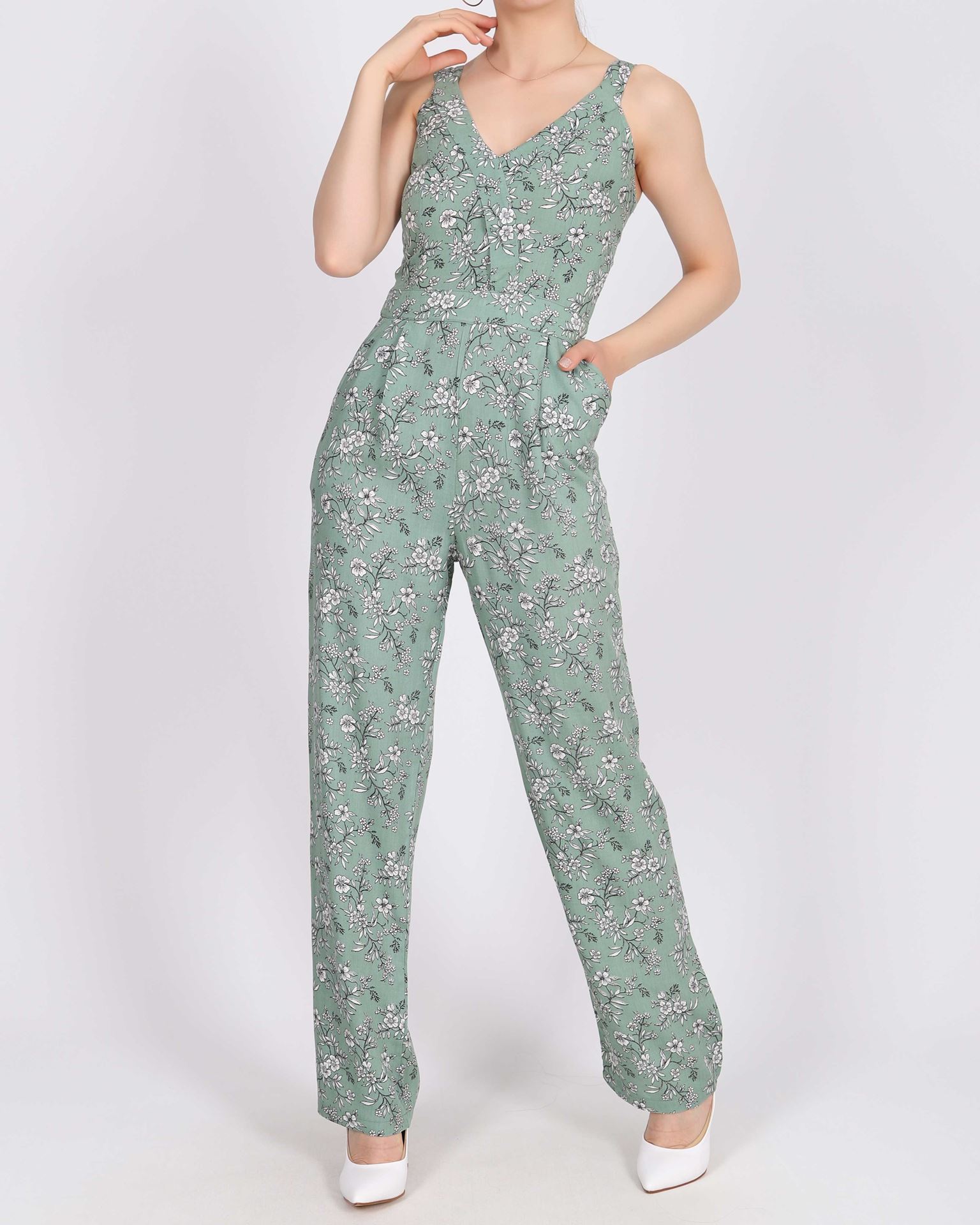 Askılı Çiçek Desenli Yeşil Tulum TLM368