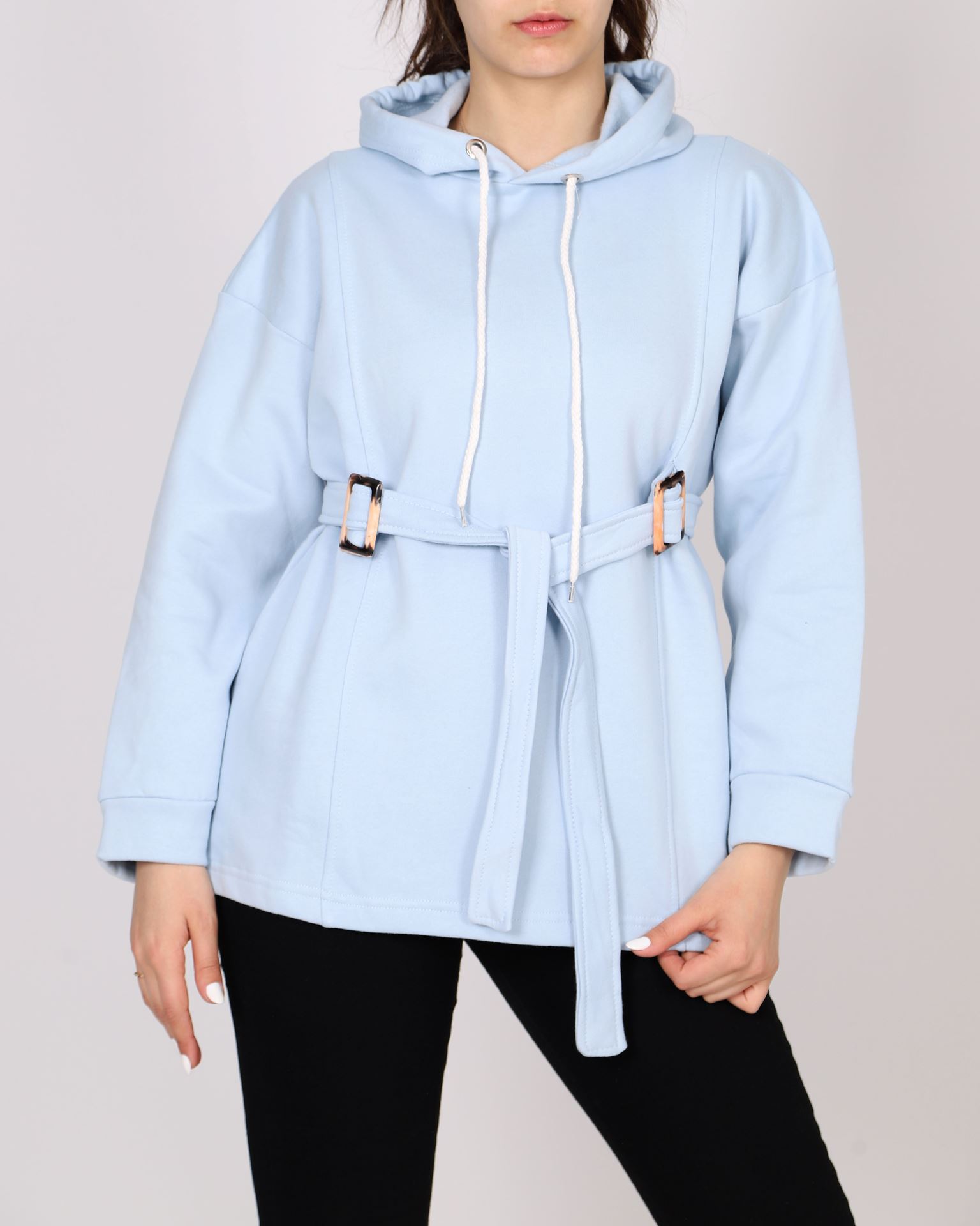 Bebe Mavisi Beli Kemerli Kapüşonlu Sweat SWT958