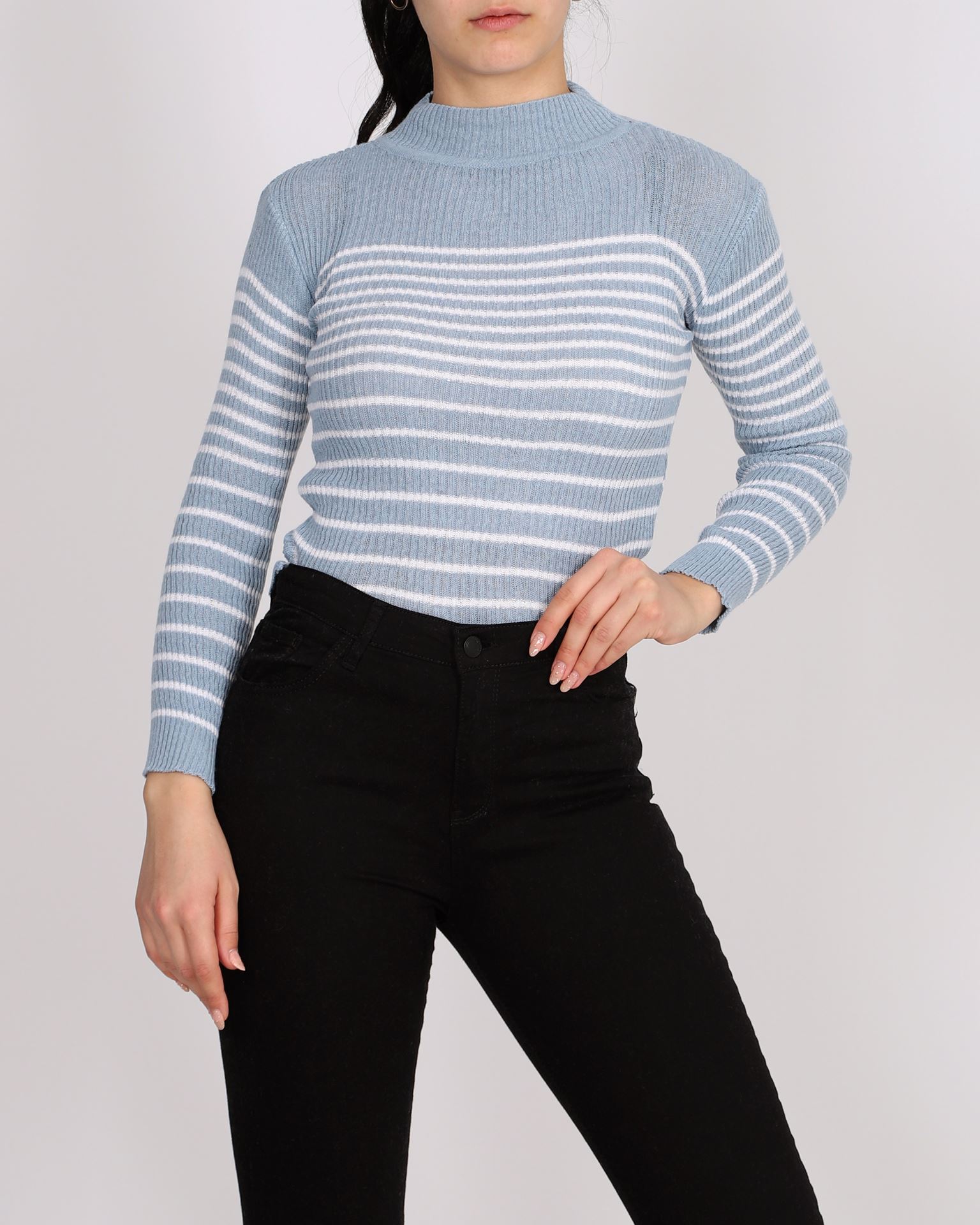 Bebe Mavisi Çizgili Yarım Balıkçı Triko KZK601