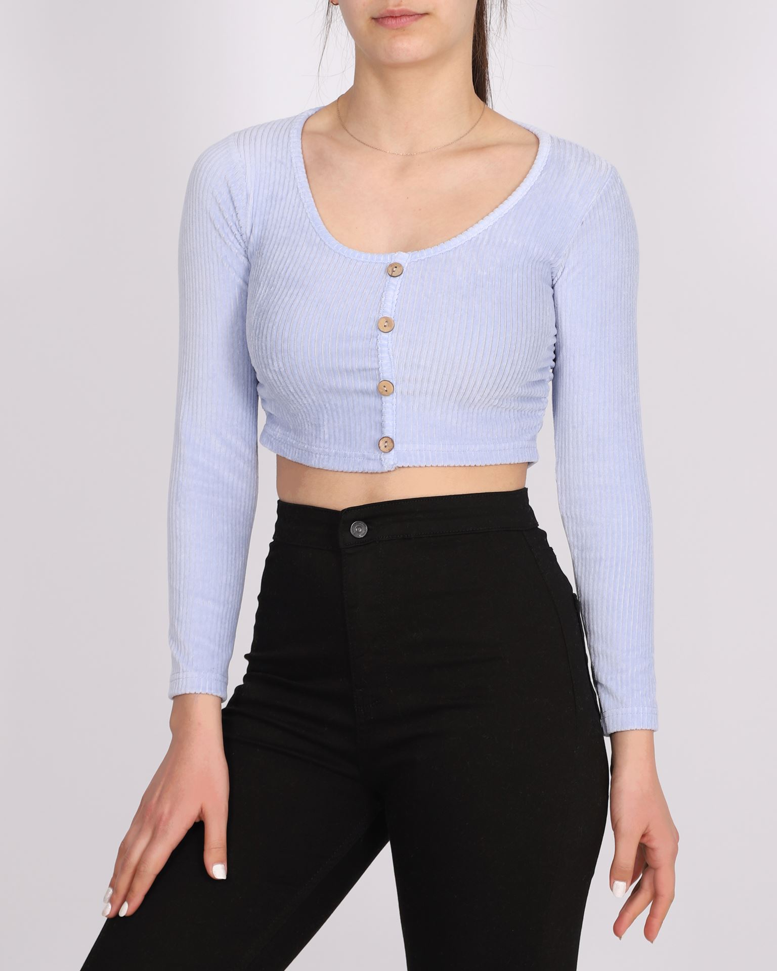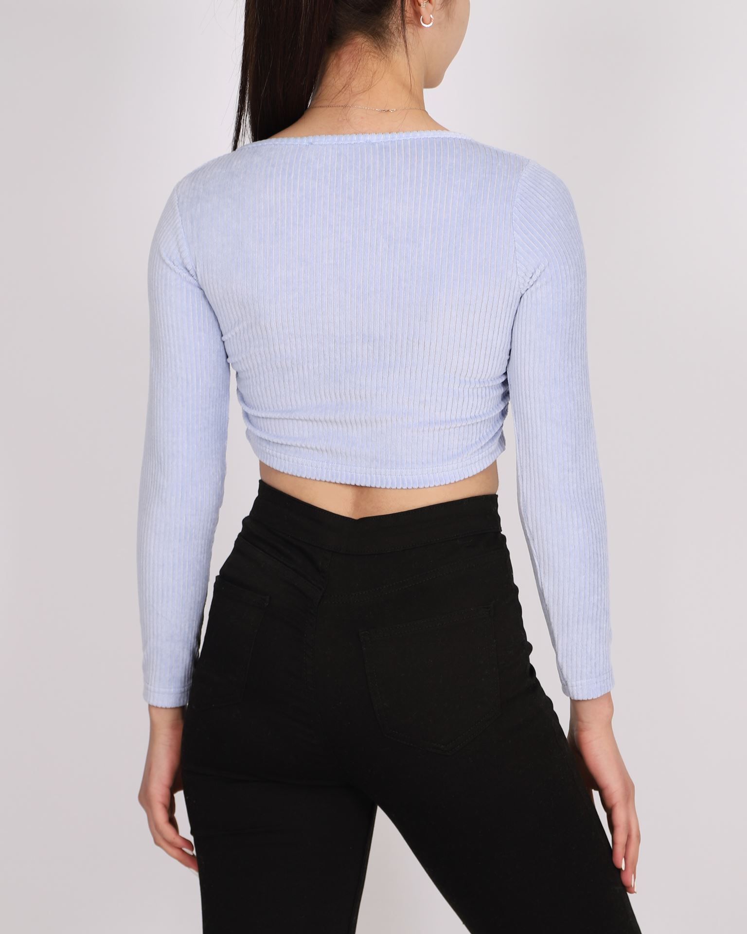 Bebe Mavisi Yanları Büzgülü Kadife Bluz BLZ309