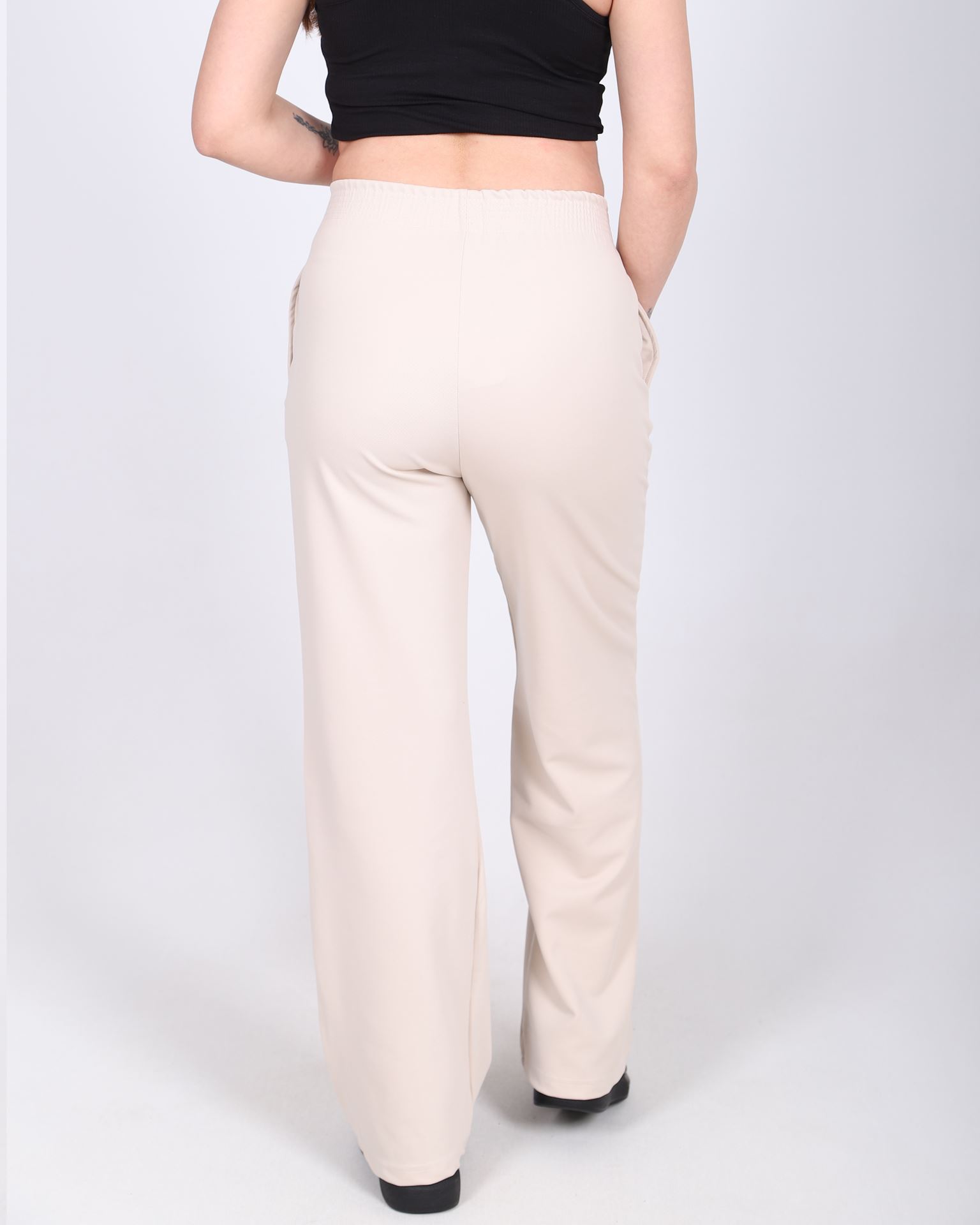 Bej Beli Lastikli Çimalı Pantolon PNT926
