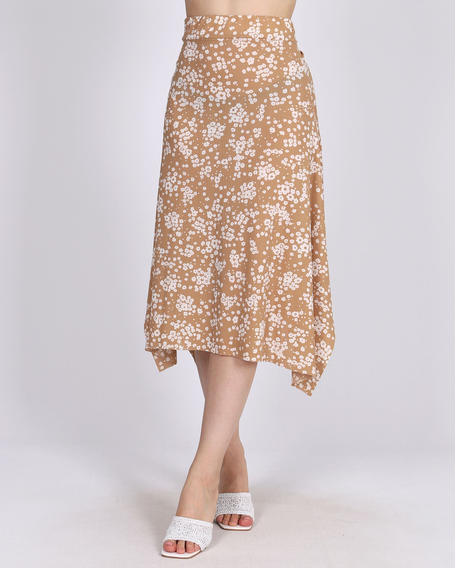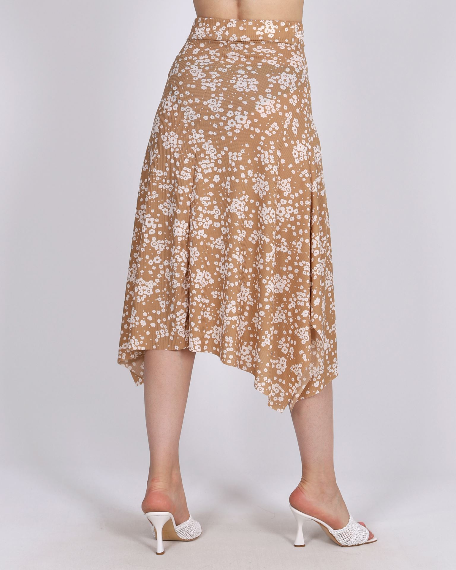 Bej Beli Lastikli Desenli Etek ETK184
