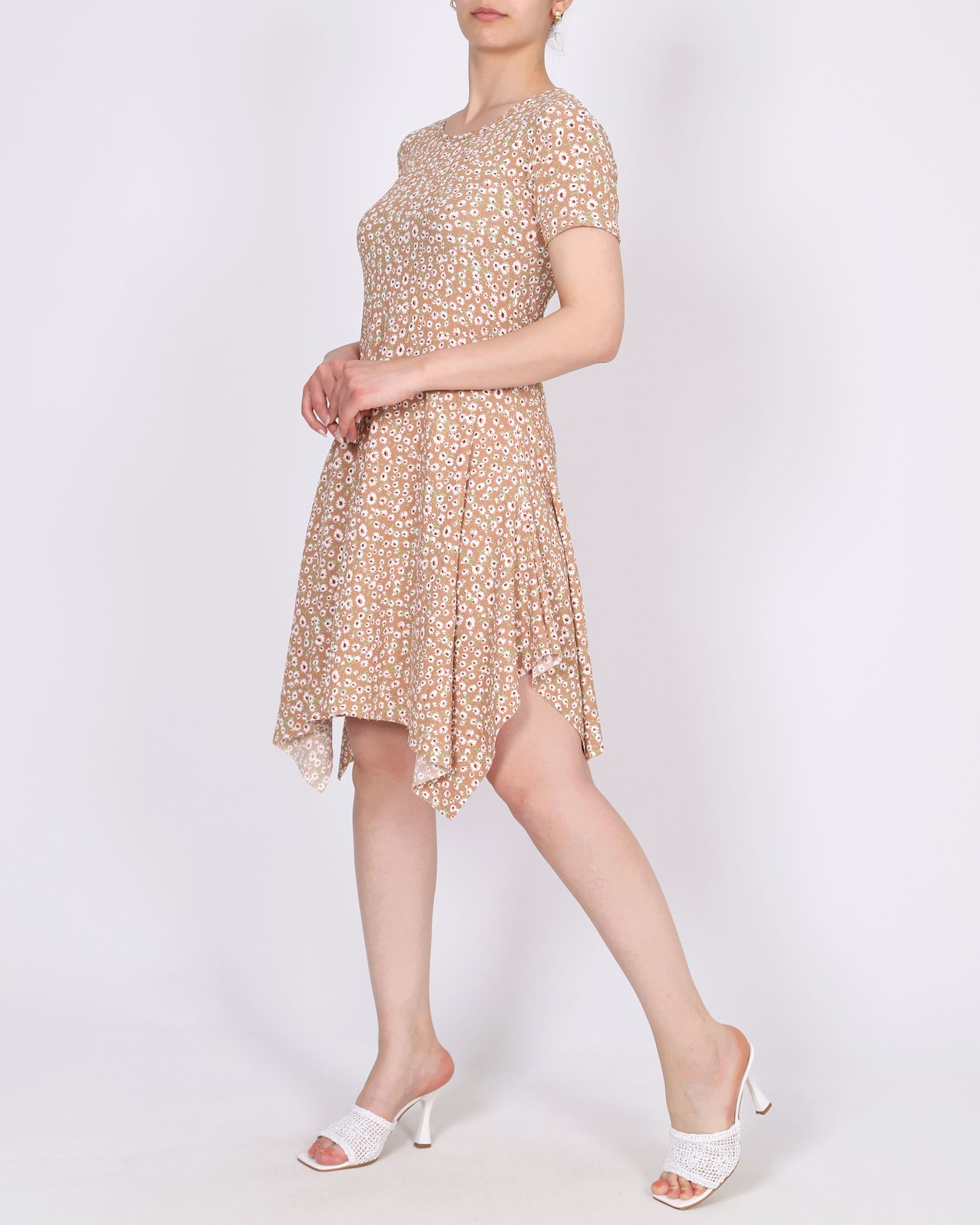 Bej Desenli Asimetrik Elbise ELB998