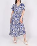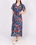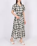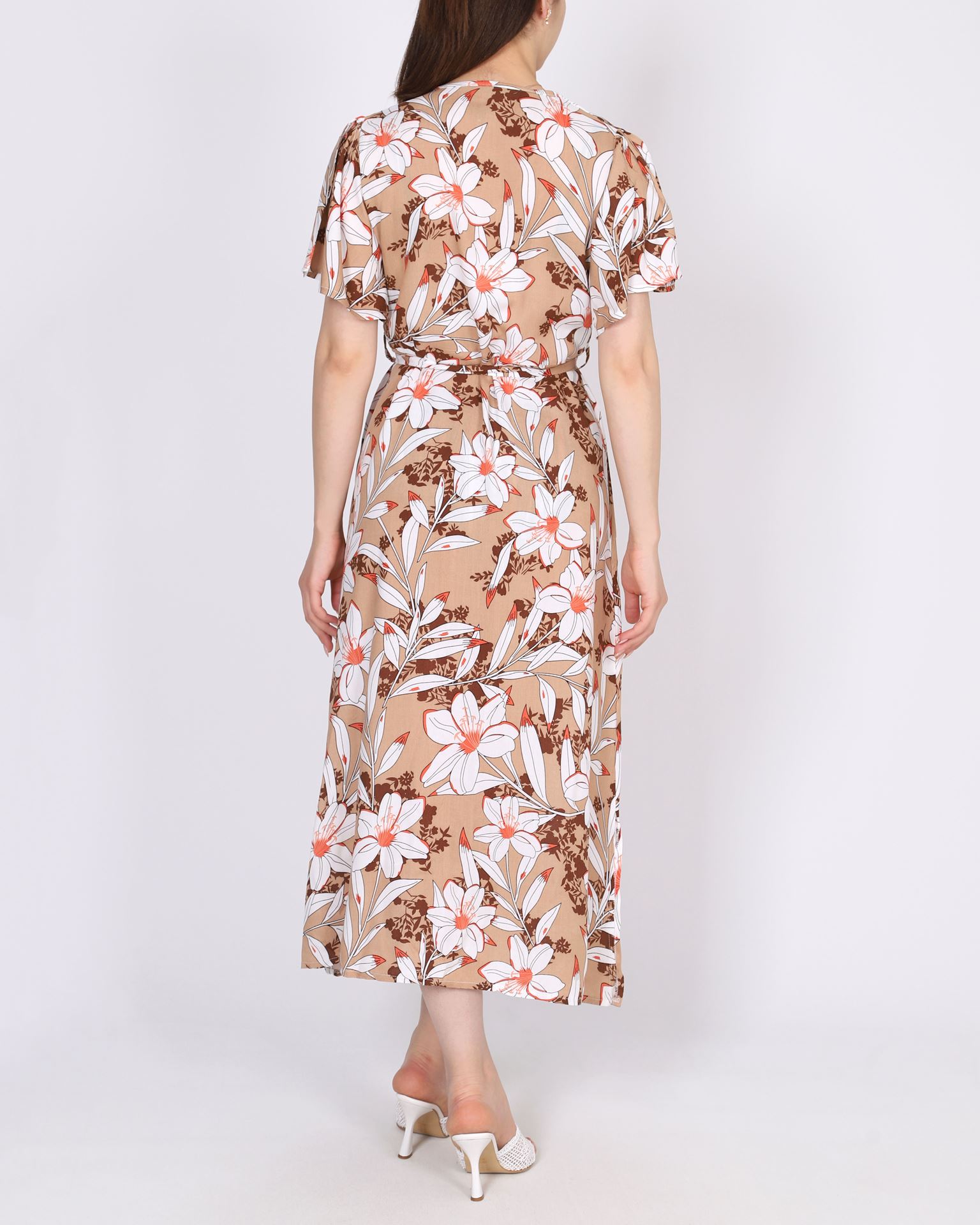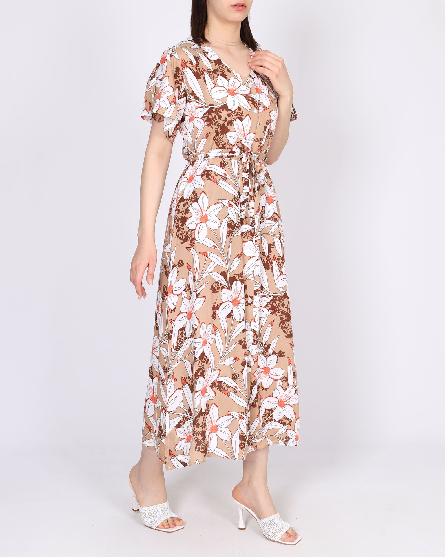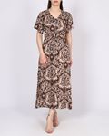 Bej Desenli Yırtmaçlı Elbise ELB1013