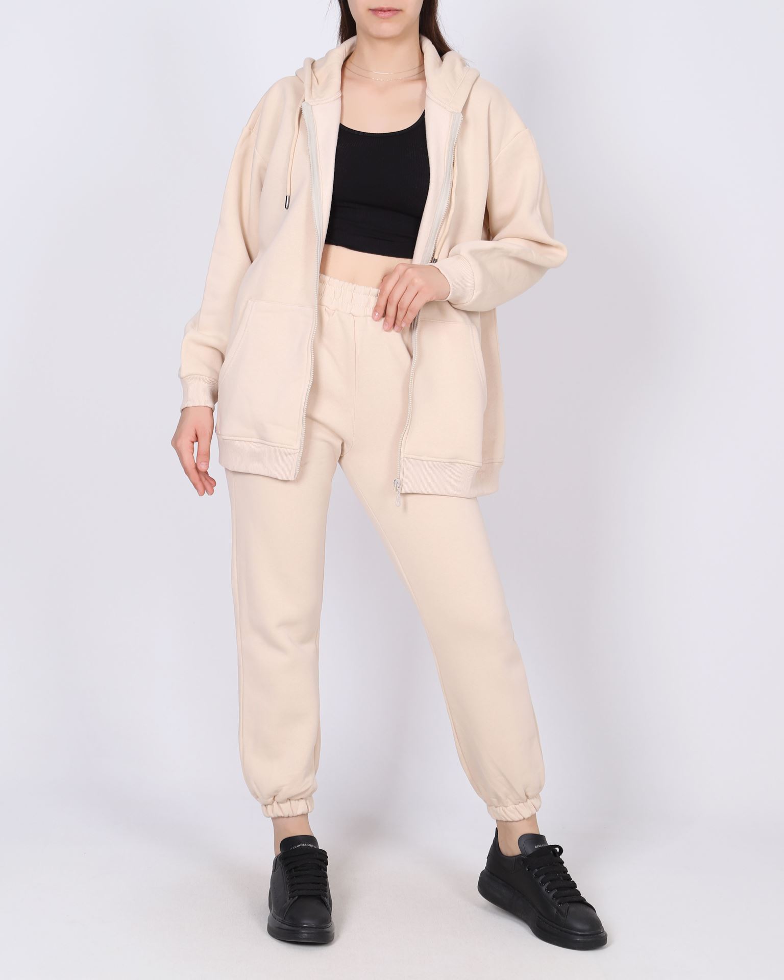 Bej İçi Şardonlu Fermuarlı Eşofman Takımı TKM2572