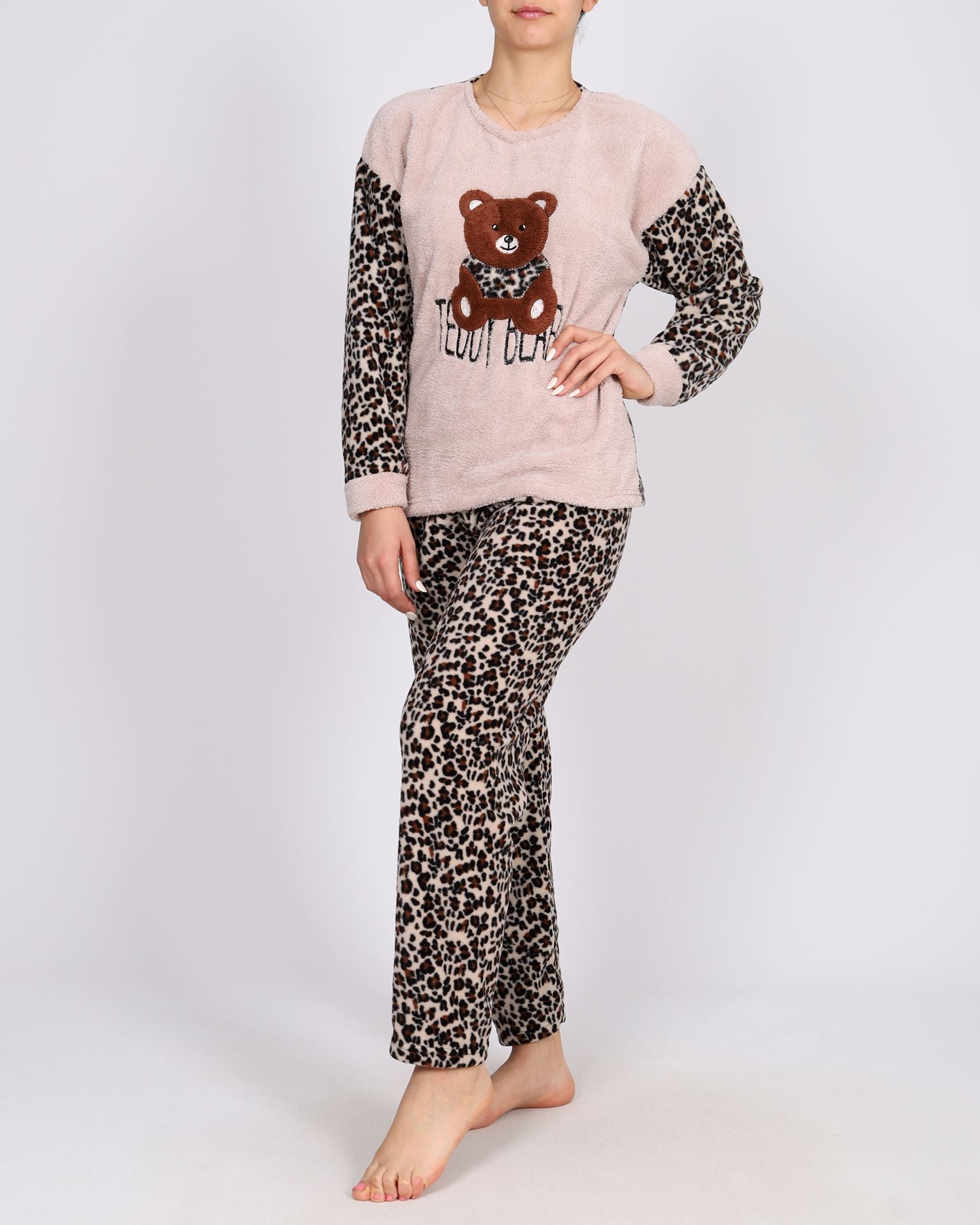 Bej Peluş Garnili Pijama Takımı PJM1590