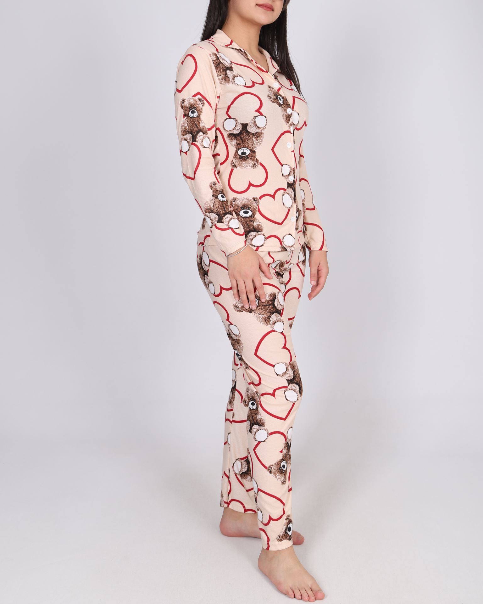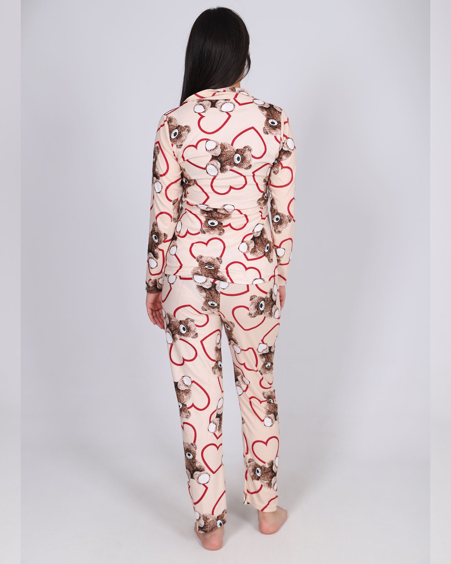 Bej Süet Düğmeli Pijama Takımı PJM2117