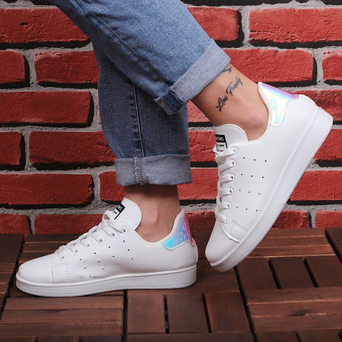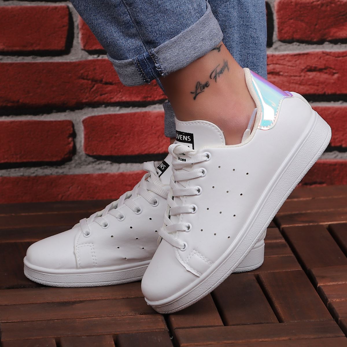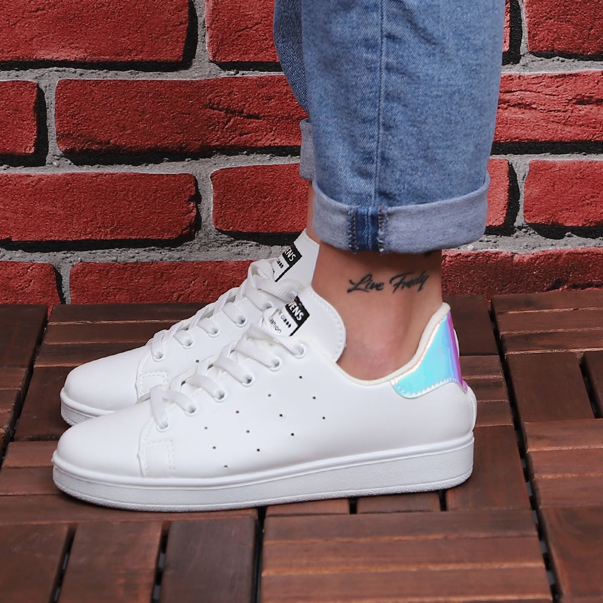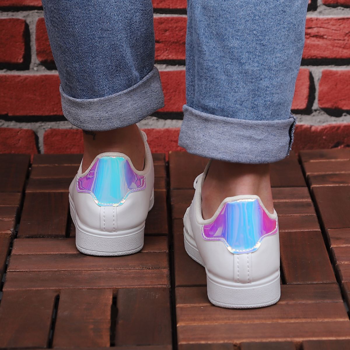 Beyaz Arkası Lila Hologram Spor Ayakkabı AYK114