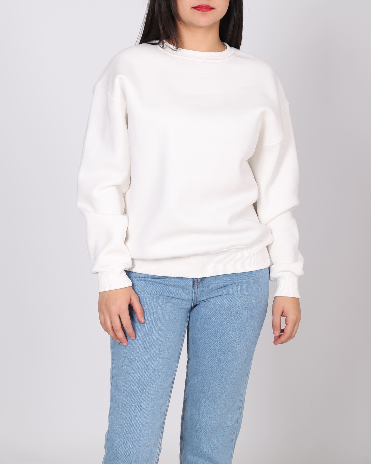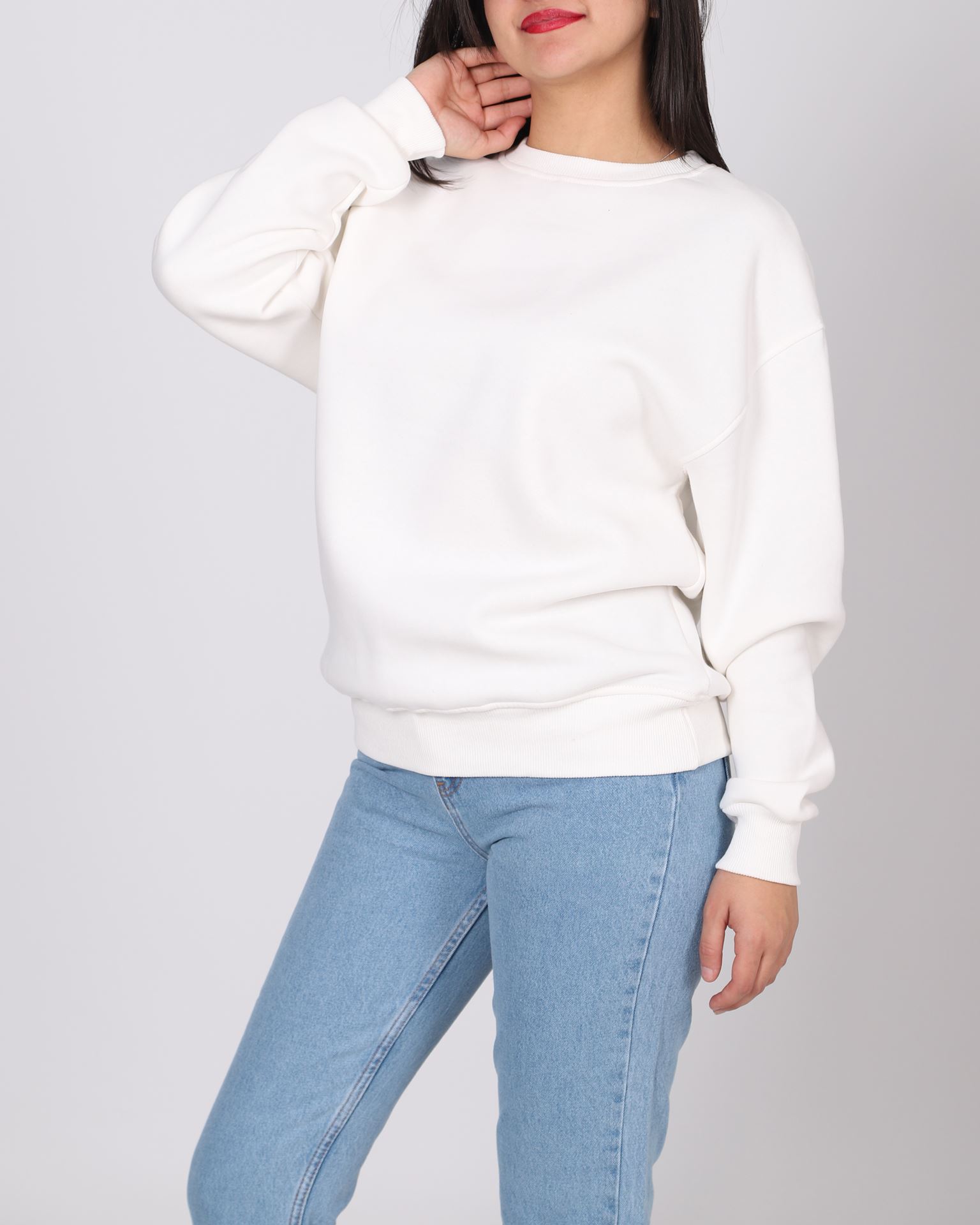 Beyaz Basic Üç İplik Şardonlu Sweat SWT1086