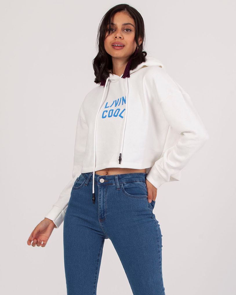 Beyaz Baskılı Crop Sweat SWT748