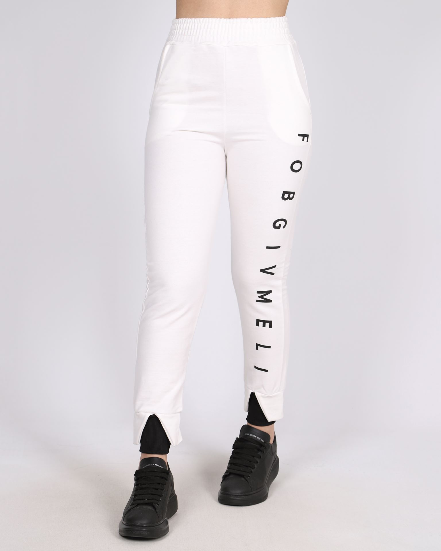 Beyaz Baskılı Eşofman Altı TKM2343