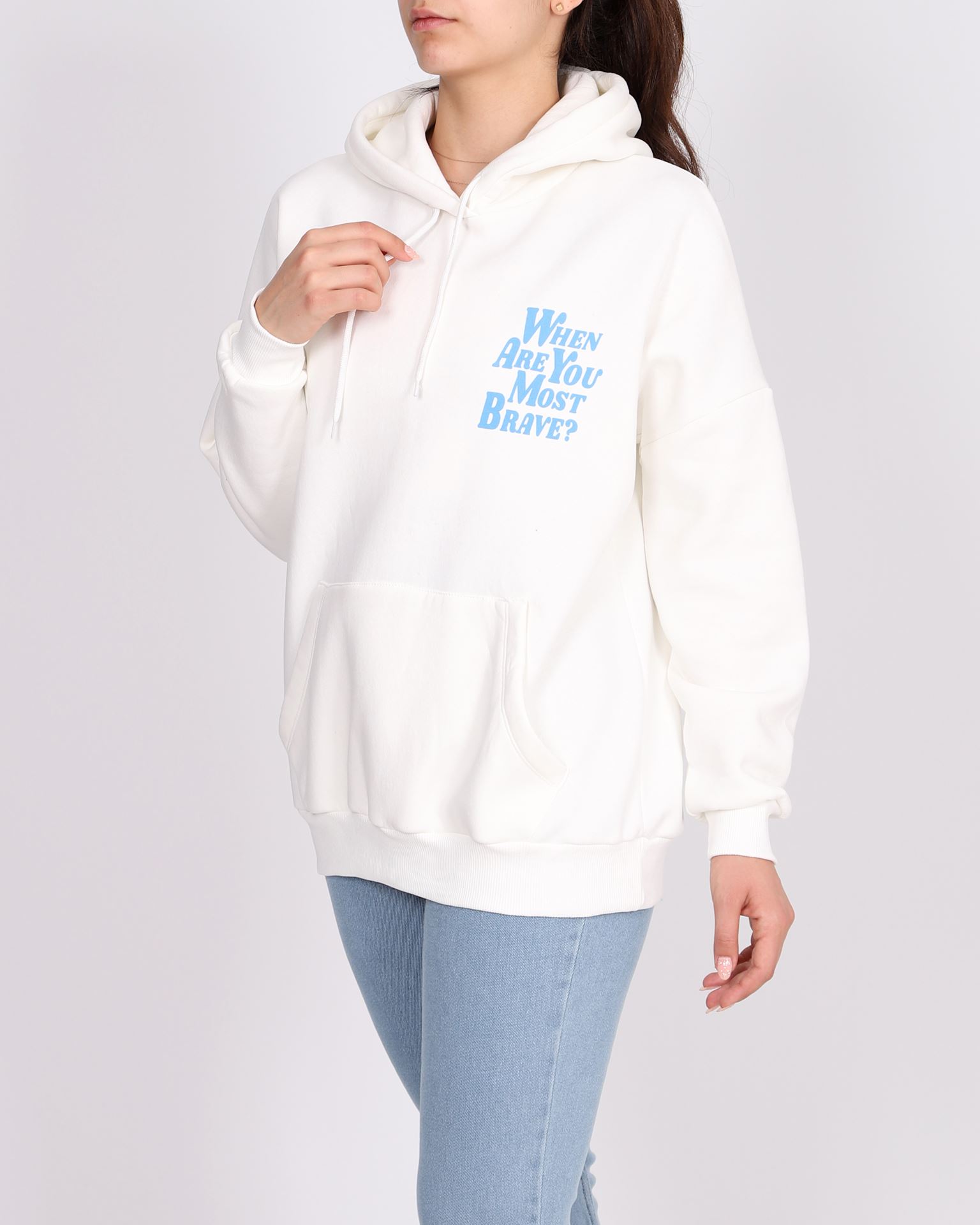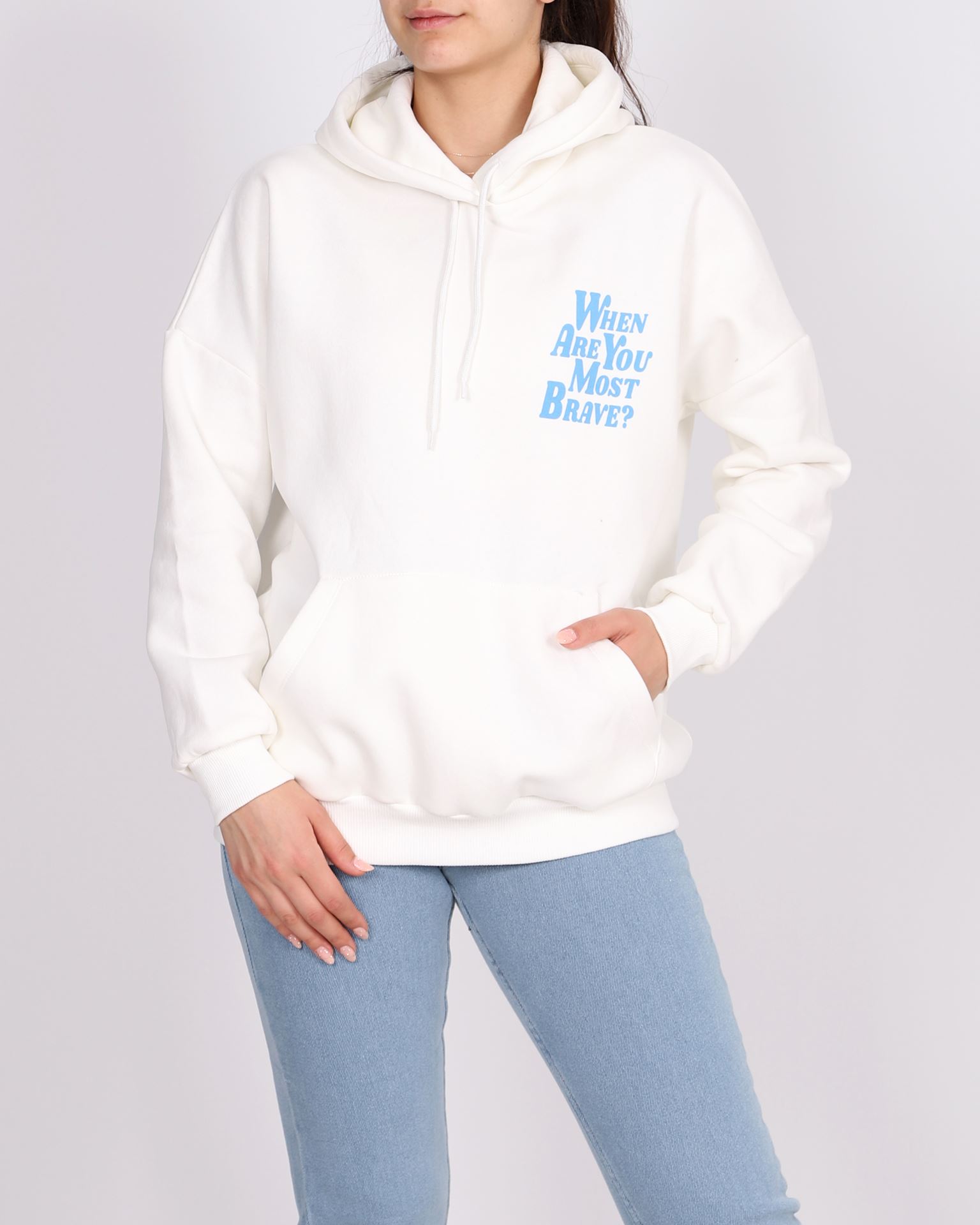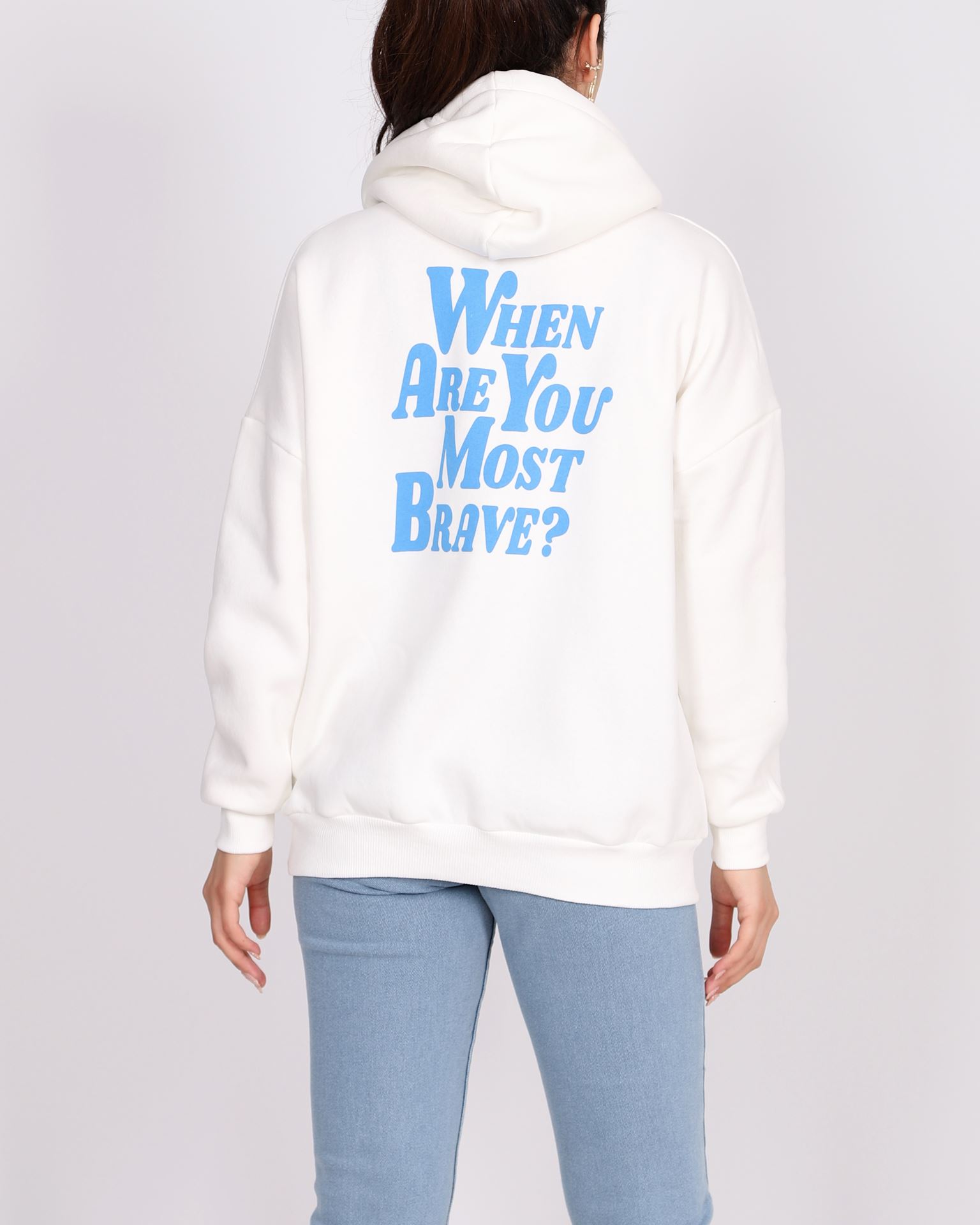 Beyaz Baskılı Oversize Sweat SWT789