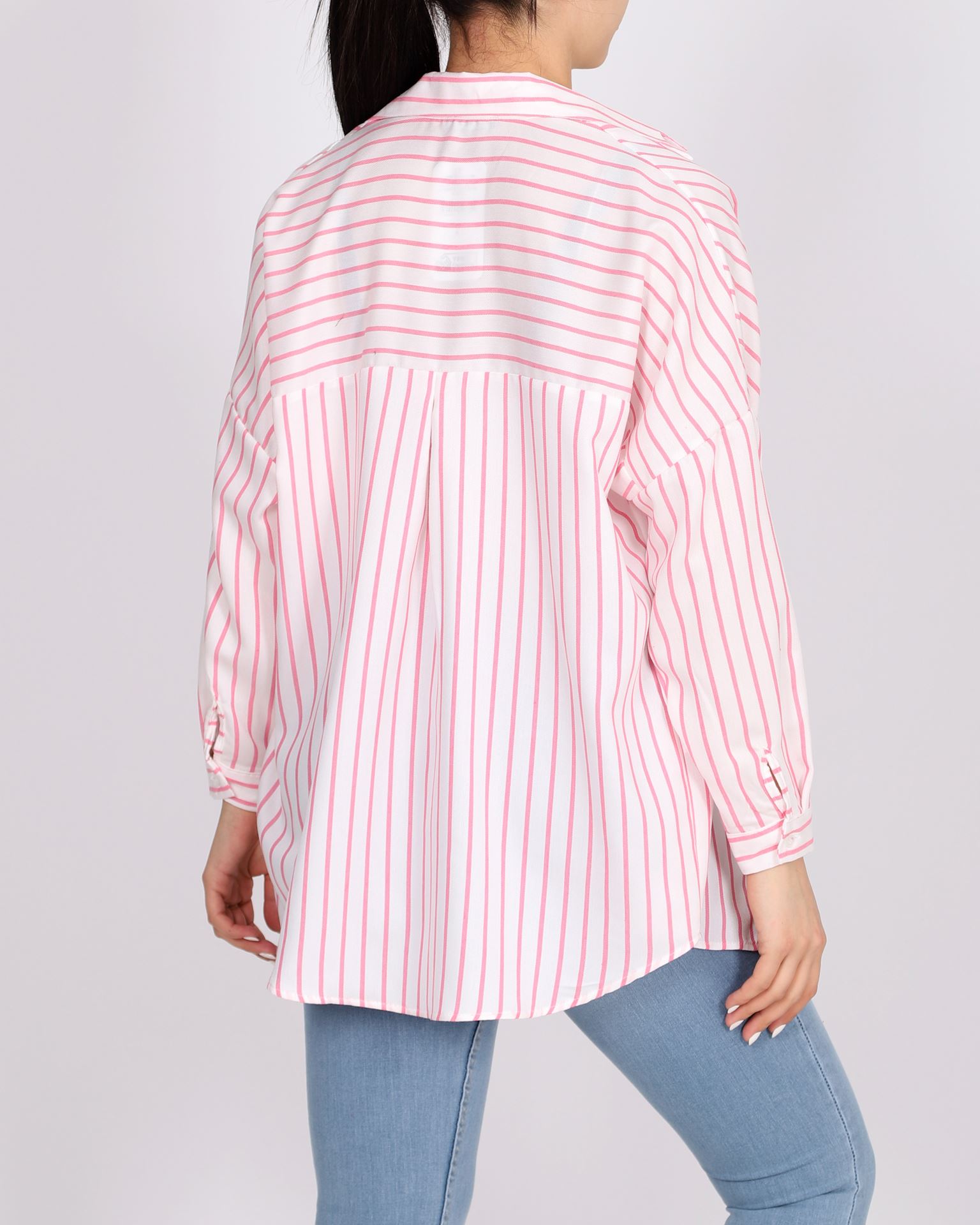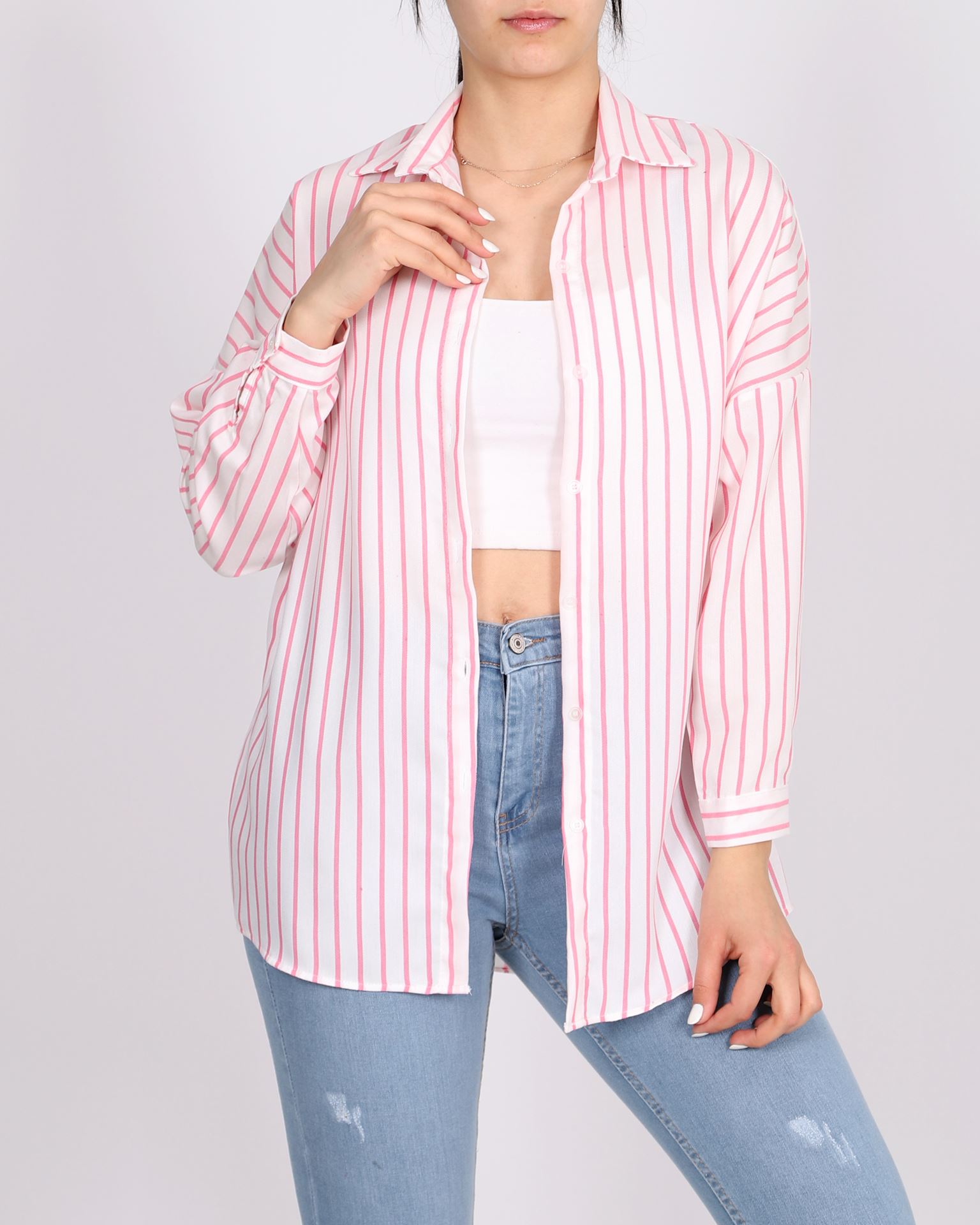 Beyaz Çizgili Oversize Gömlek GML114