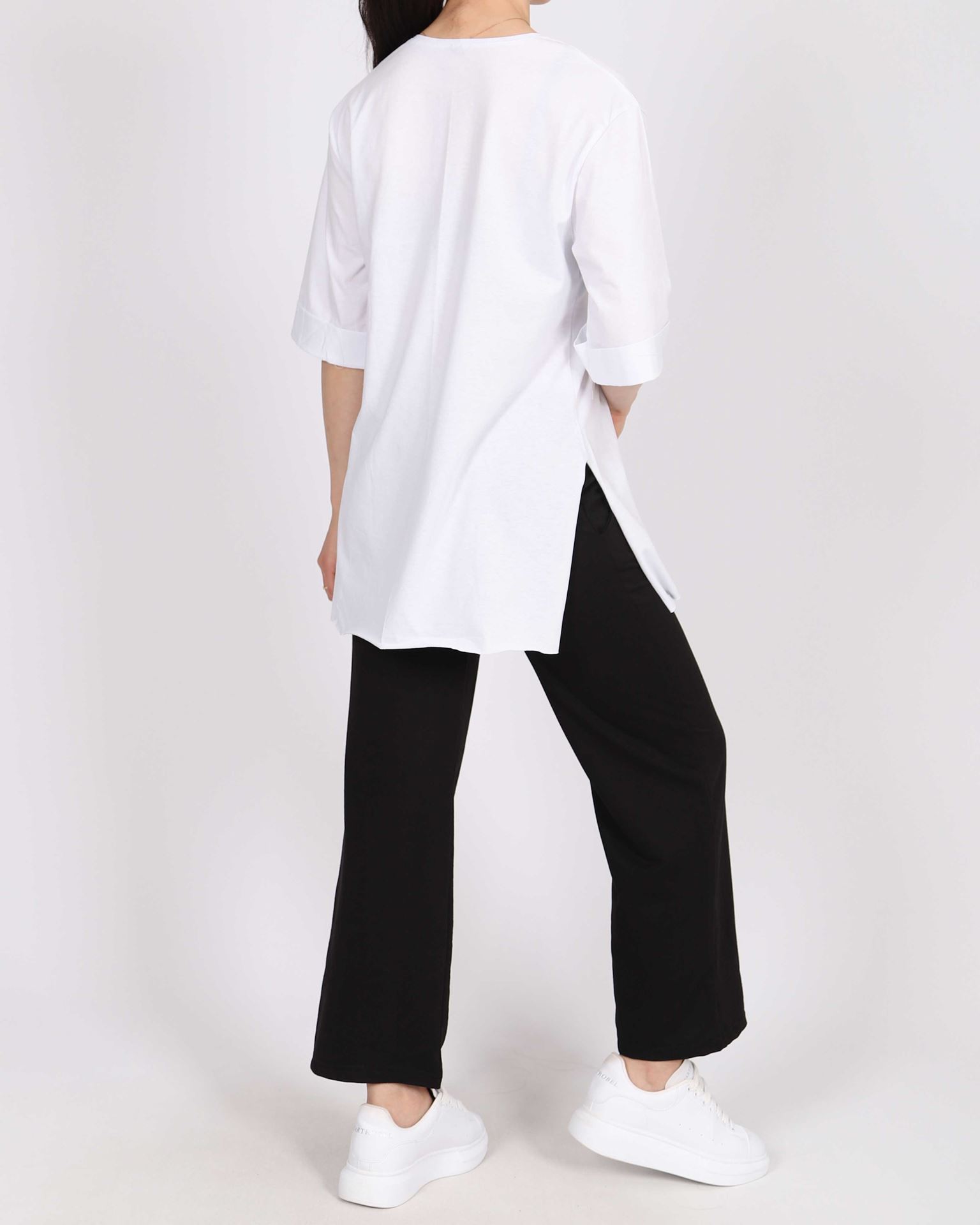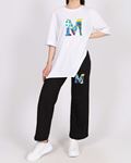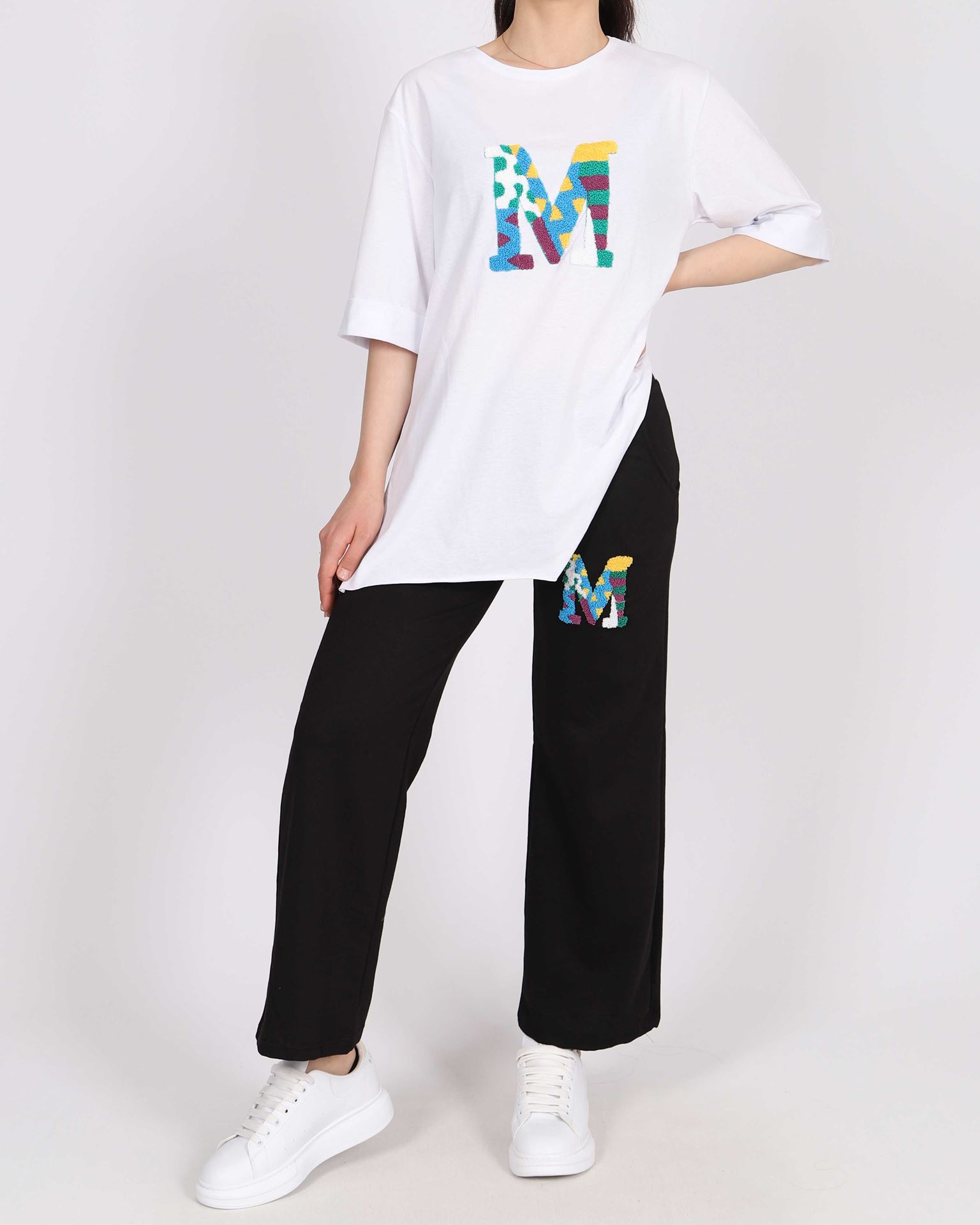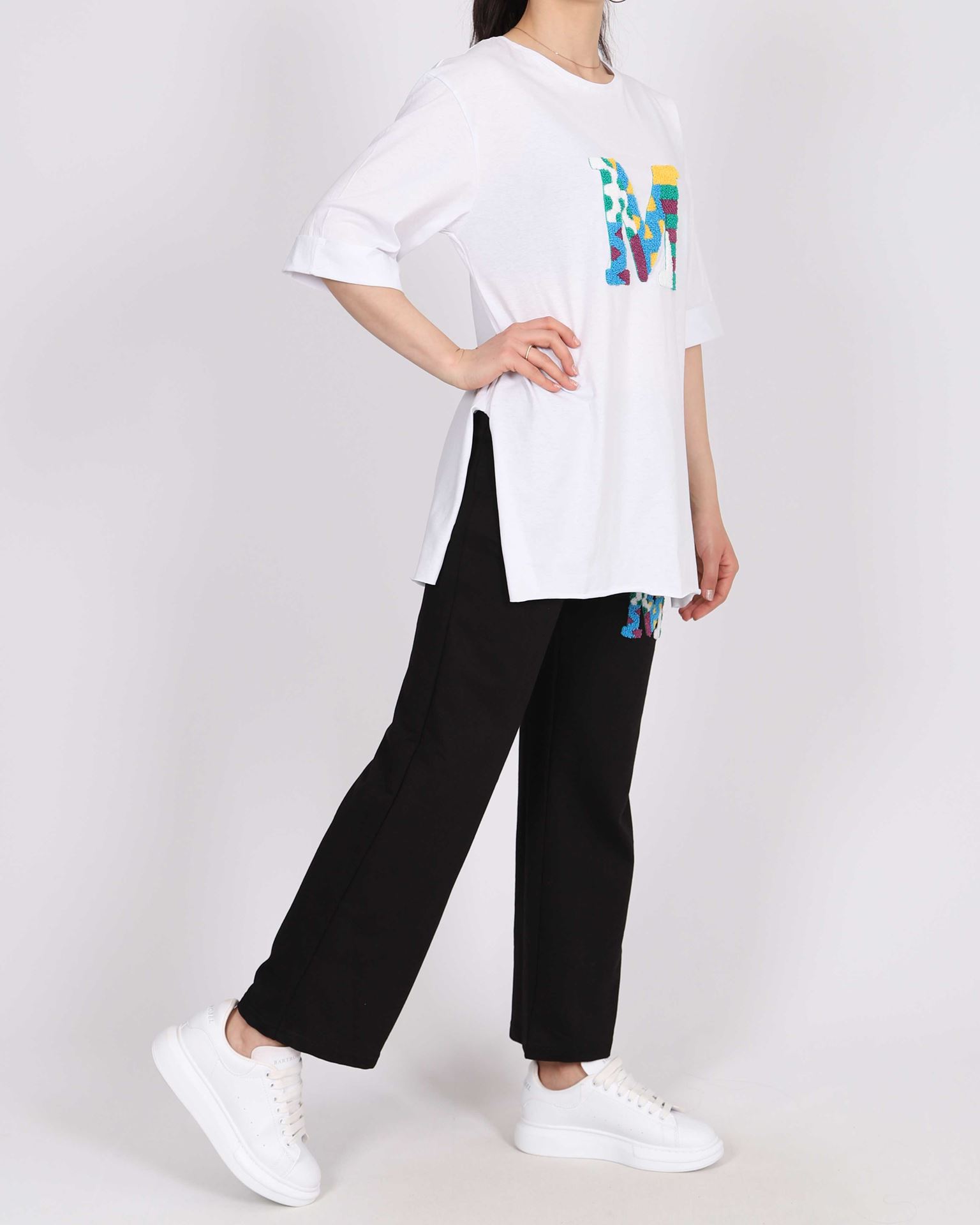 Beyaz Duble Kol Nakışlı Eşofman Takımı TKM2008
