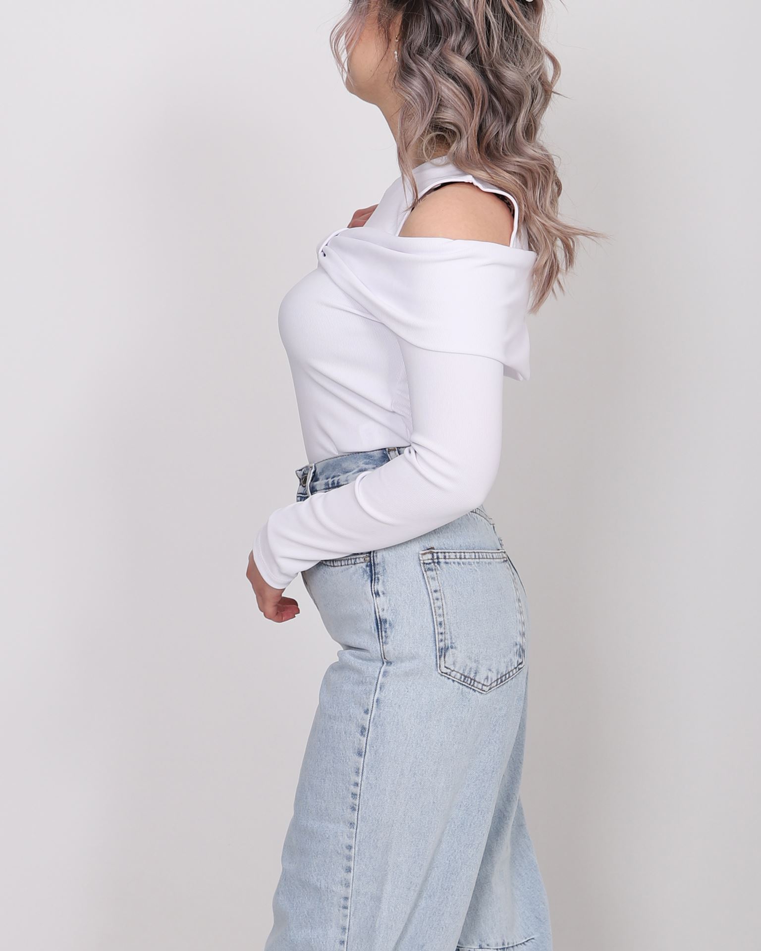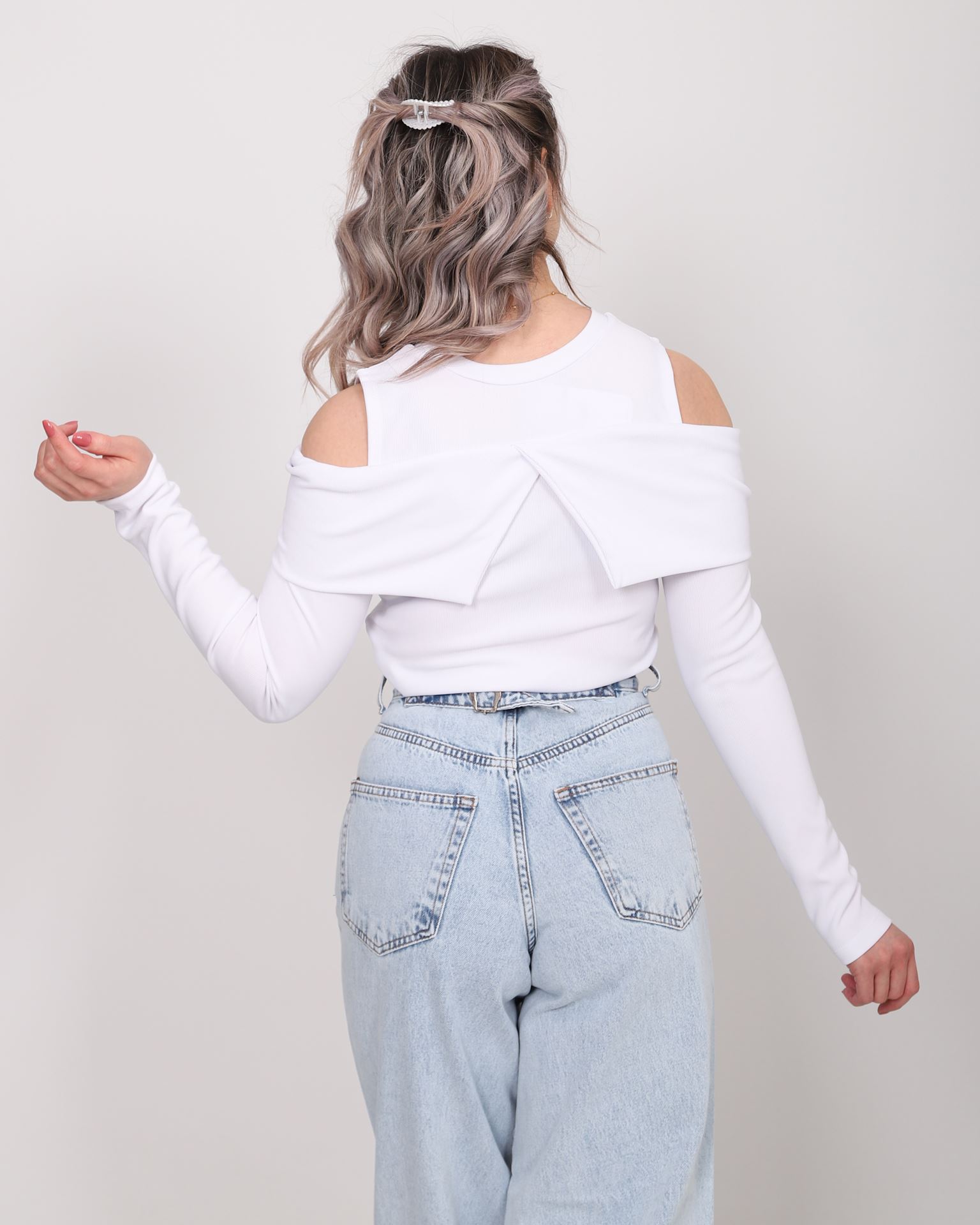 Beyaz Fiyonk Detaylı Bluz BLZ497