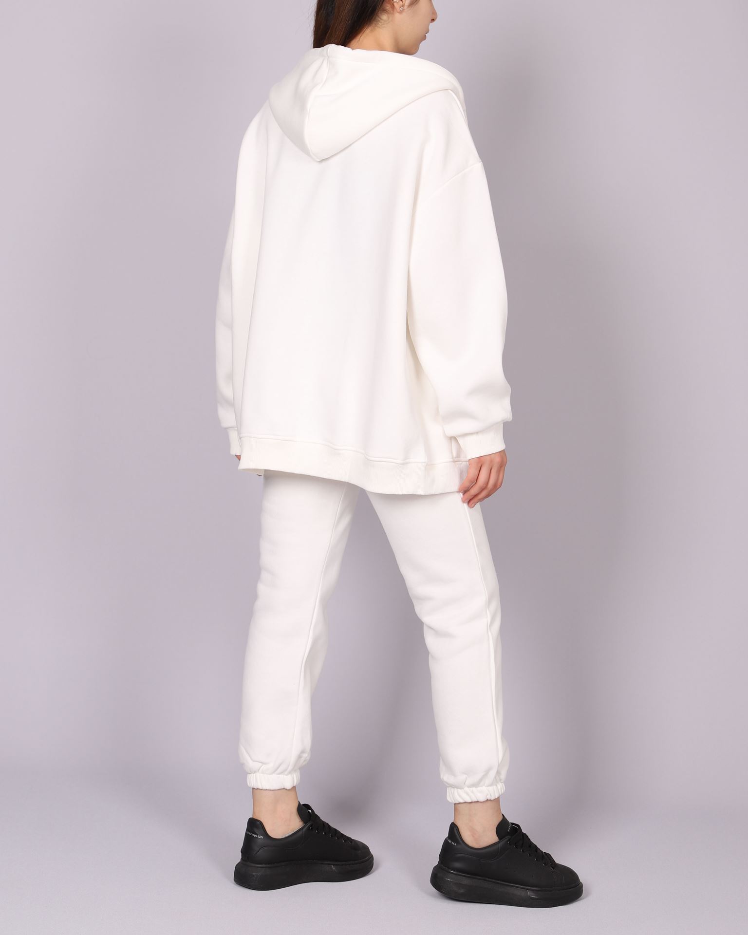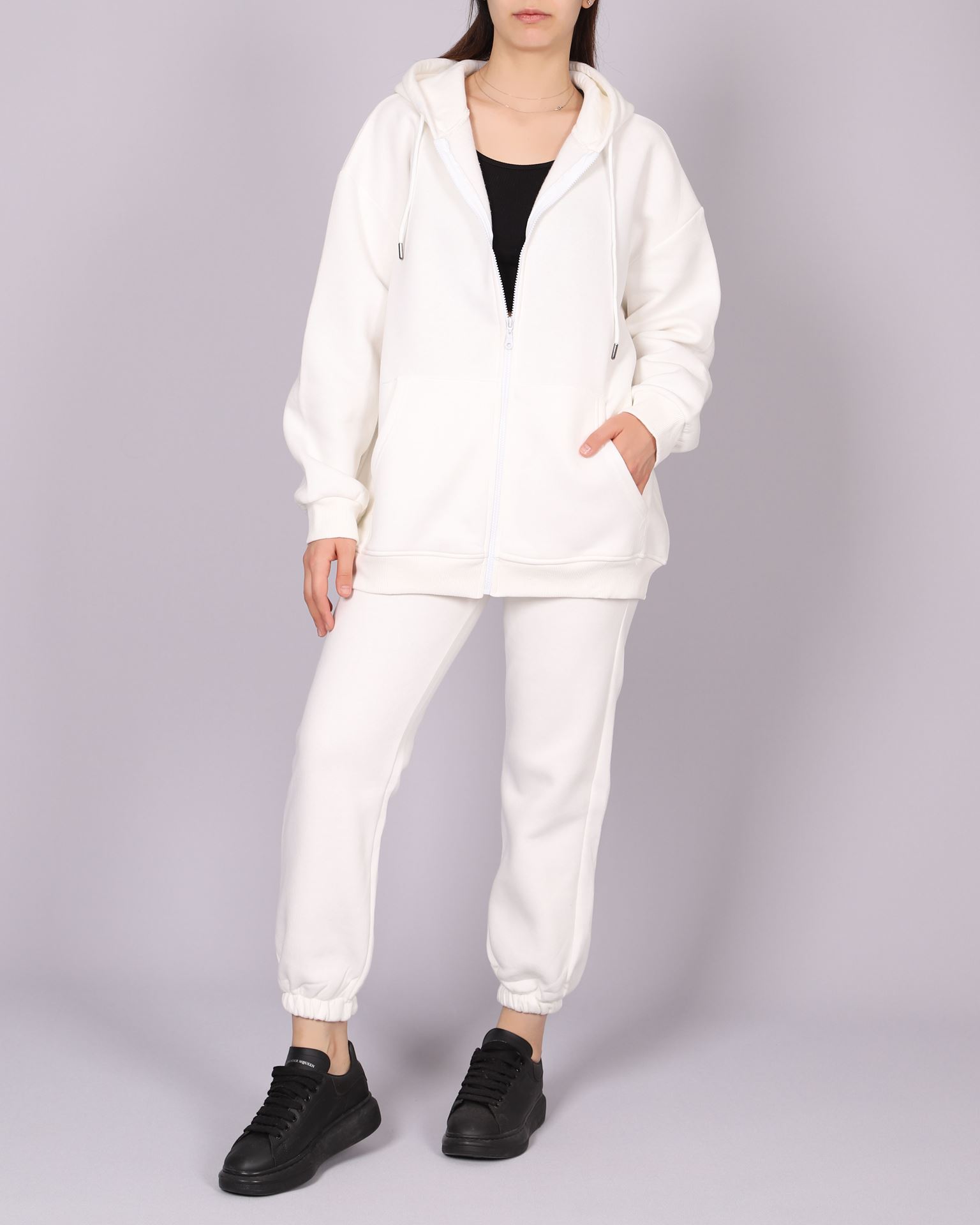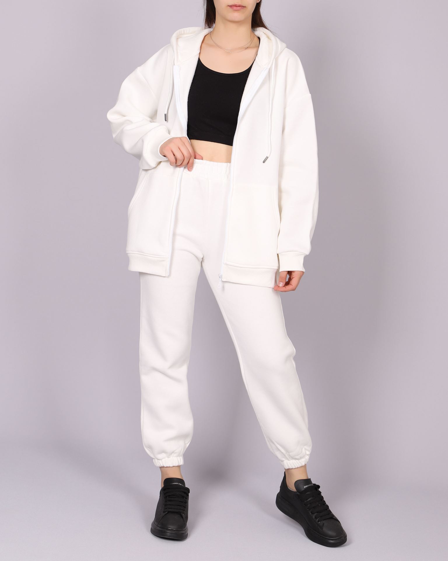 Beyaz İçi Şardonlu Fermuarlı Eşofman Takımı TKM2574