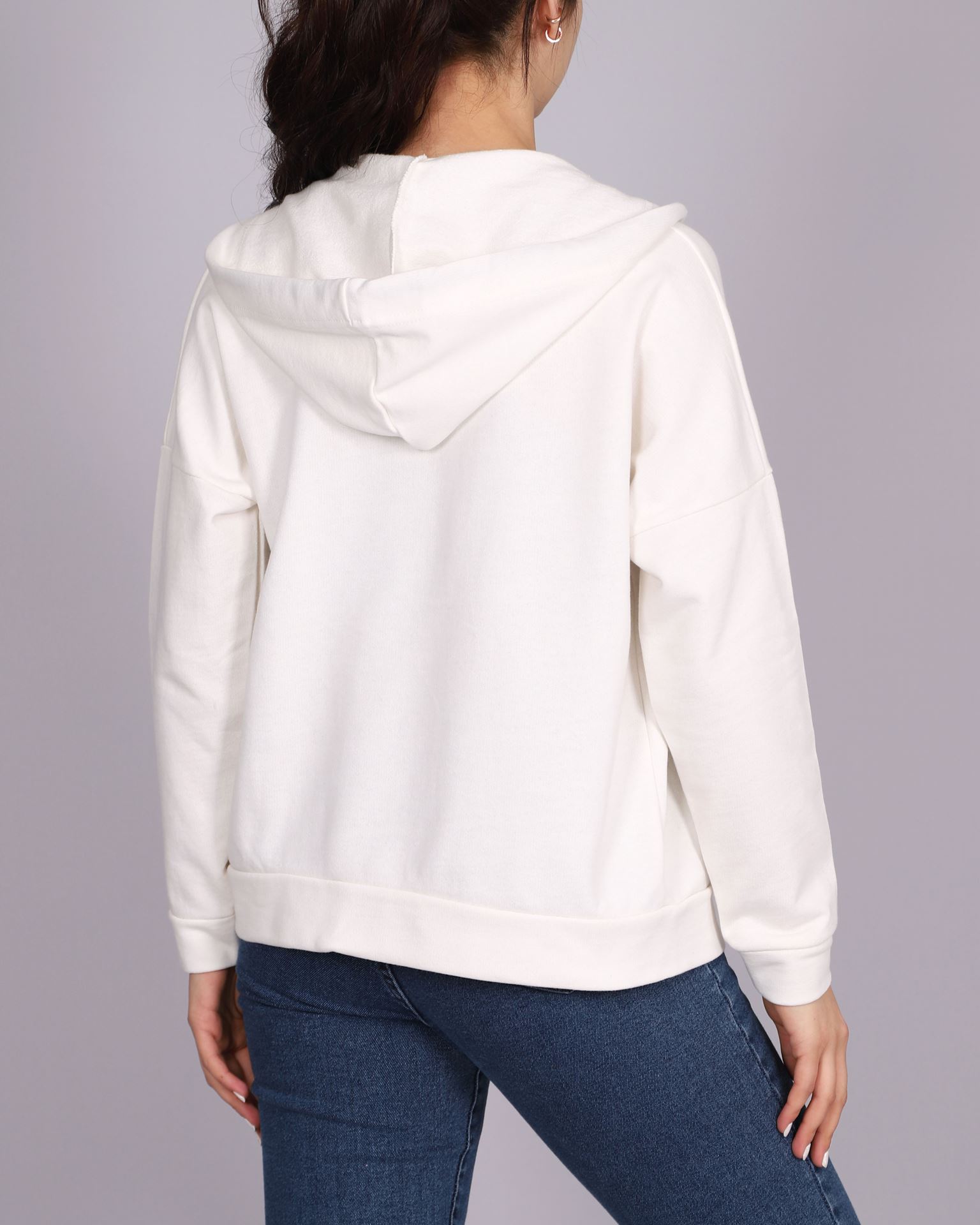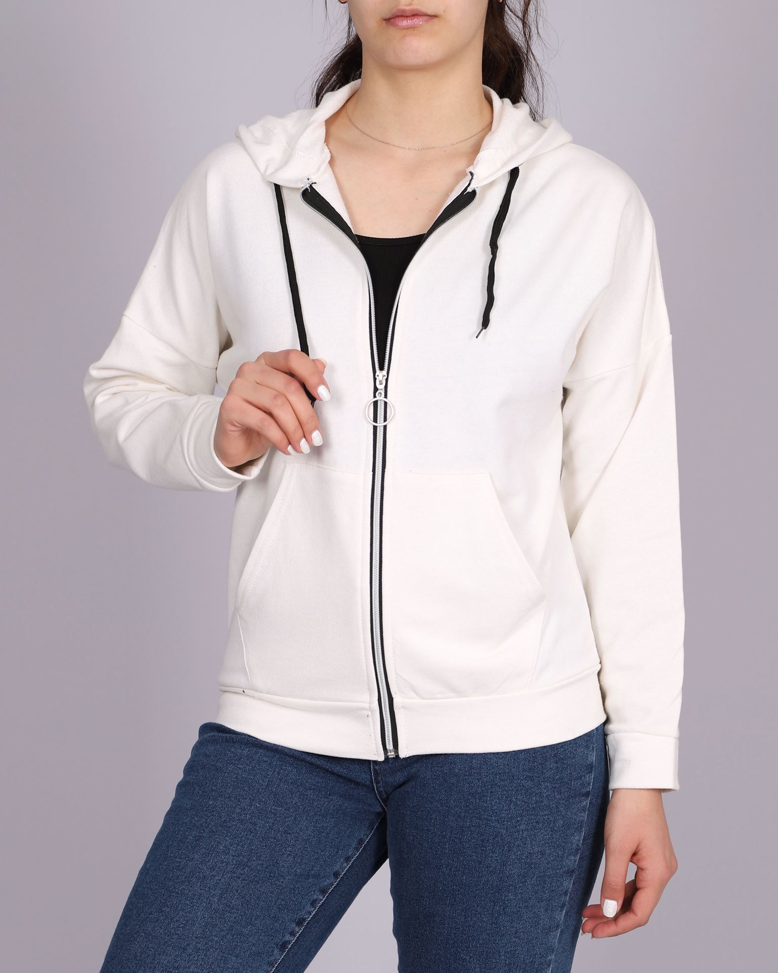 Beyaz Kapüşonlu Fermuarlı Sweat SWT888