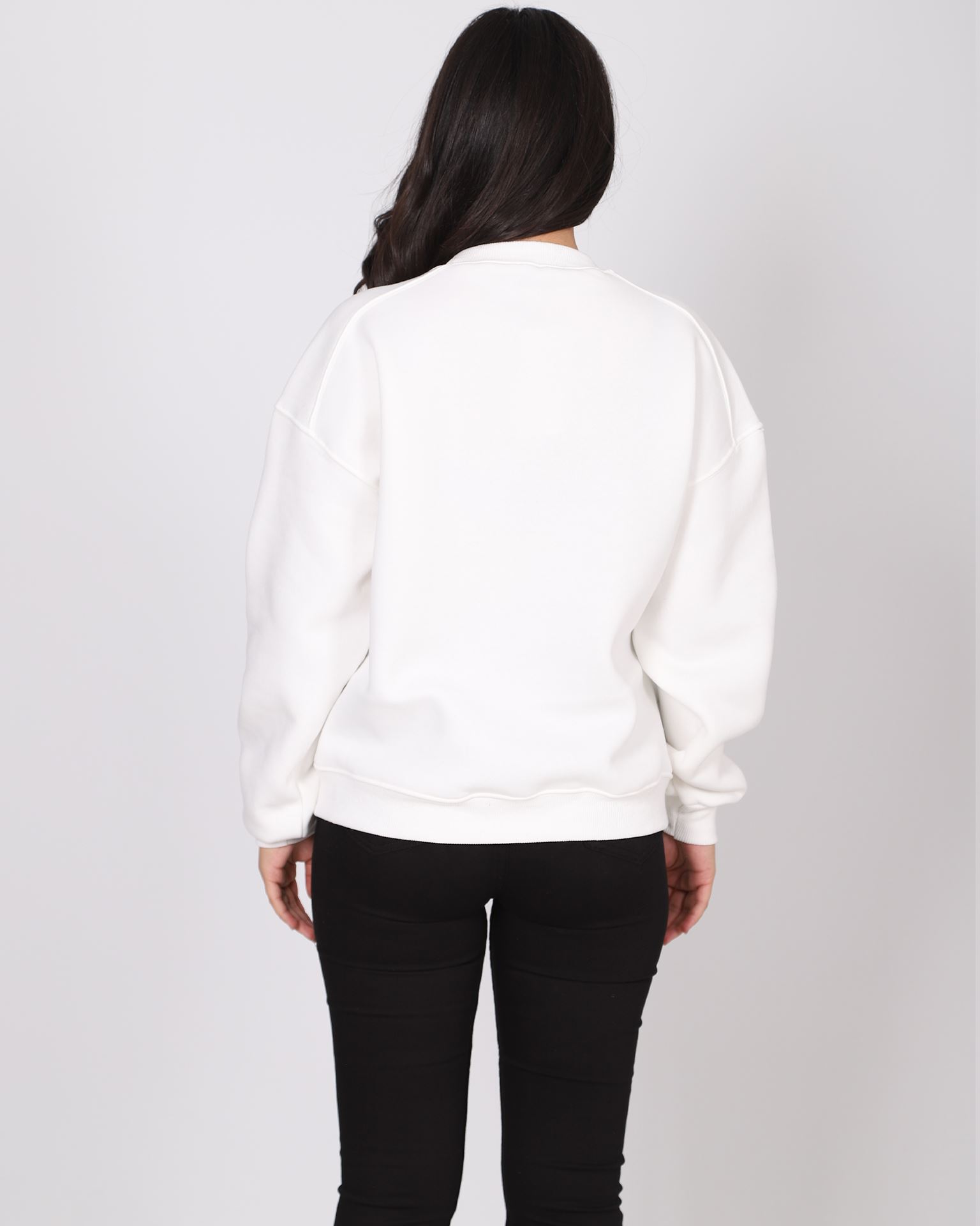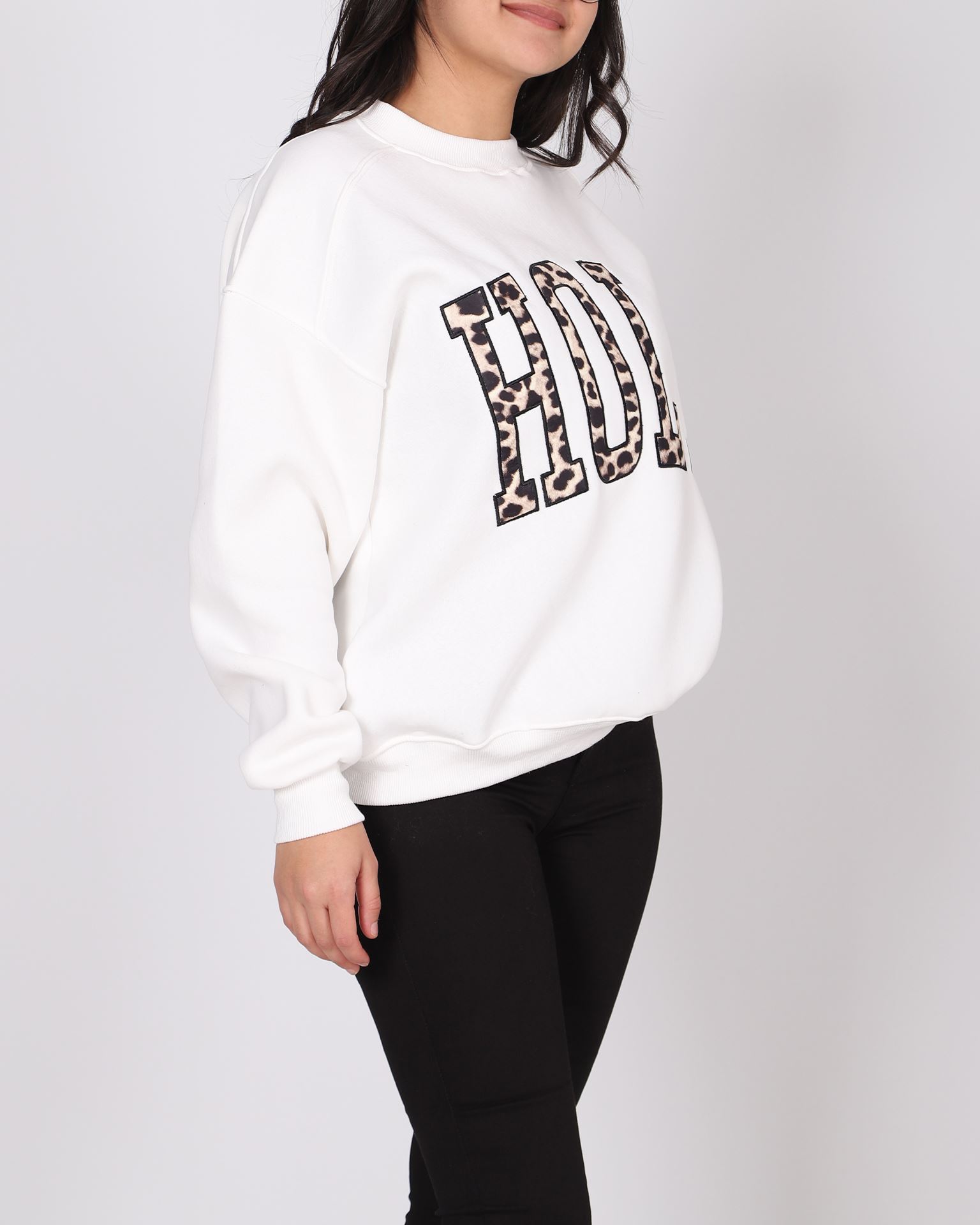 Beyaz Leopar Baskılı Üç İplik Şardonlu Sweat SWT1072