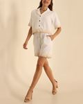 Beyaz Nakış İşlemeli Keten İkili Takım TKM2543