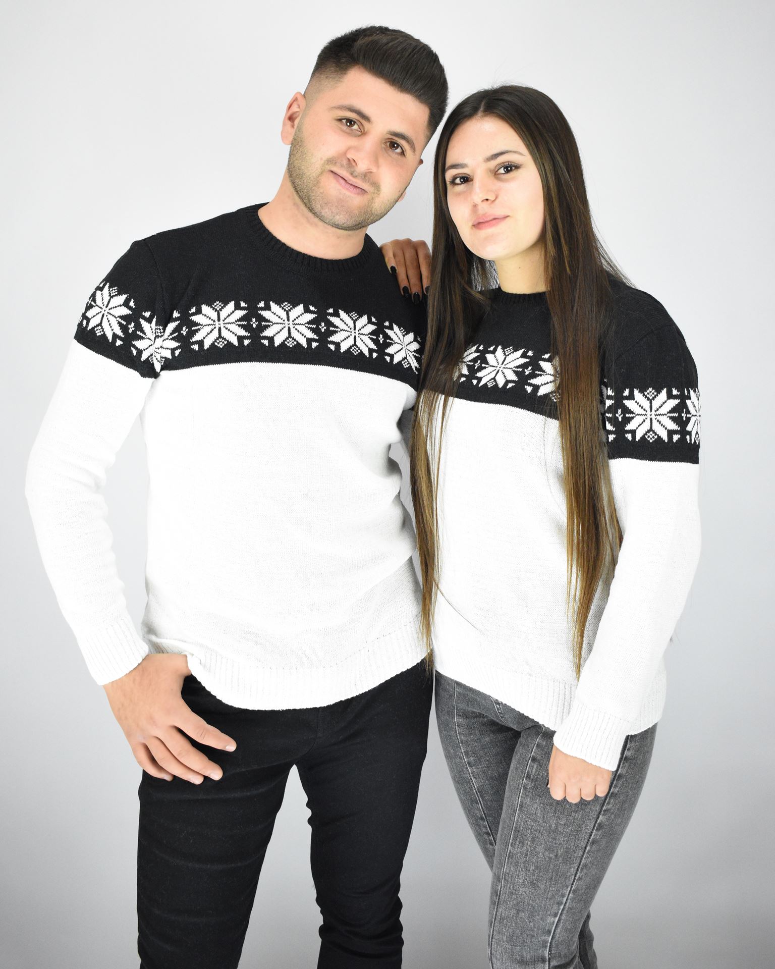 Beyaz Nakışlı Triko Sevgili Kombini SVG400