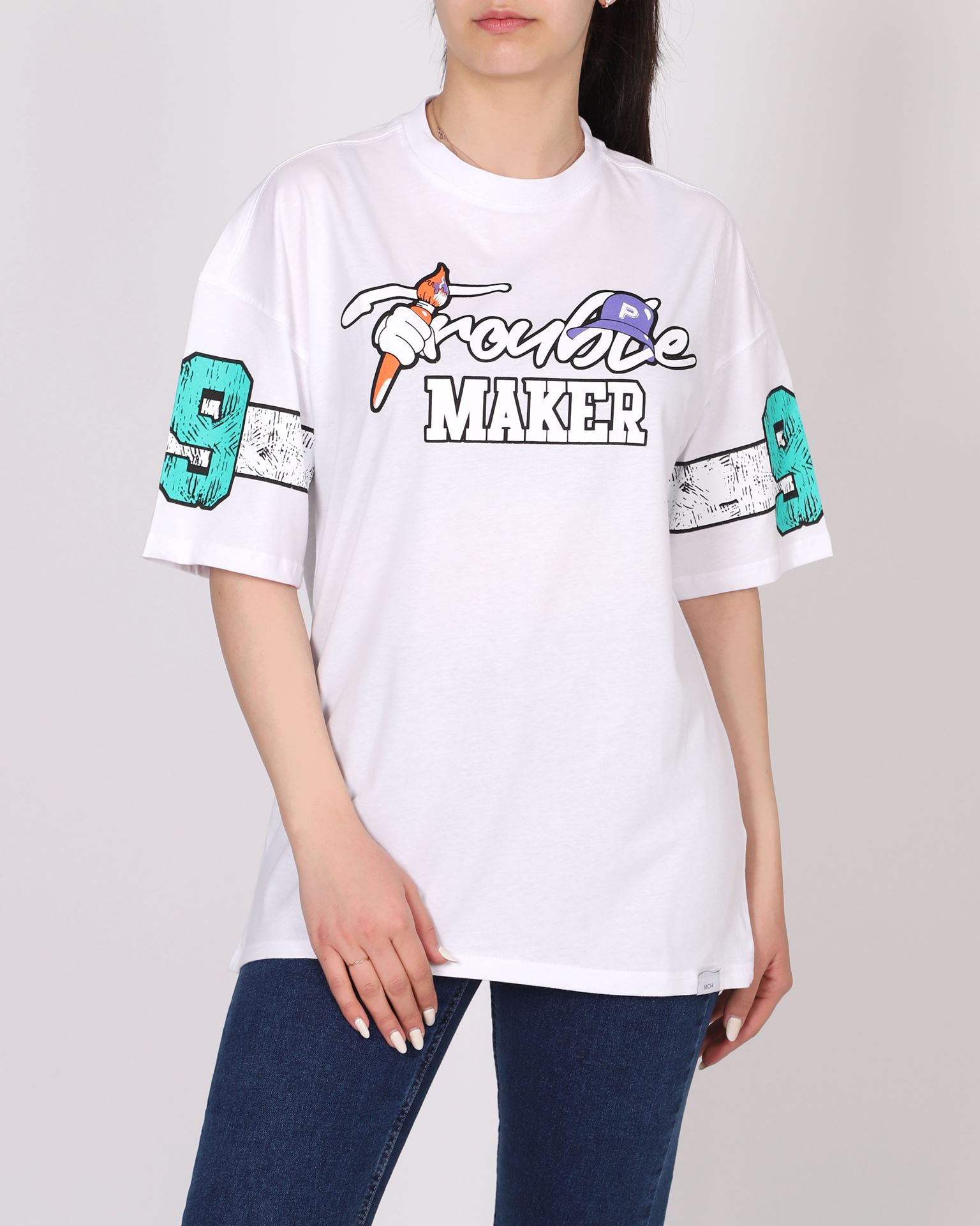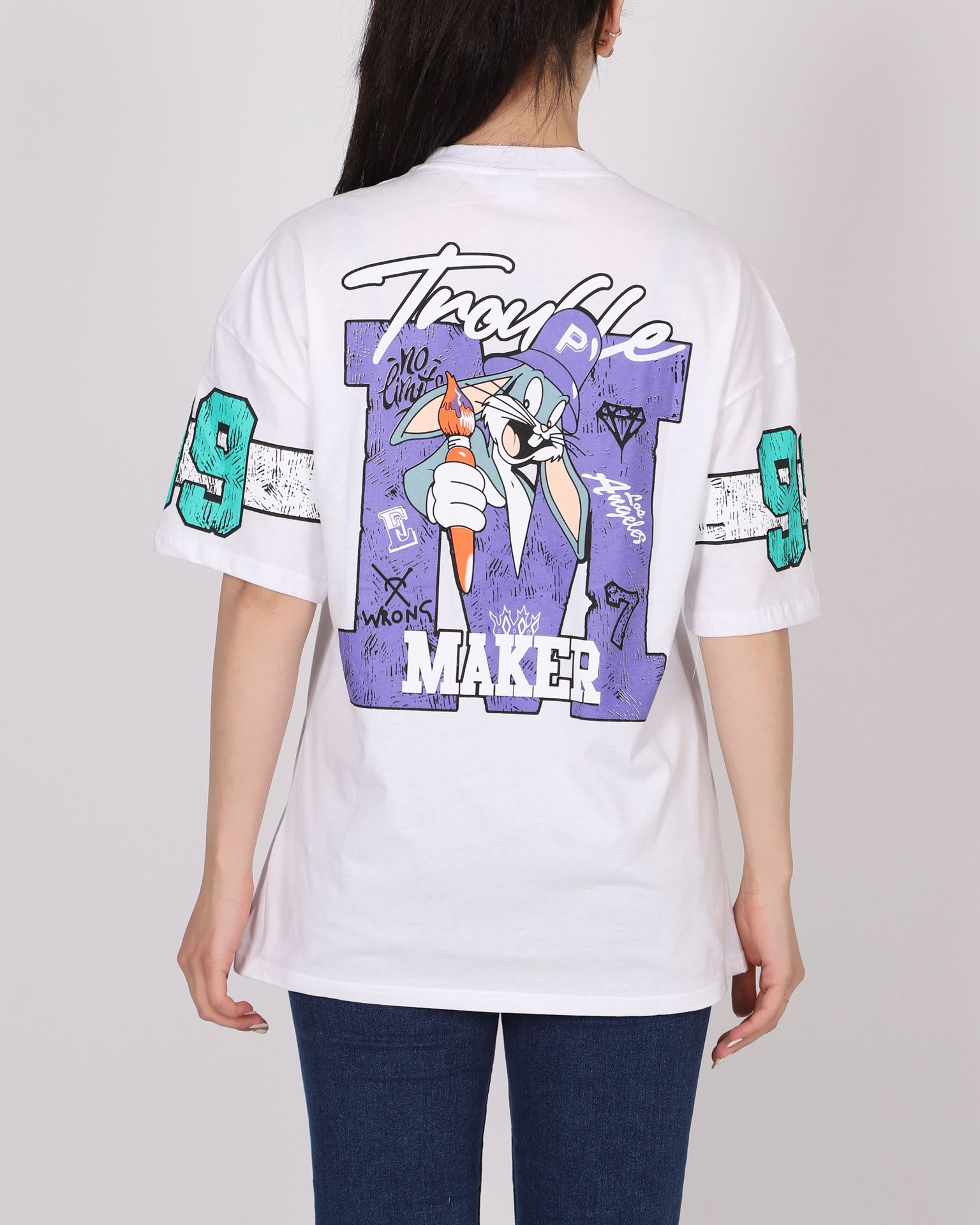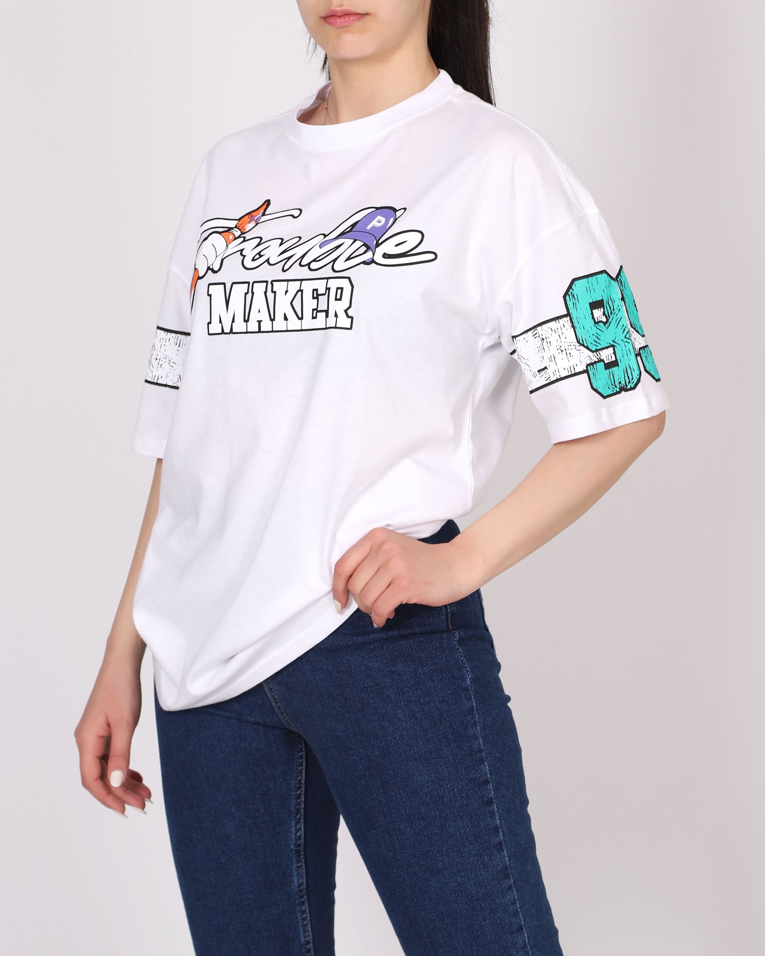 Beyaz Oversize Baskılı T-shirt TSH353