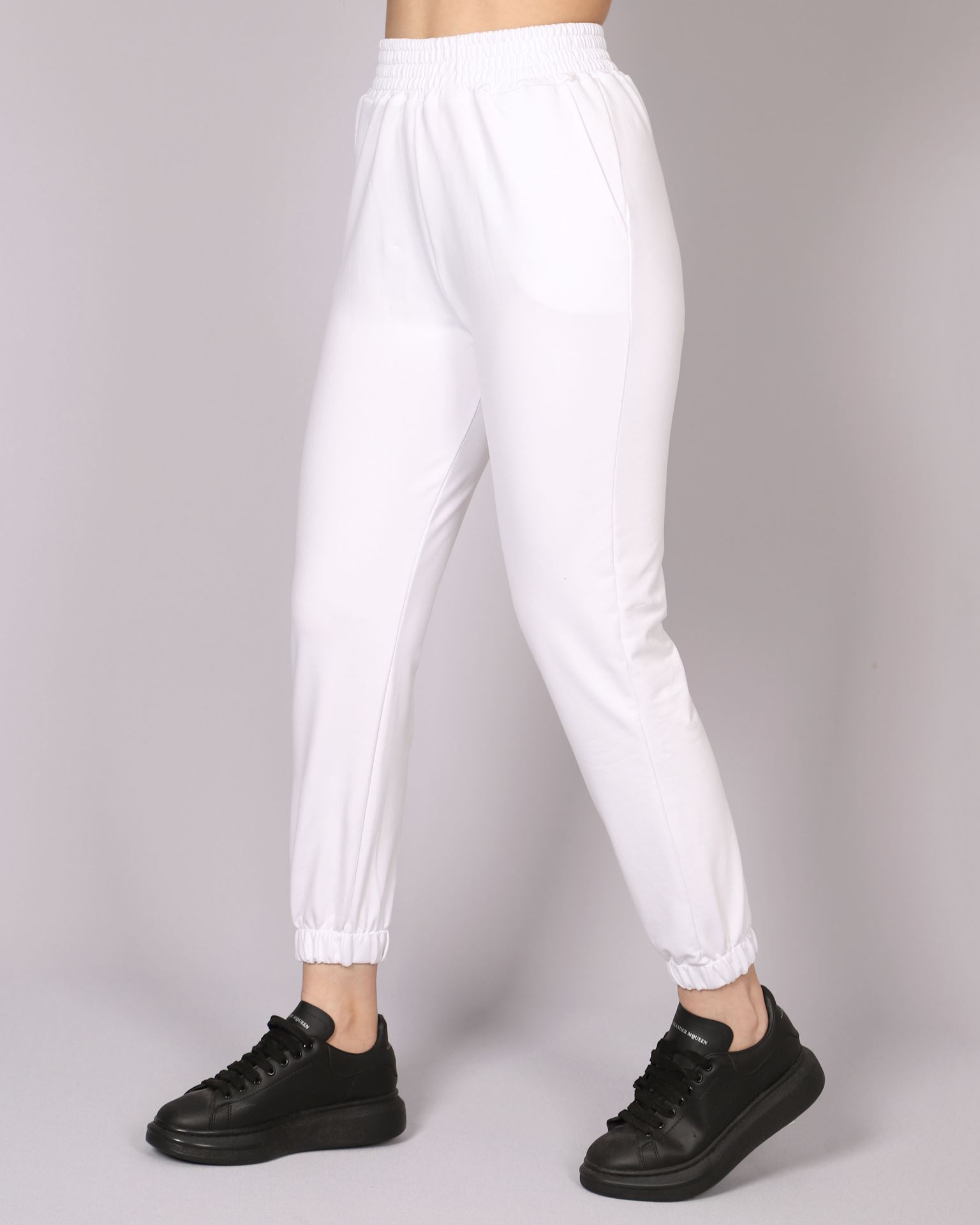 Beyaz Paça Lastikli Eşofman Altı TKM2391