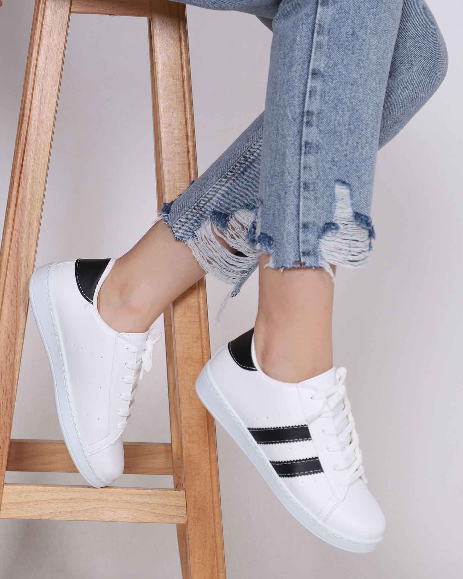 Beyaz Siyah Şeritli Spor Ayakkabı AYK257