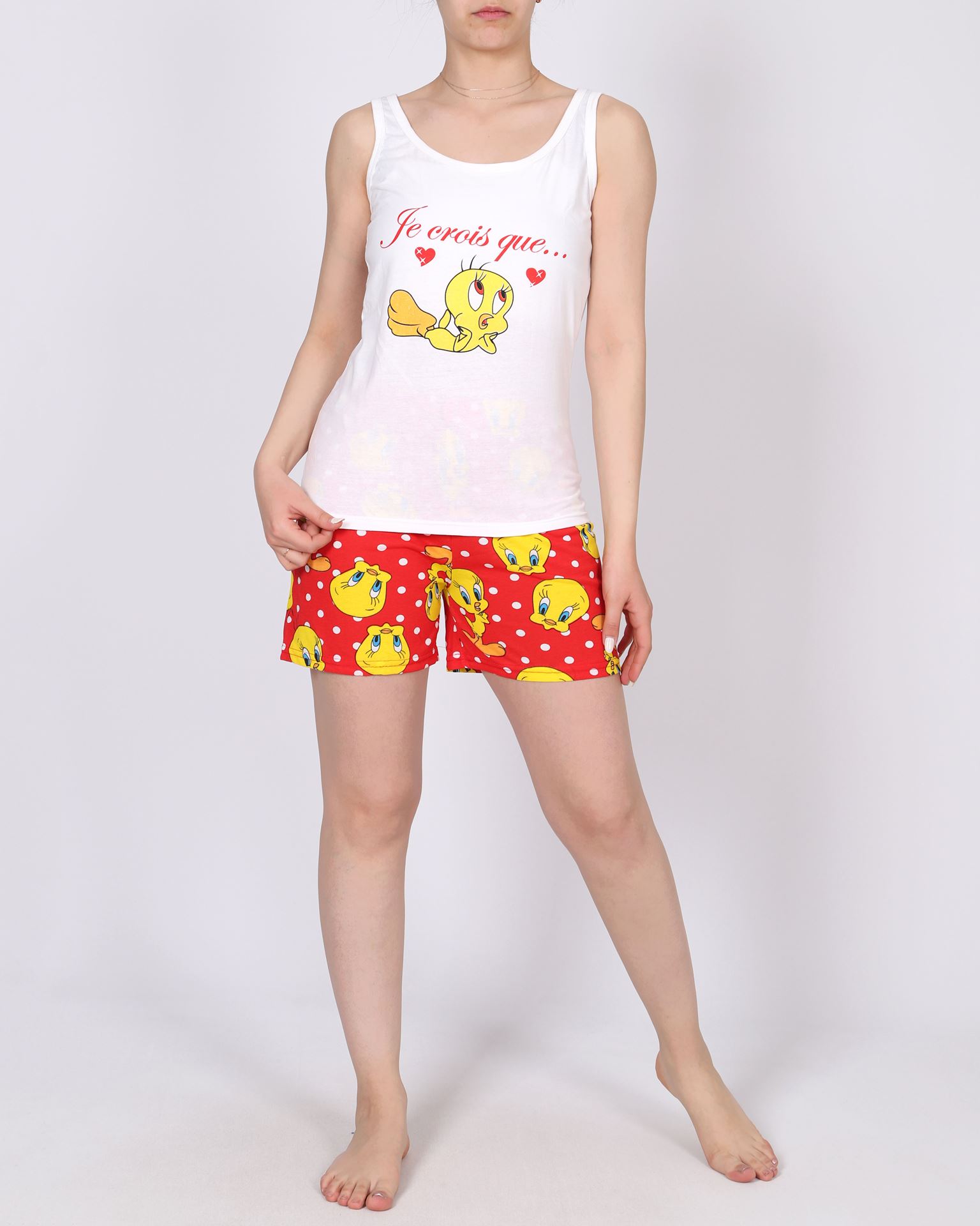 Beyaz Şortlu Pijama Takımı PJM1664