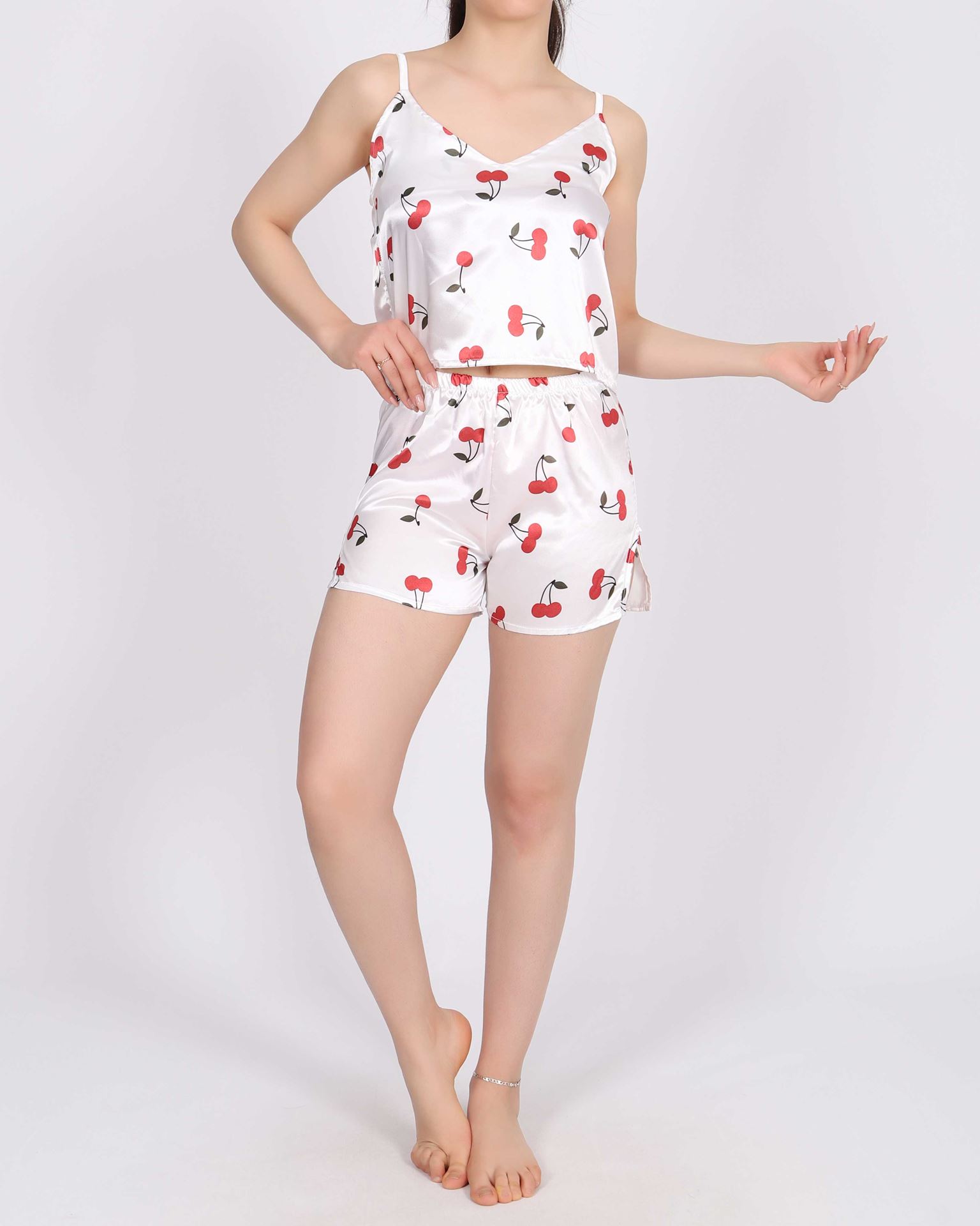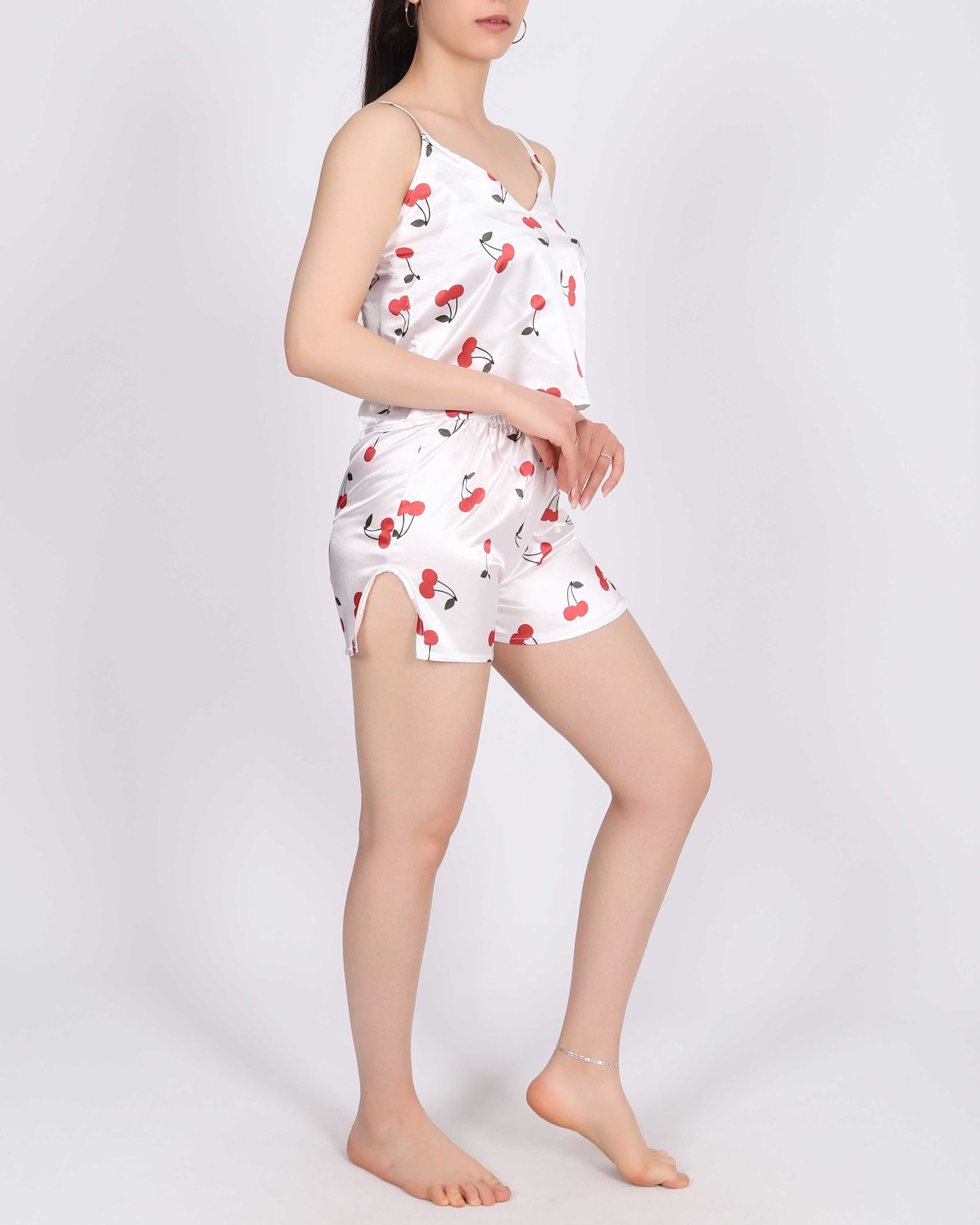 Beyaz Şortlu Saten Pijama Takımı PJM1532