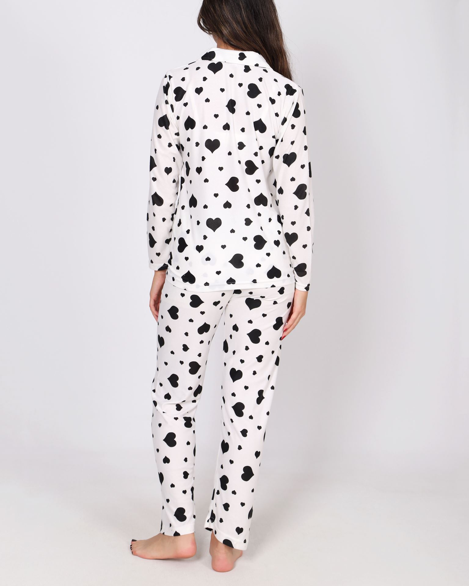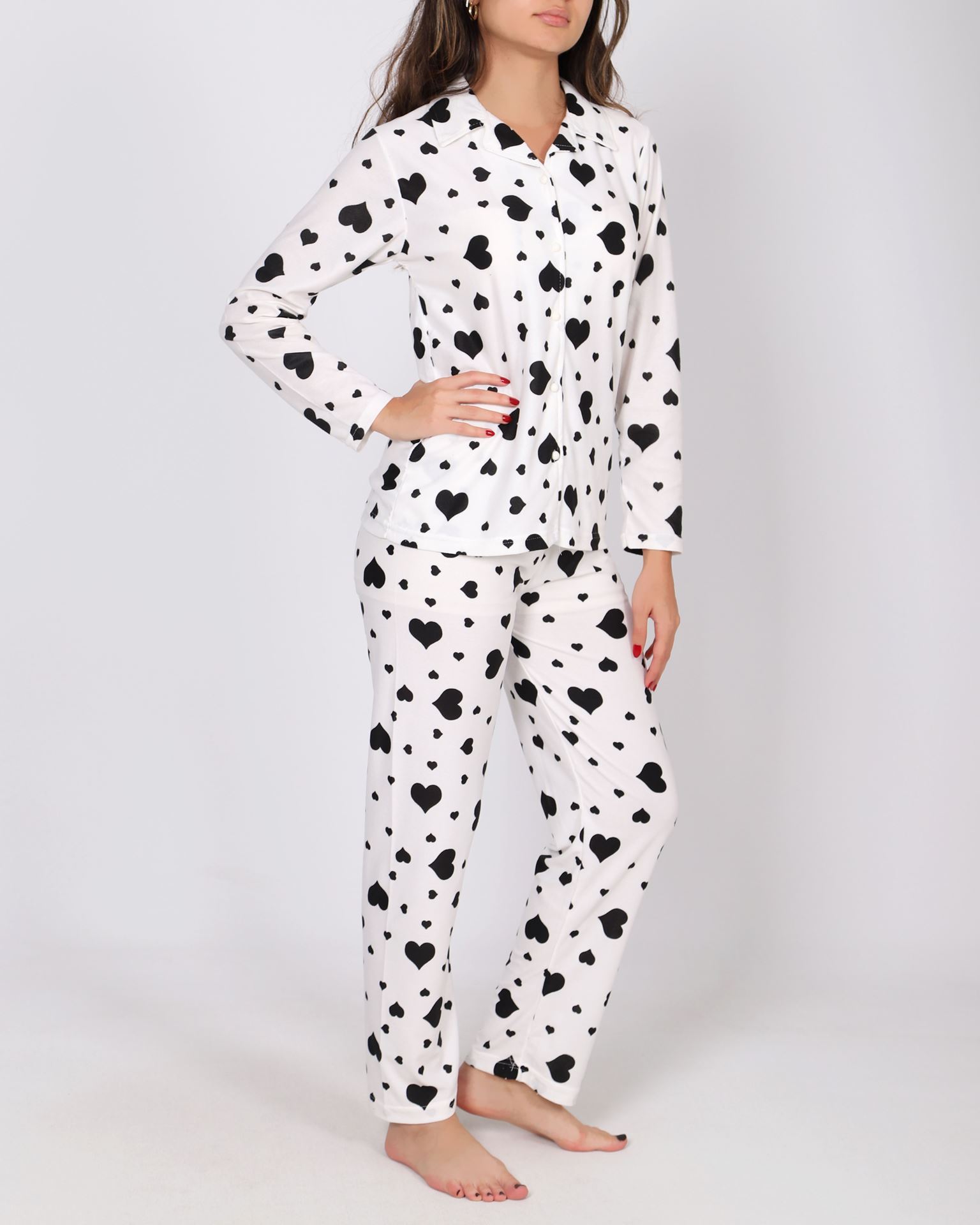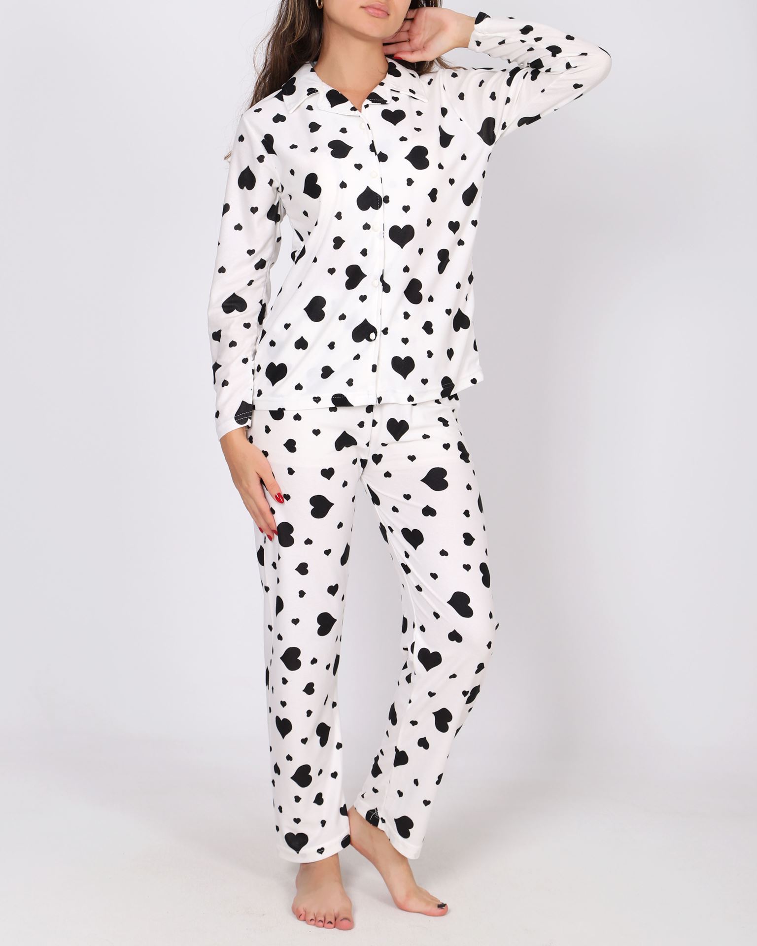 Beyaz Süet Düğmeli Pijama Takımı PJM2100