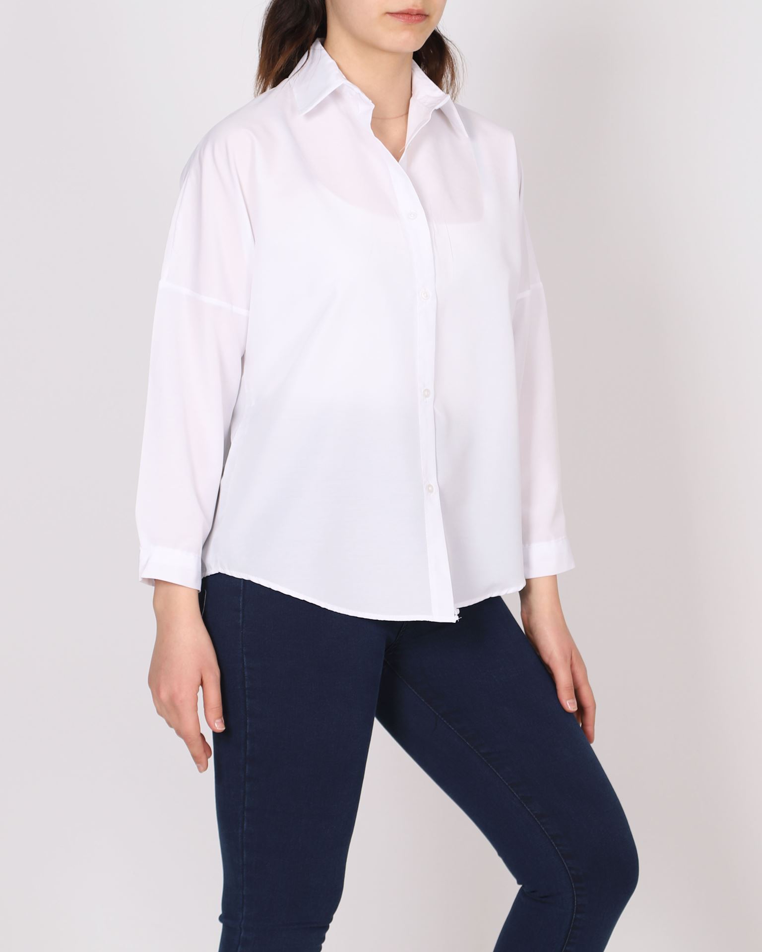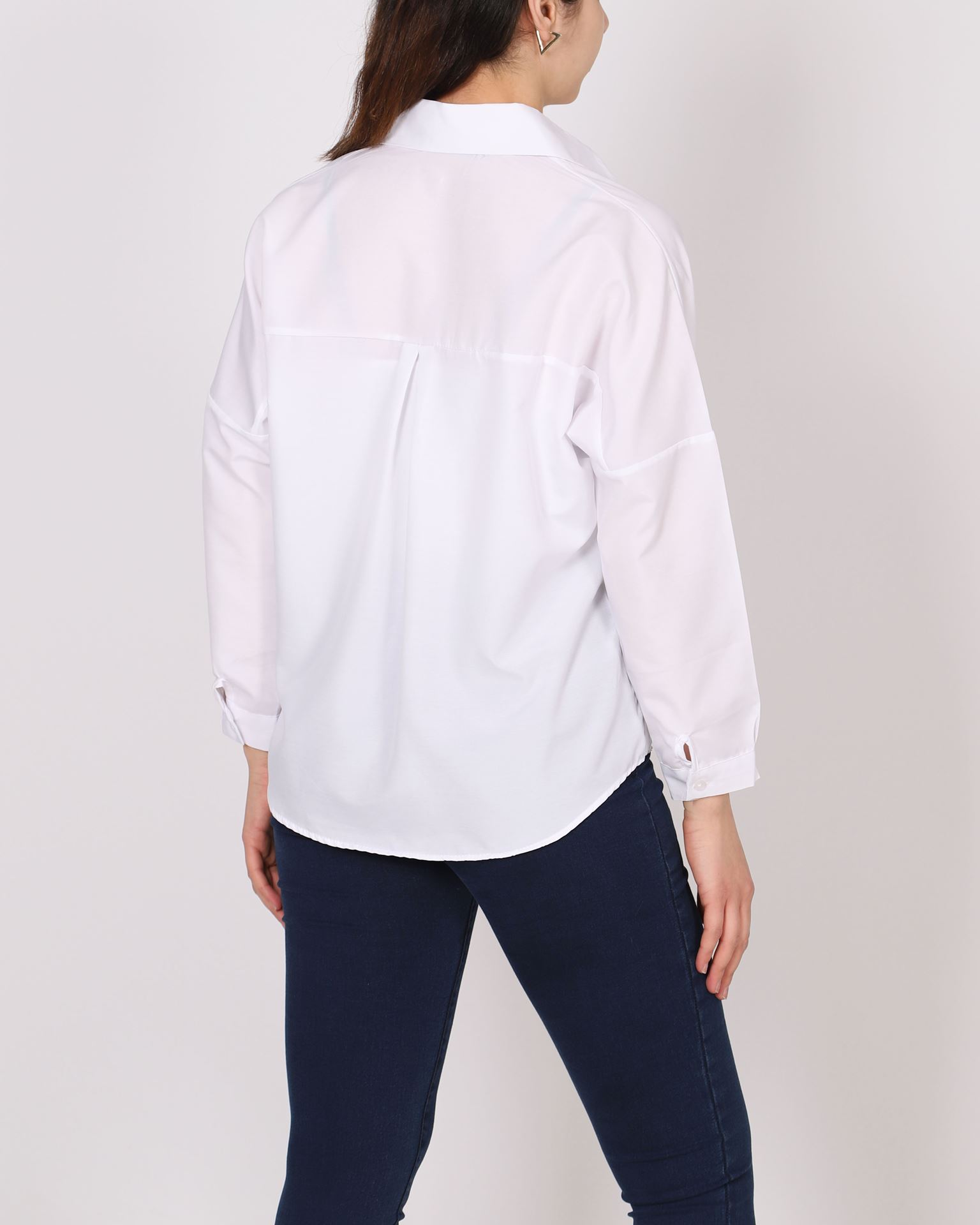Beyaz Terikoton Oversize Gömlek GML146