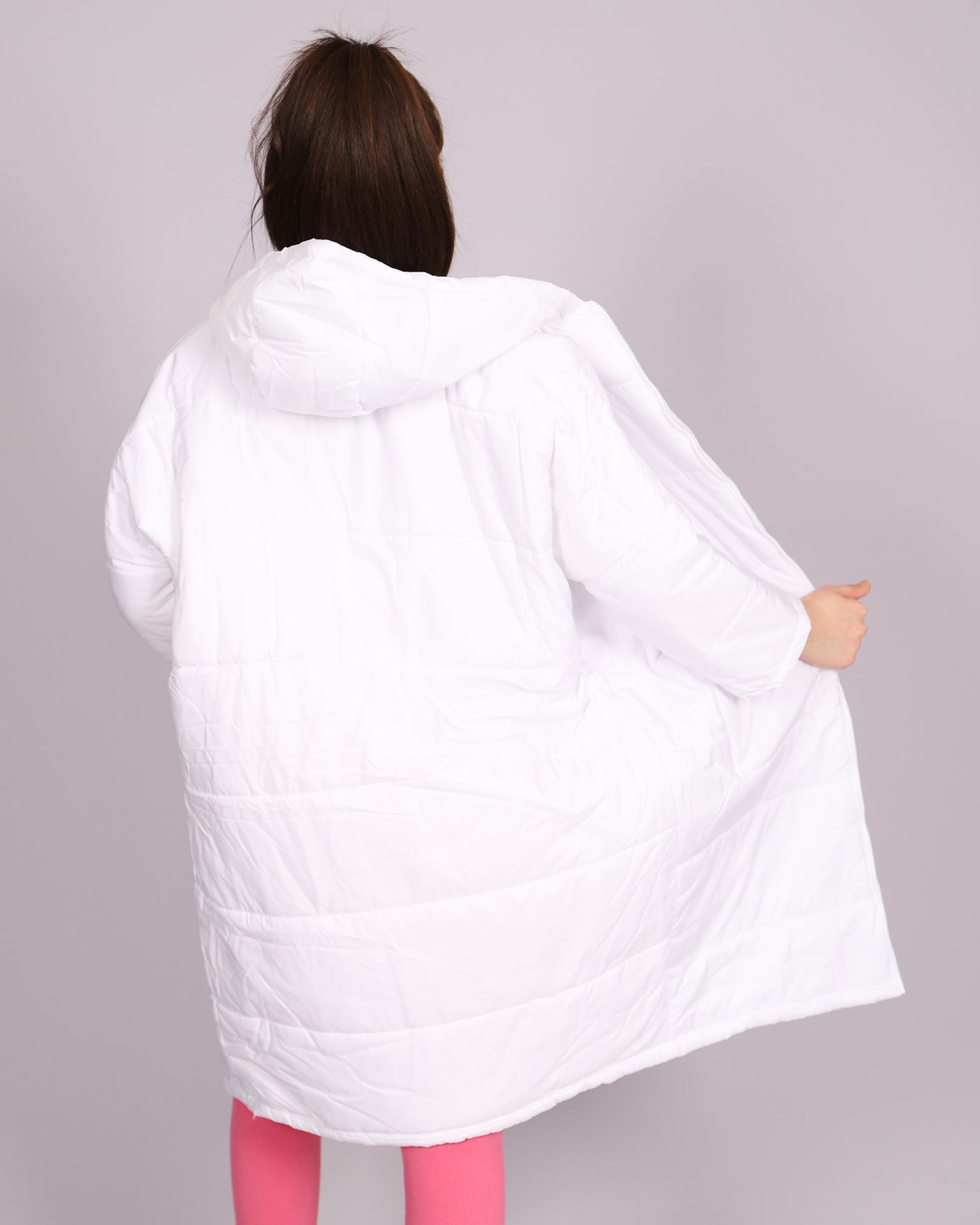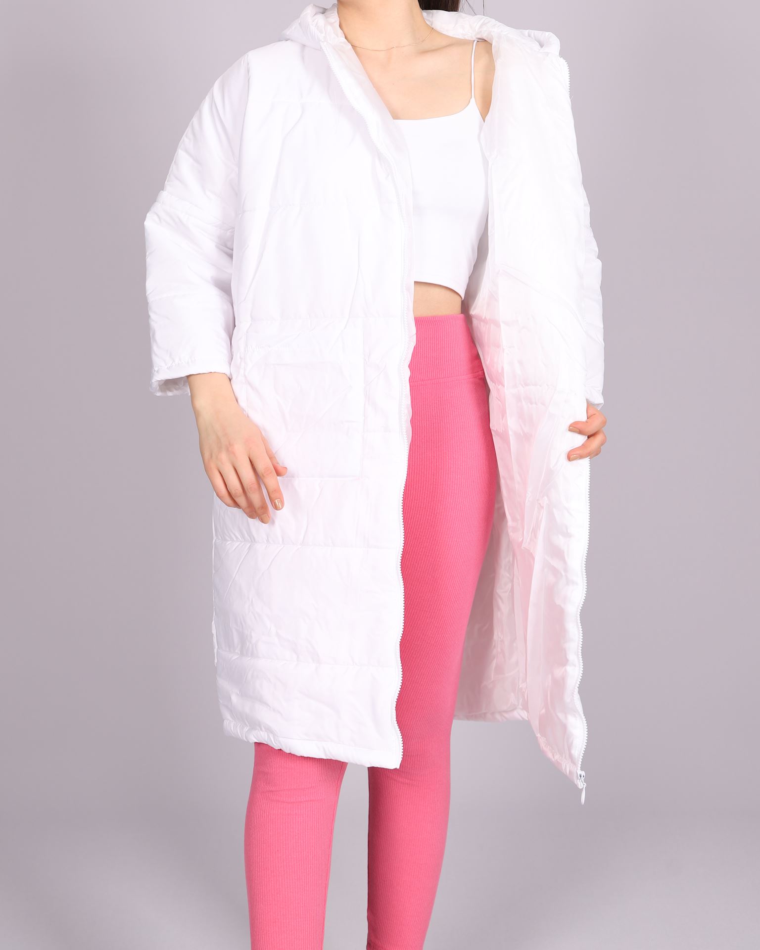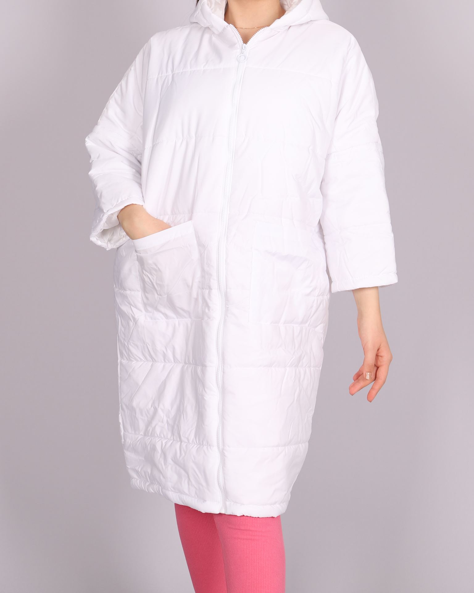 Beyaz Uzun Şişme Mont MNT044