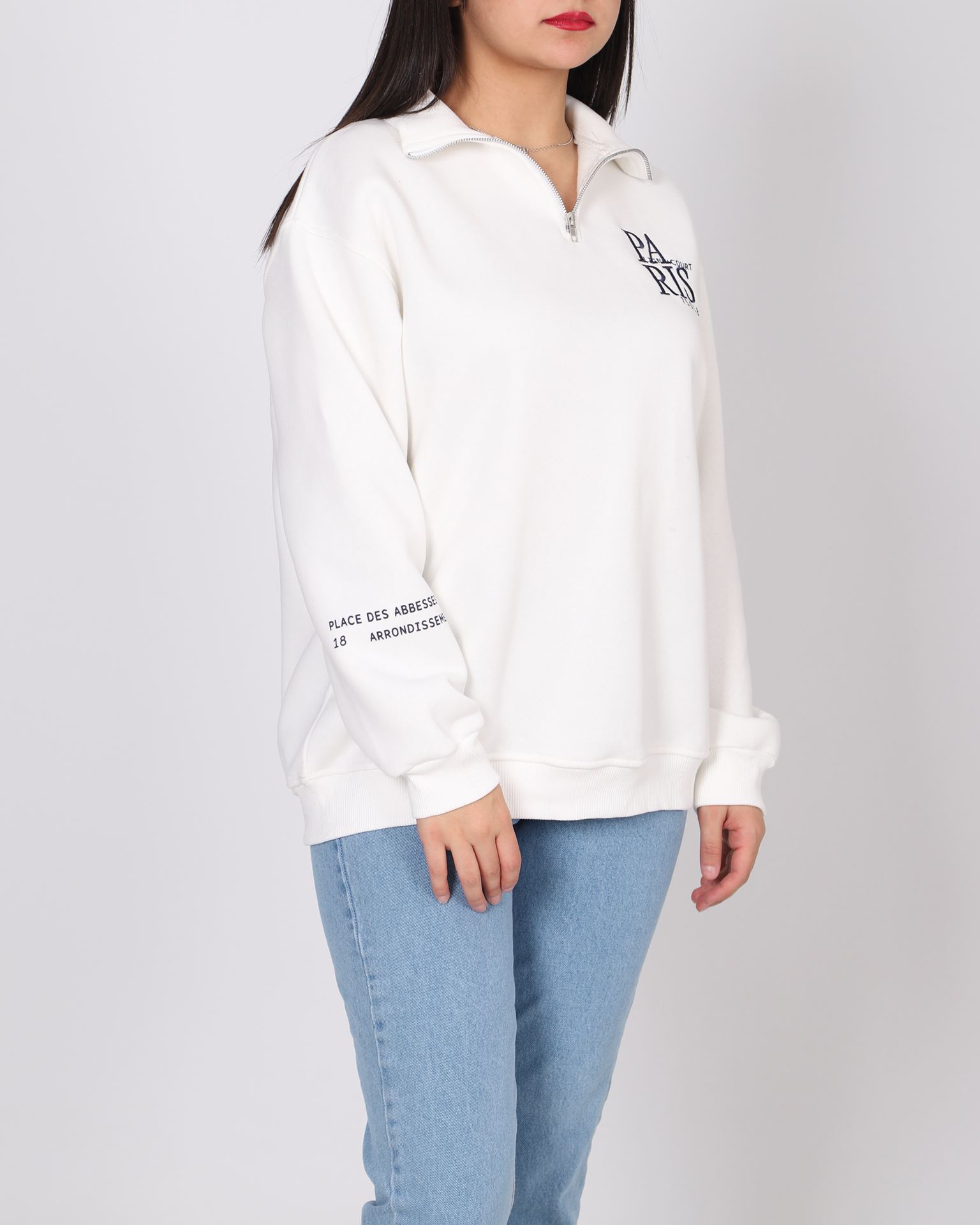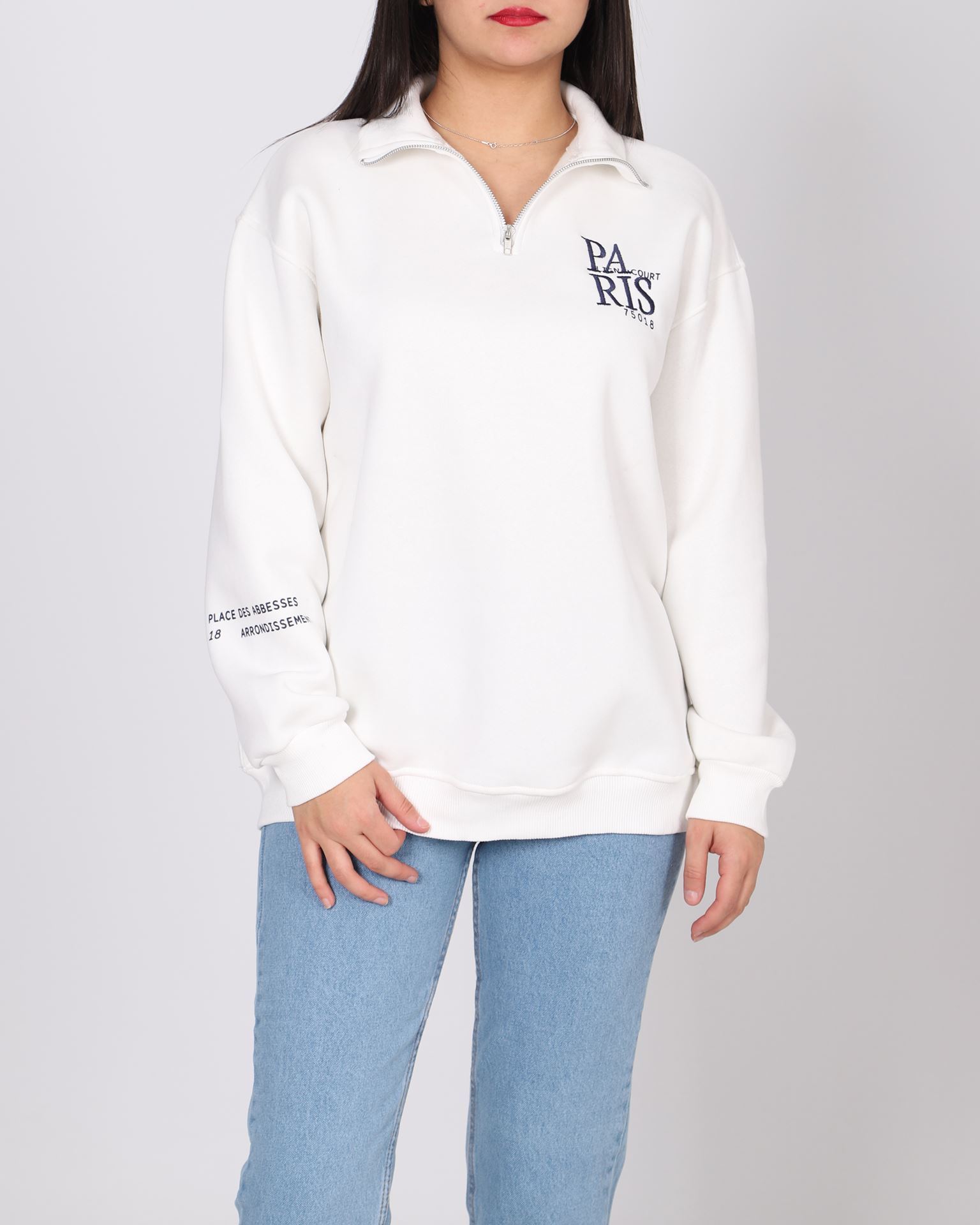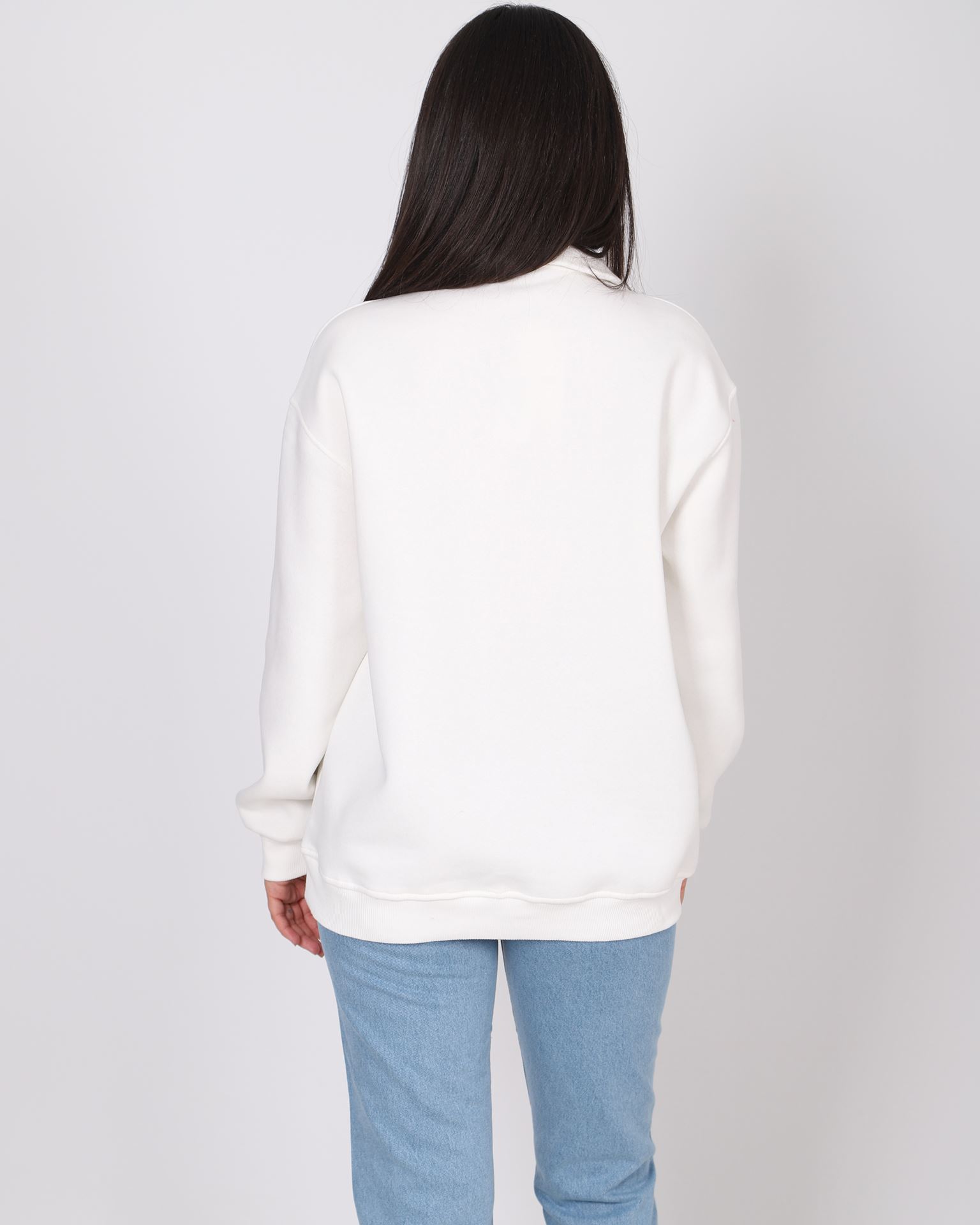 Beyaz Yazı Baskılı Üç İplik Şardonlu Sweat SWT1083