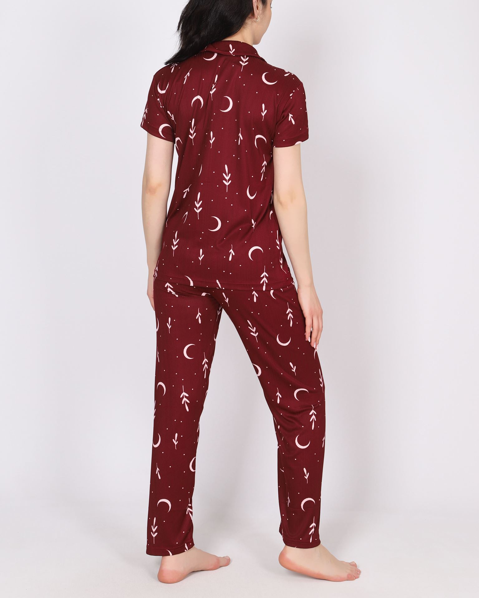 Bordo Gömlek Yaka Pijama Takımı PJM1989