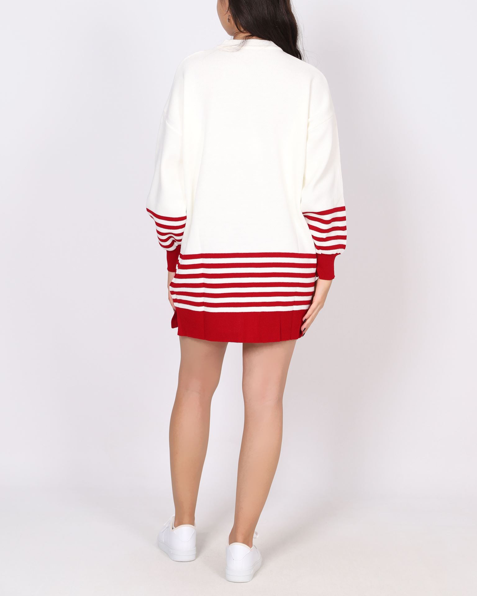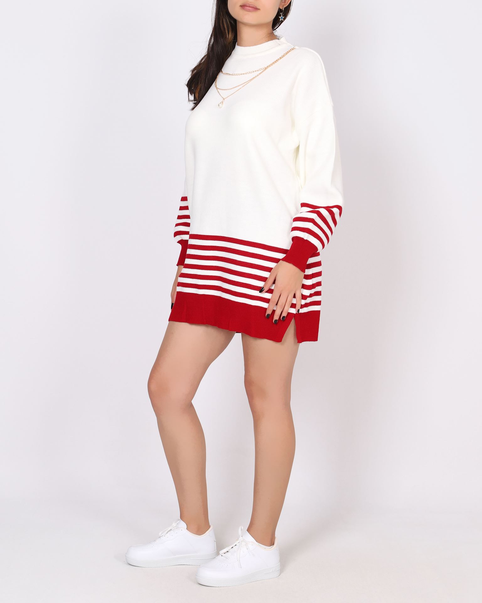 Bordo Kolyeli Çizgili Triko Tunik KZK620