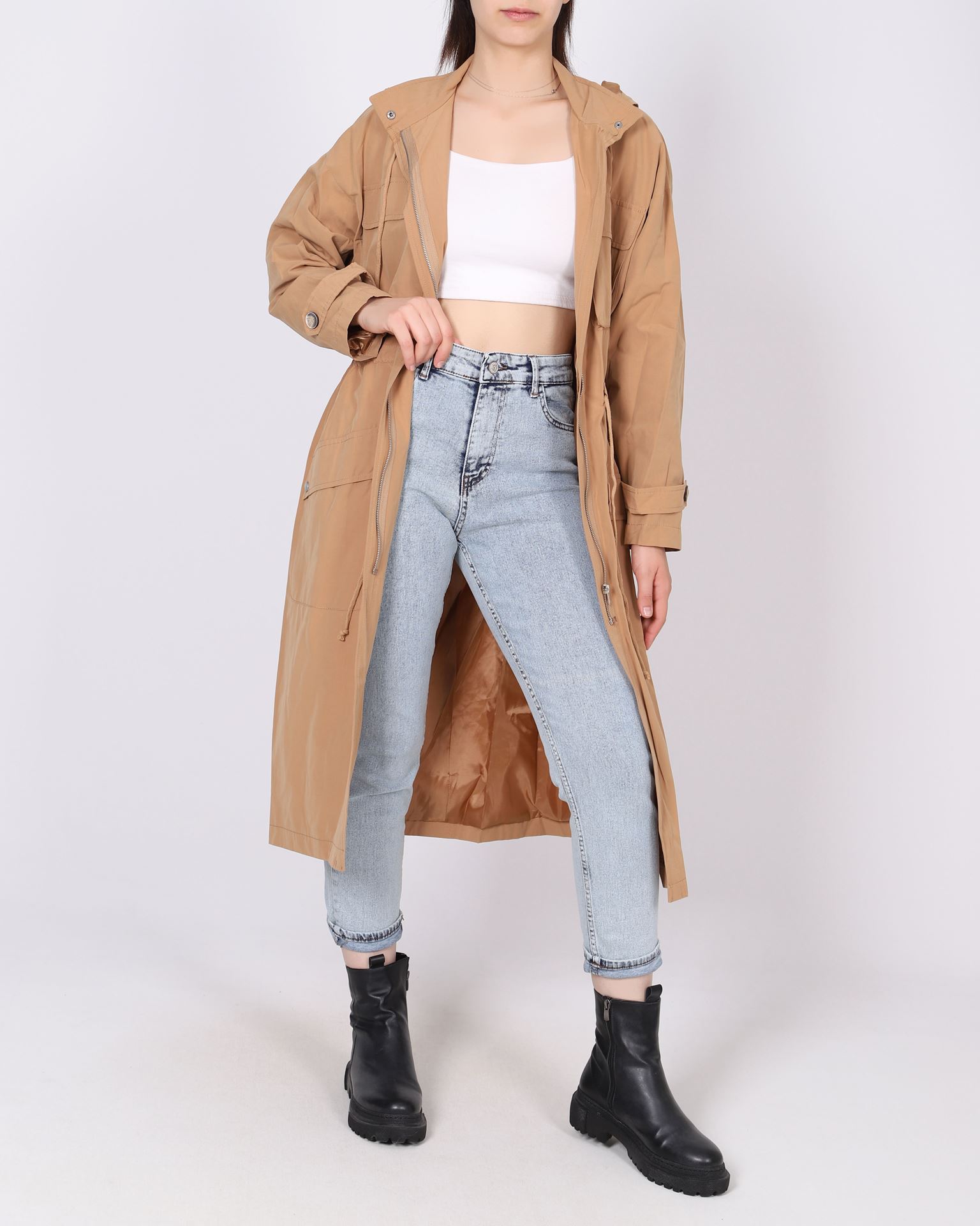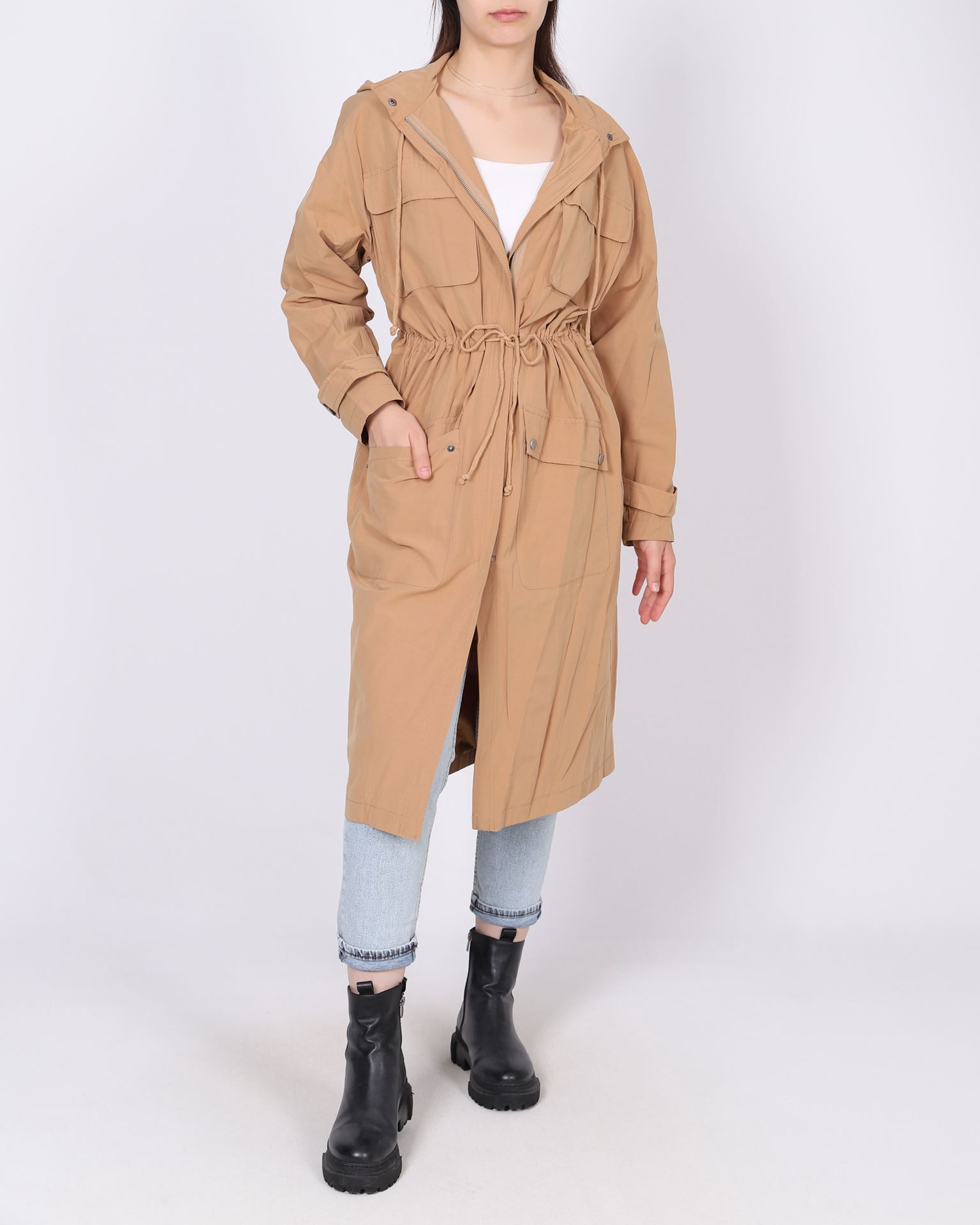 Camel Kapüşonlu Bayan Trençkot CKT497
