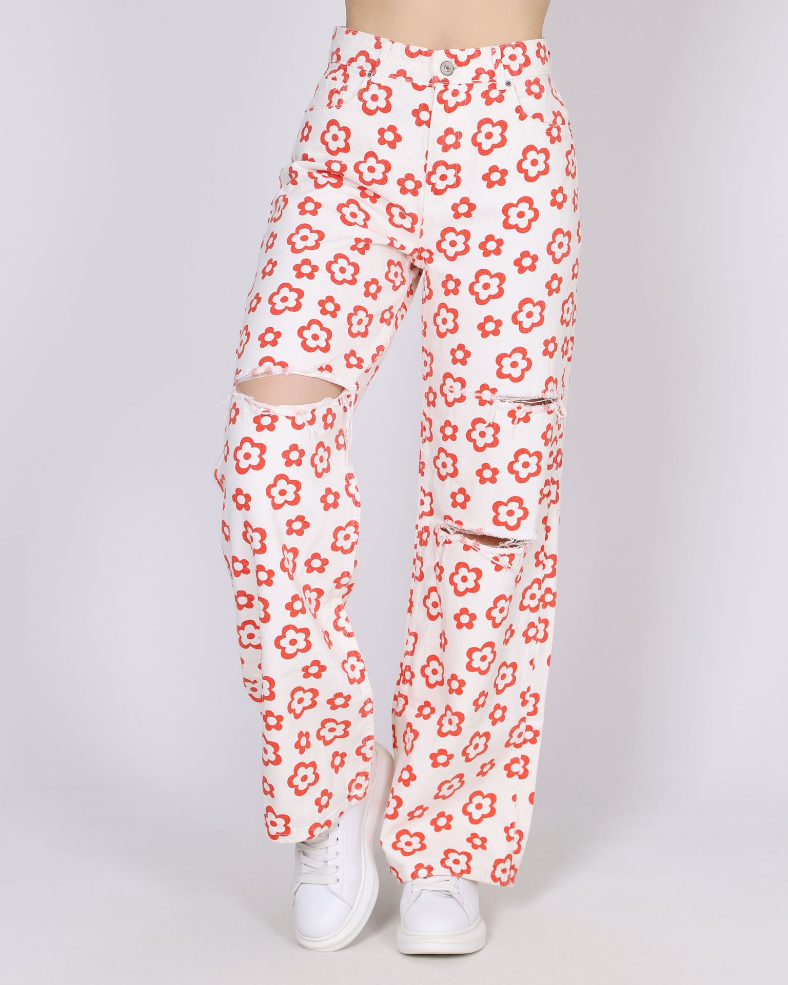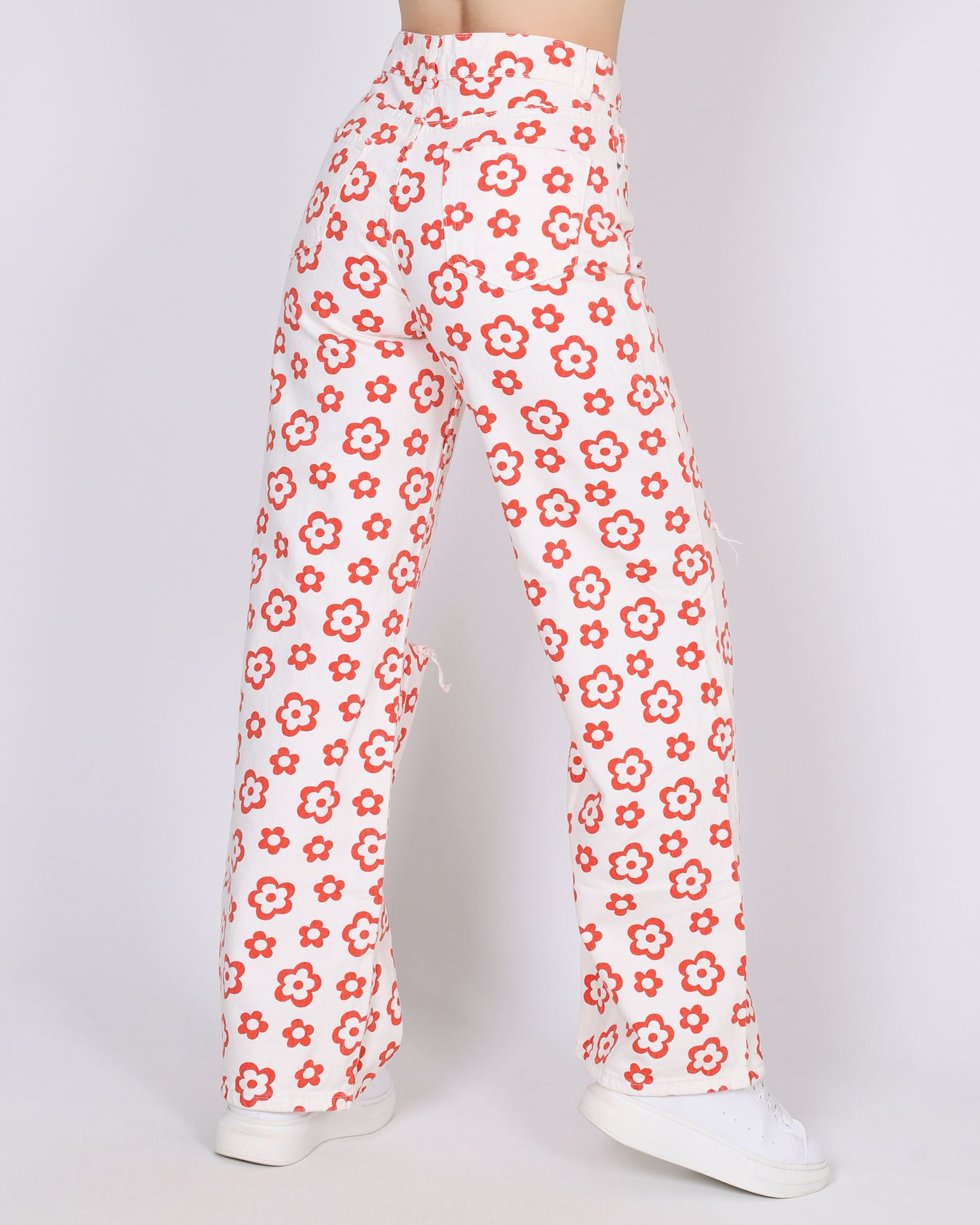 Desenli Yırtık Palazzo Pantolon PNT691