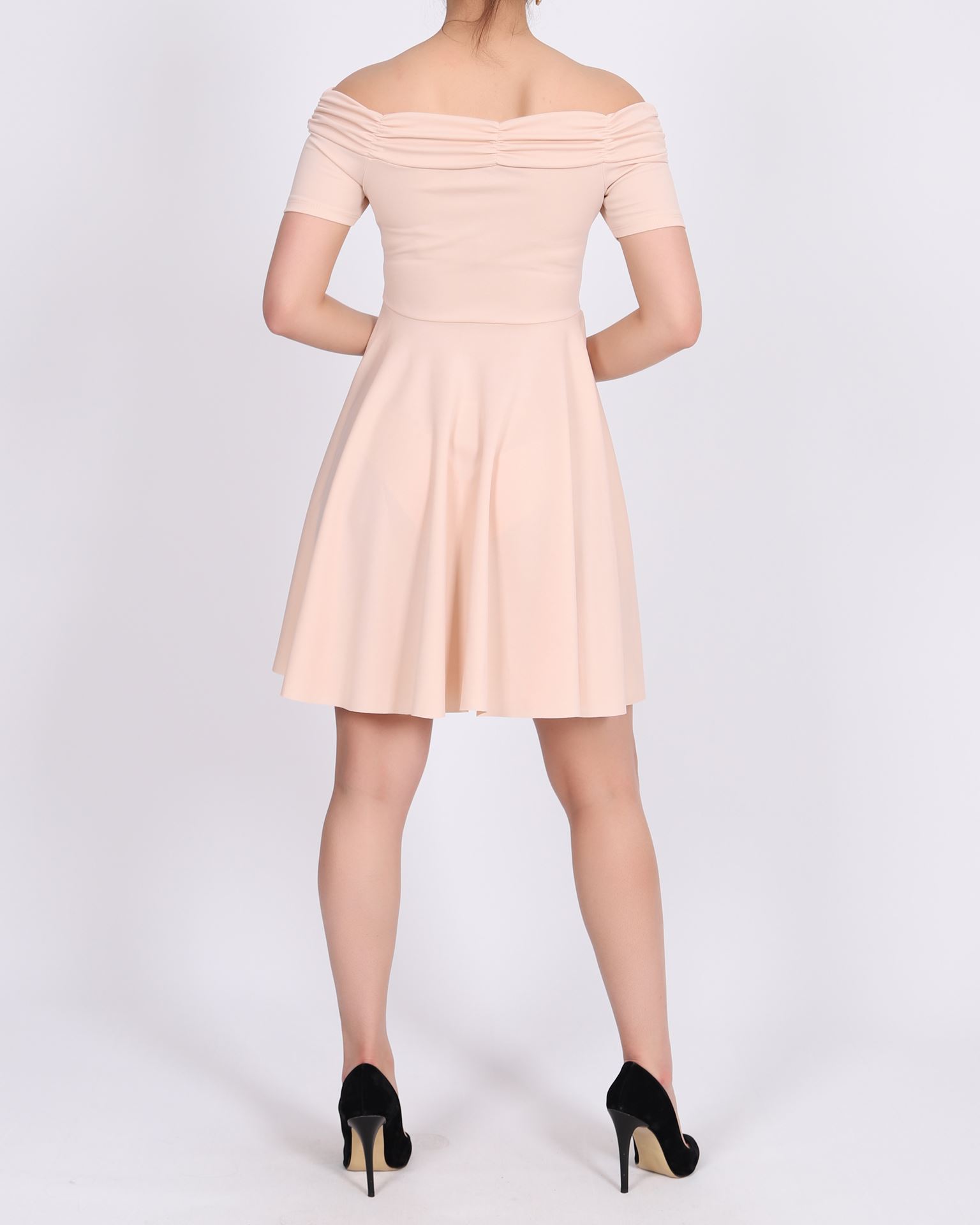 Drapeli Krem Elbise ELB770