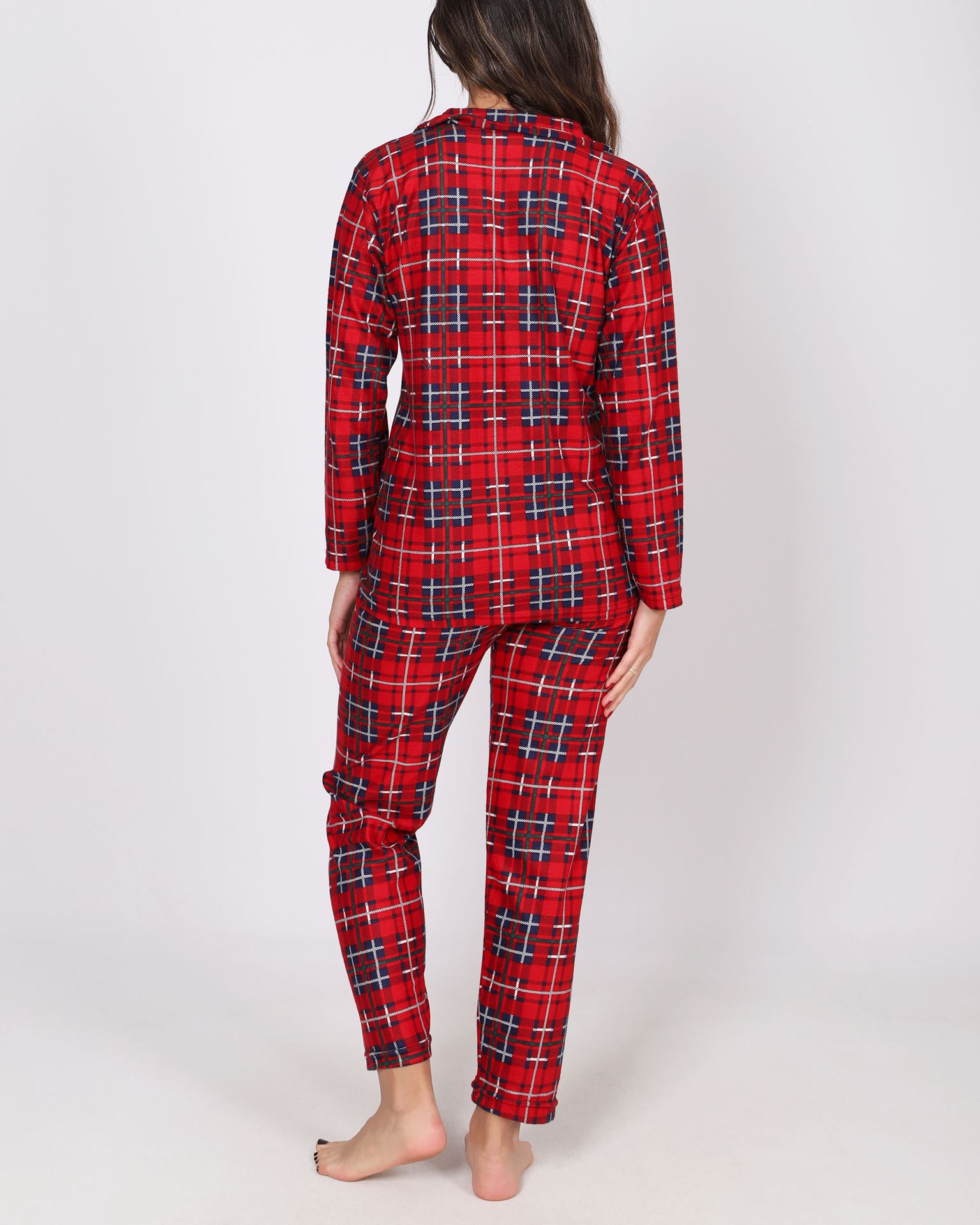 Ekoseli Süet Düğmeli Pijama Takımı PJM2099