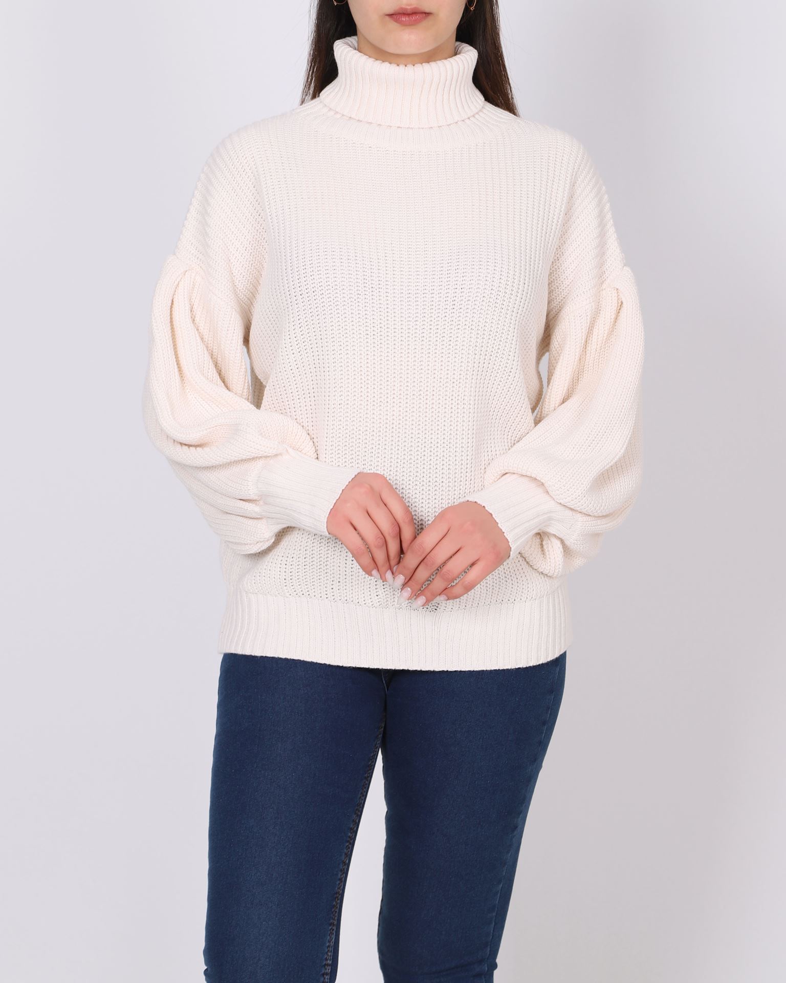 Ekru Balon Kol Boğazlı Kazak KZK641