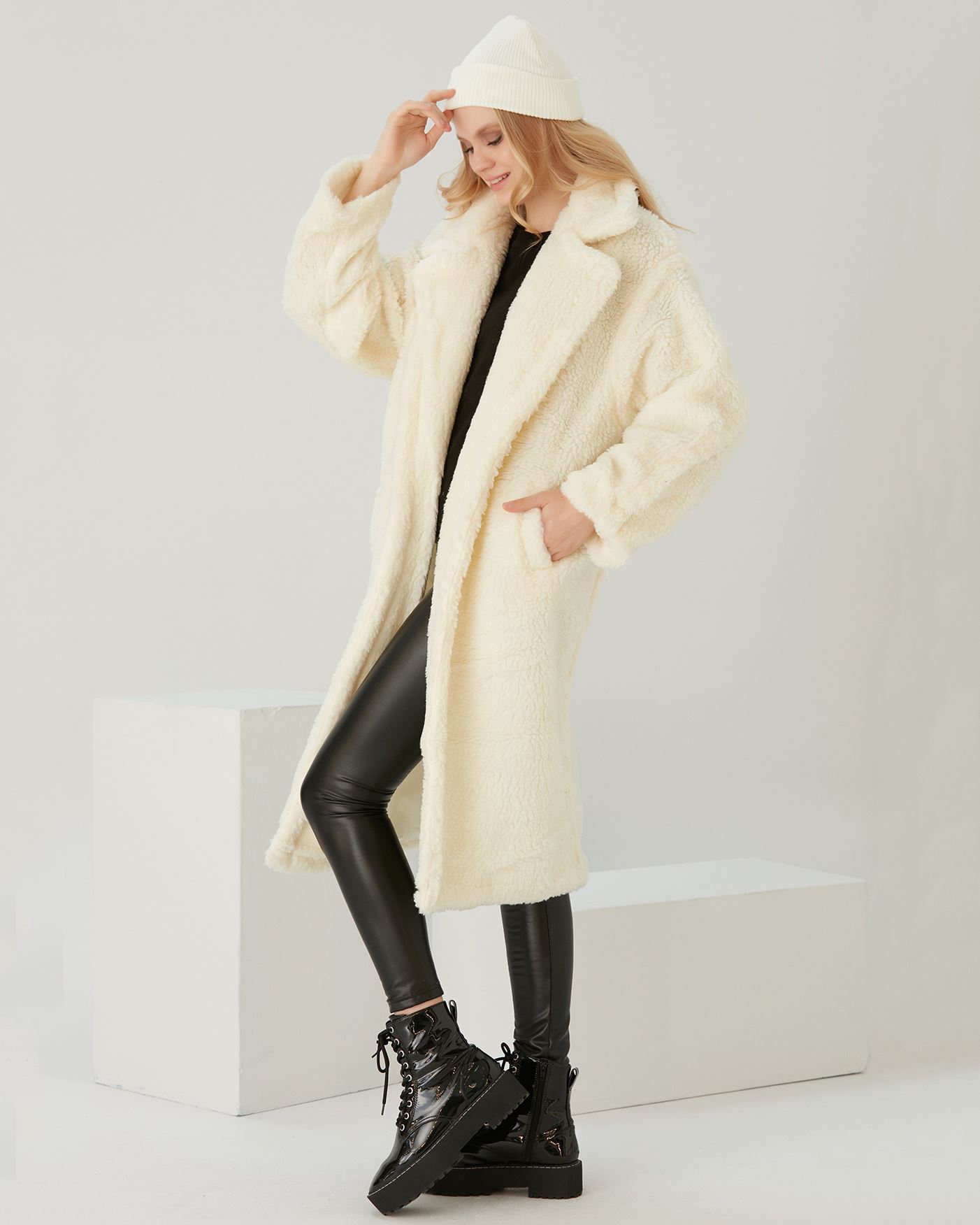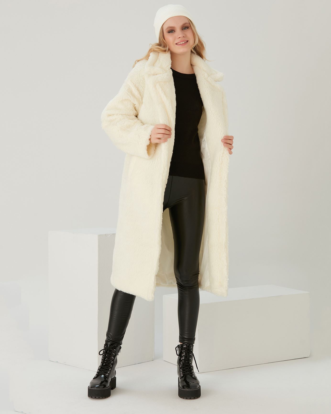 Ekru Oversize Teddy Kaban MNT068