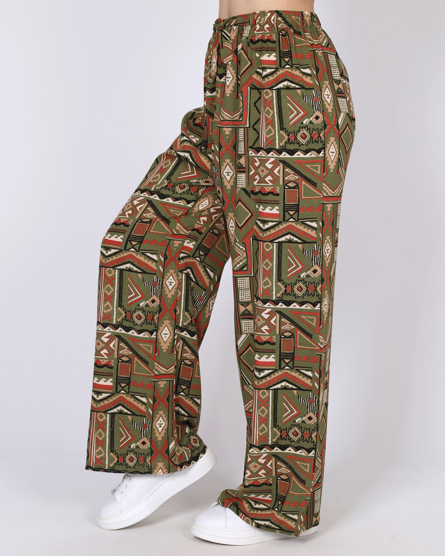Etnik Desenli Palazzo Dokuma Pantolon PNT622