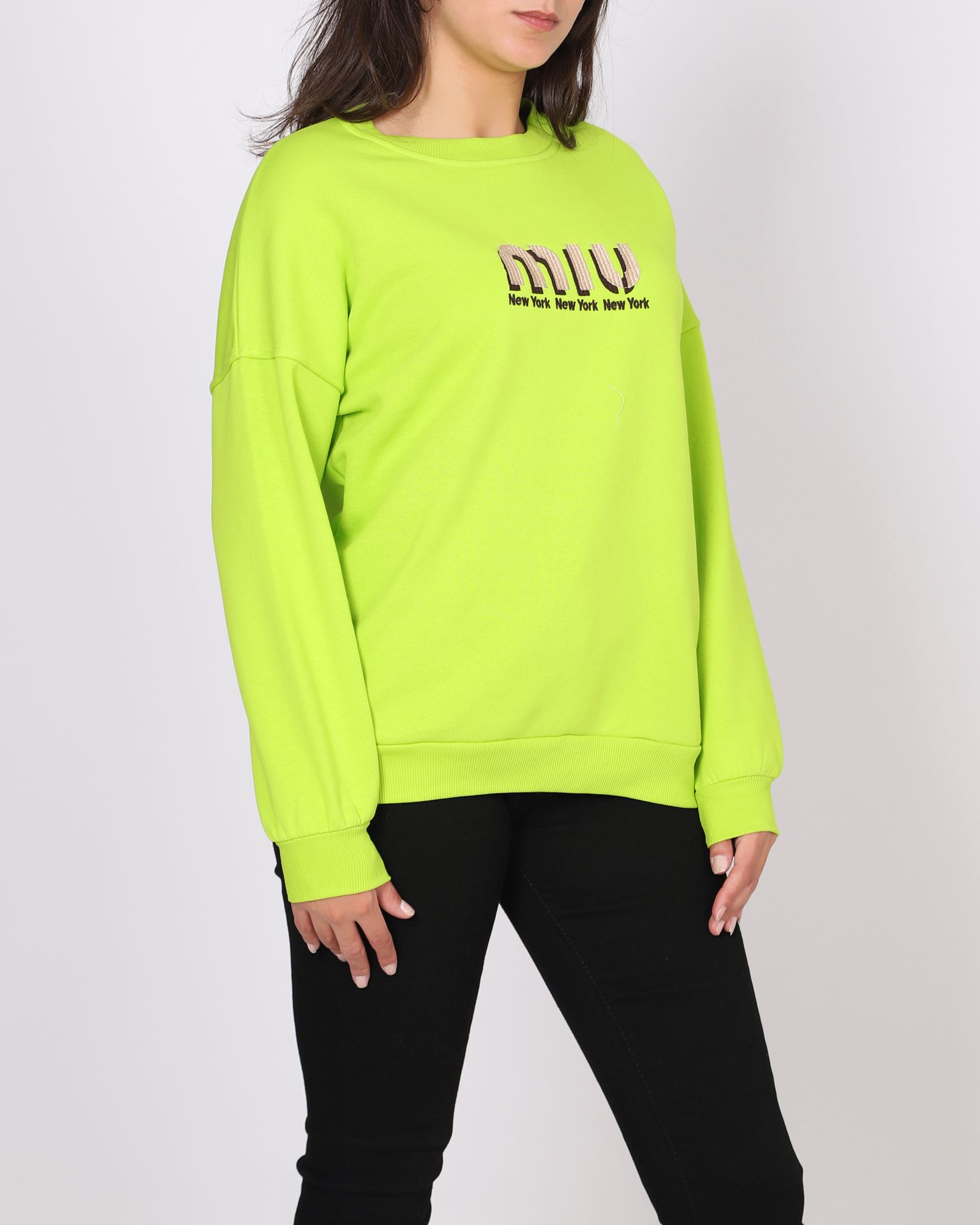 Fıstık Yeşili Nakışlı Şardonlu Sweat SWT995