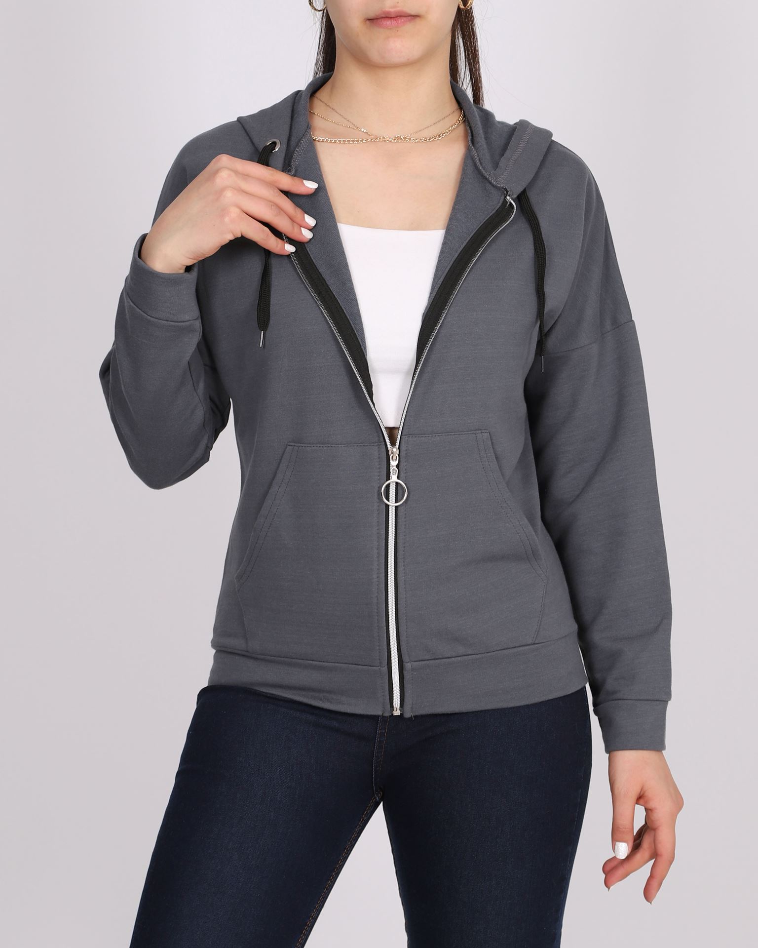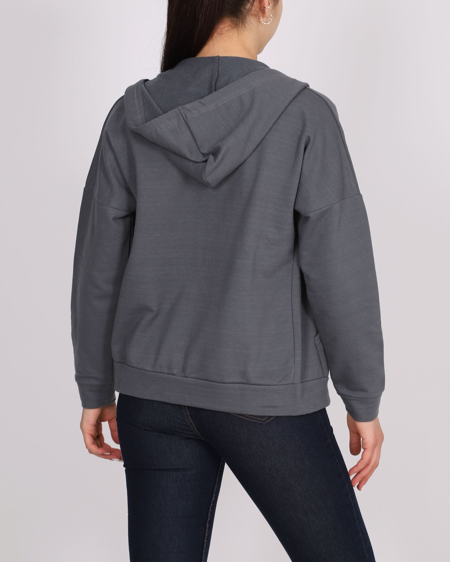 Füme Kapüşonlu Fermuarlı Sweat SWT893