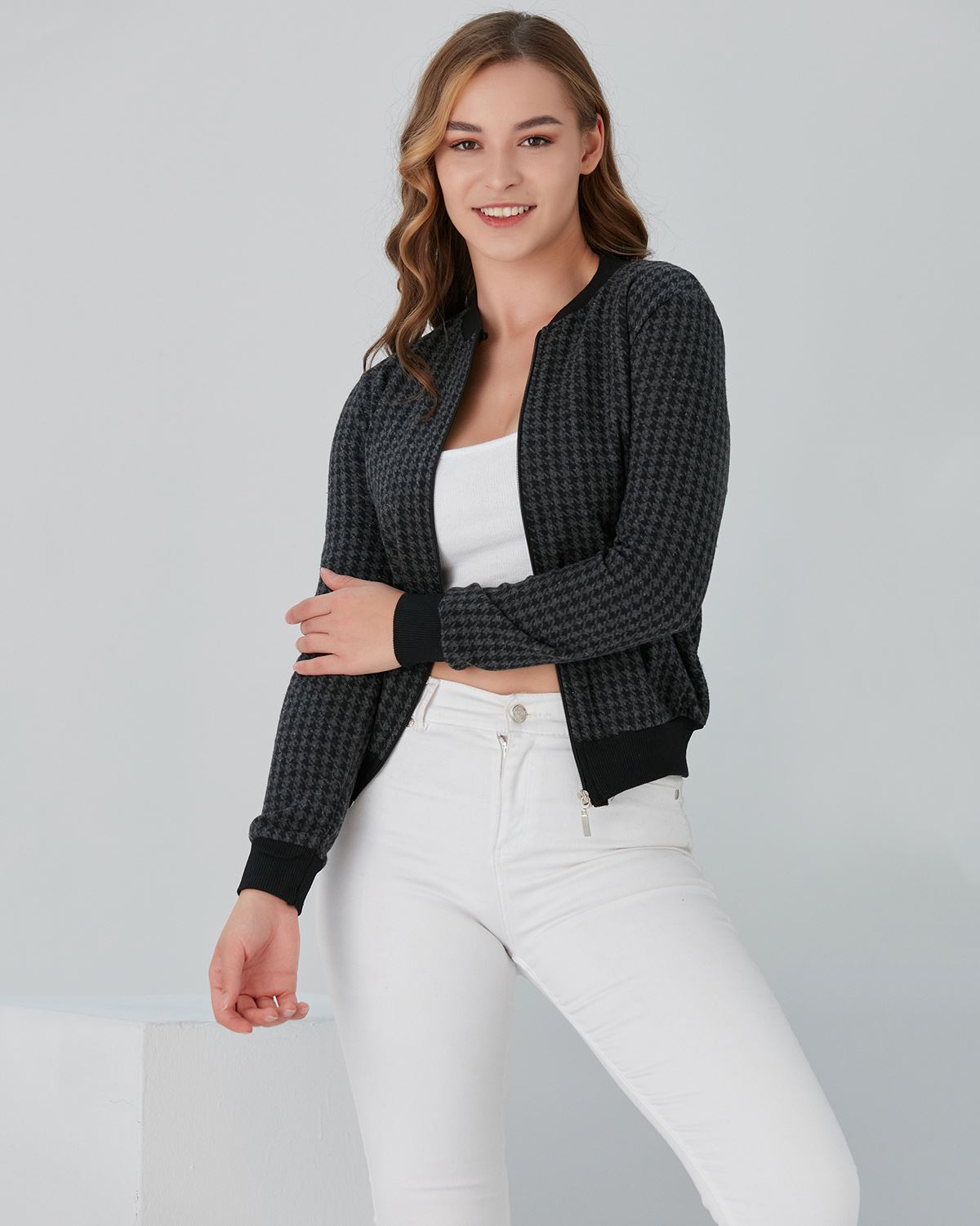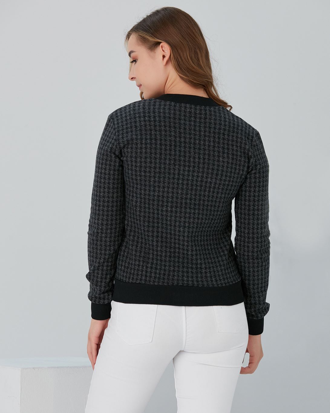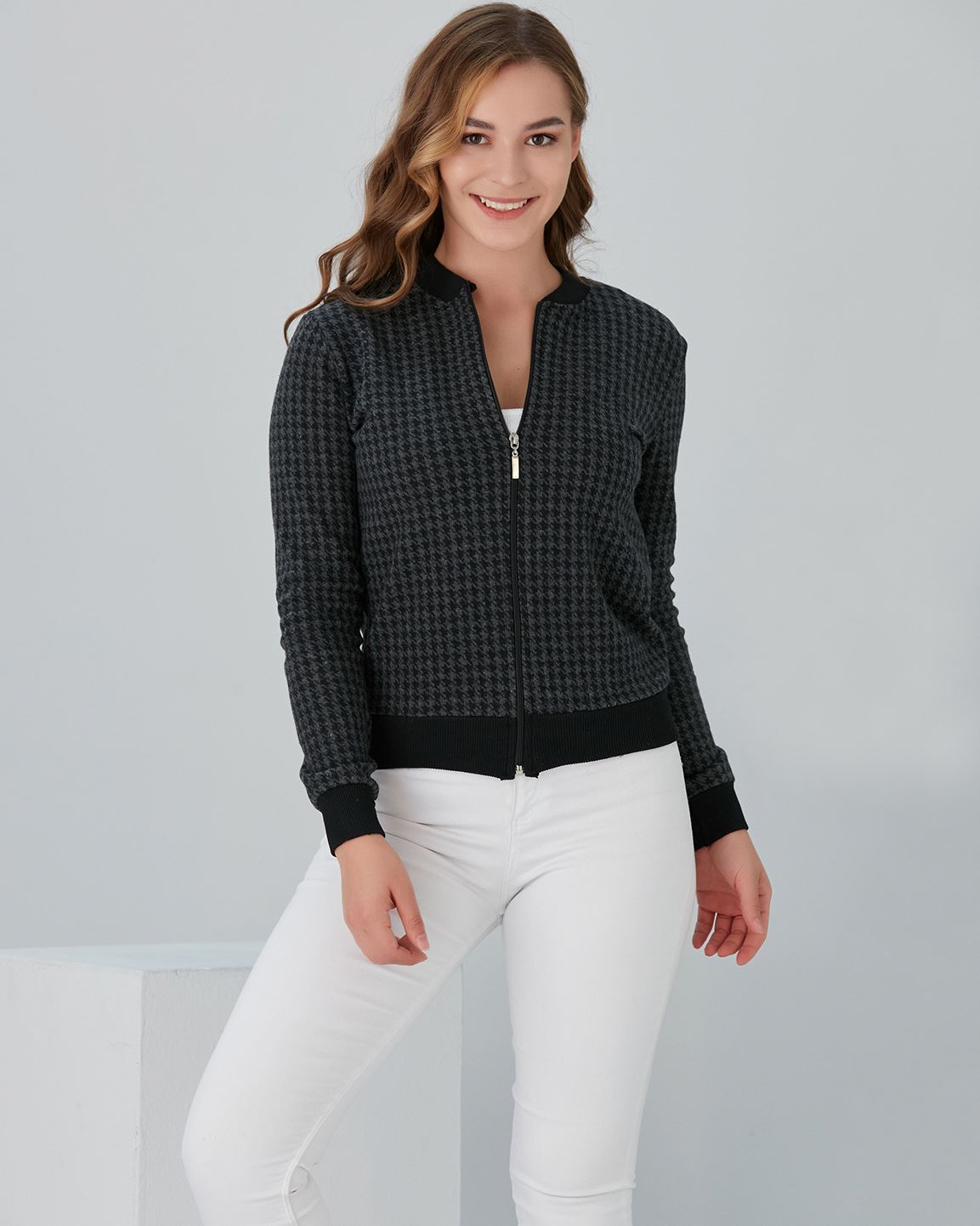 Füme Kazayağı Desenli Fermuarlı Sweat SWT772